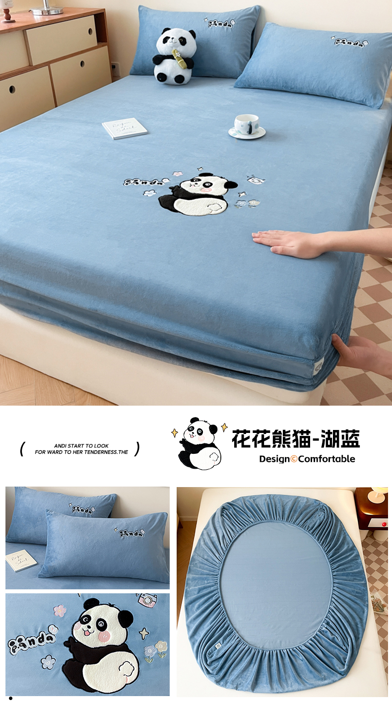 • 91家纺网 家纺一手货源 找家纺 鑫钰 2024新款刺绣卡通加厚牛奶绒床笠-花花熊猫 花花熊猫-湖蓝