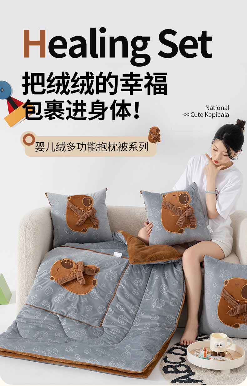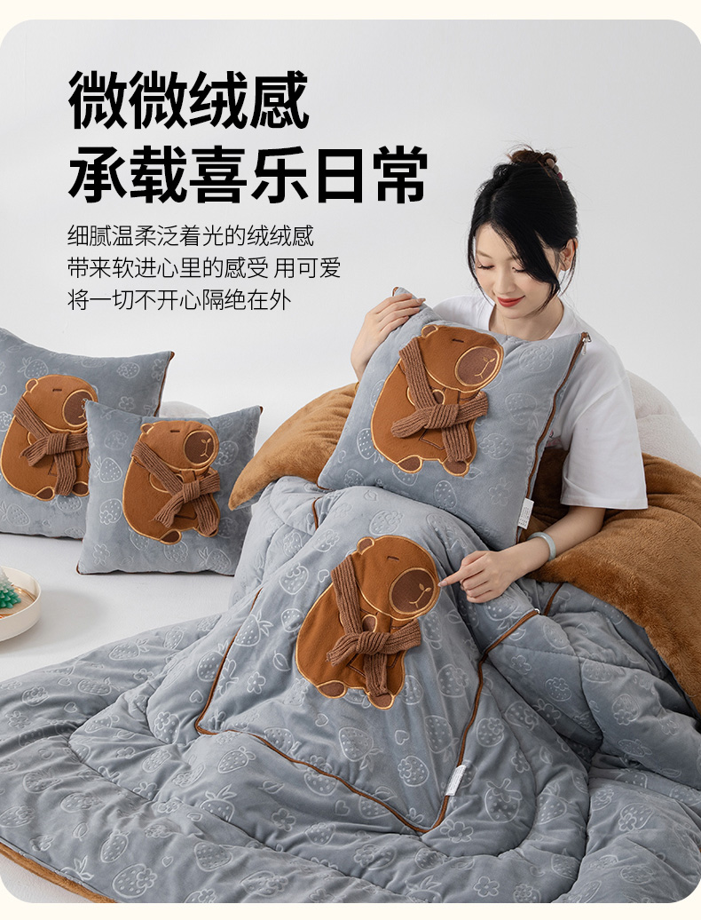 (总)翰轩家居 2023新款全棉印花小清新豆豆绒抱枕被,草莓粉,草莓蓝,春晓蓝,花语黄,静秋,琉璃,萌萌兔,幽兰,油画格韵,布拉格,粉色小熊,花园漫步,浪漫猫,心想事橙,辛巴达,遇见
