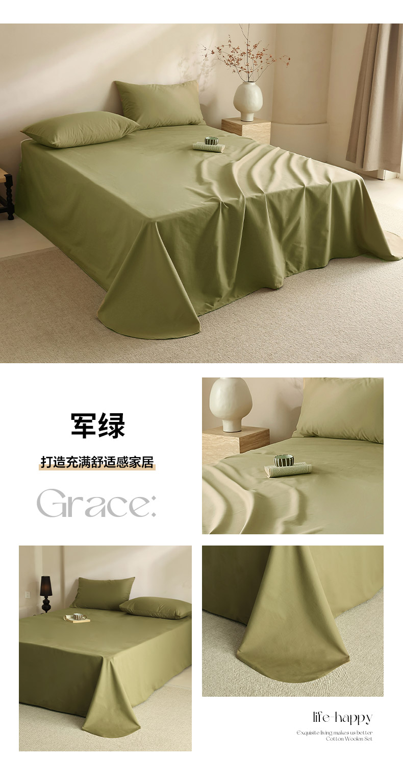 商品名称:轩和家居 2024新款50S长绒棉磨毛单床单 军绿