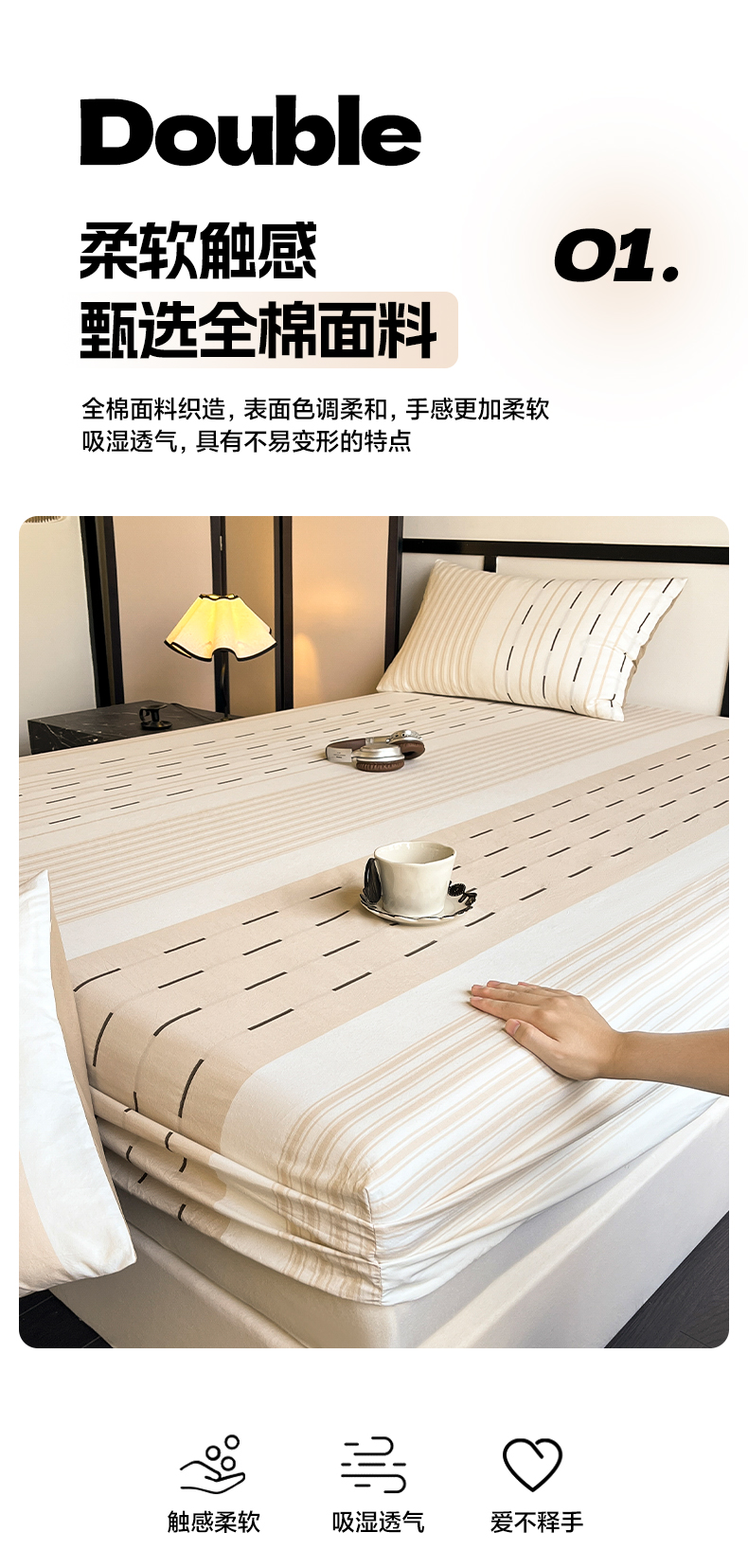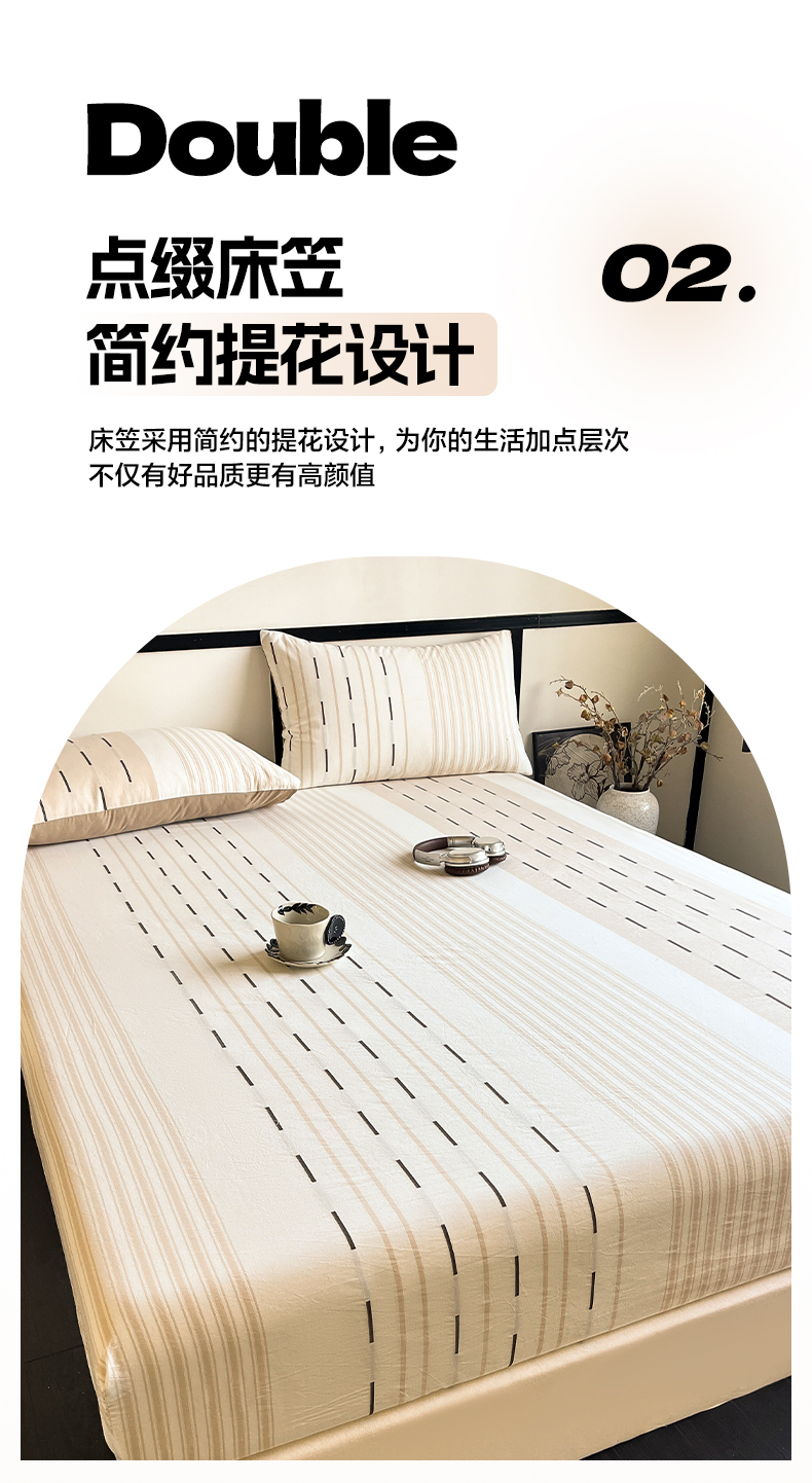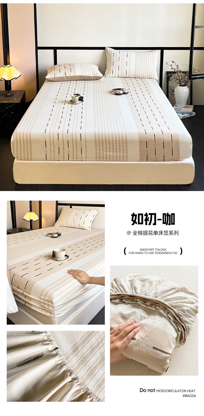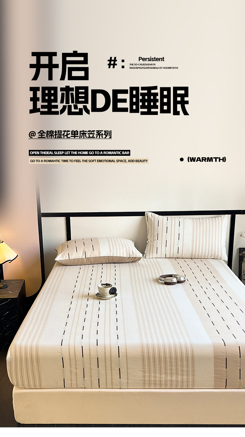 商品名称:雅居纺家纺 2024新款100%全棉提花单床笠-如初 如初-咖