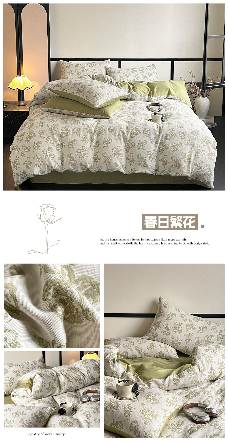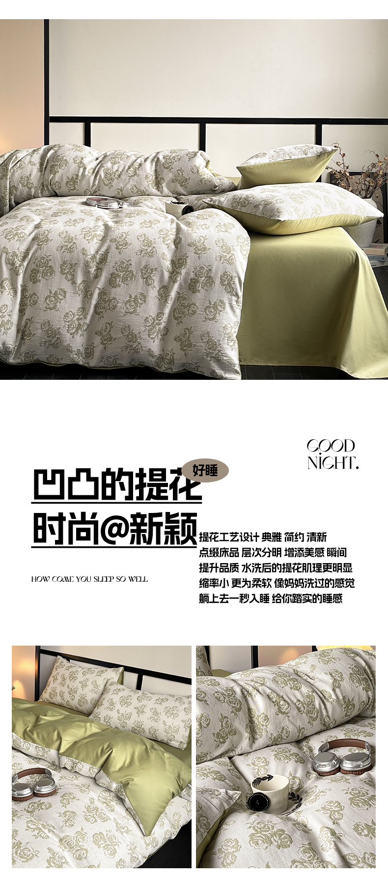 商品名称:雅居纺家纺 2024新款100%全棉色织水洗三层提花四件套 春日繁花
