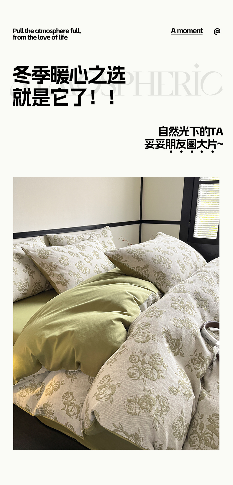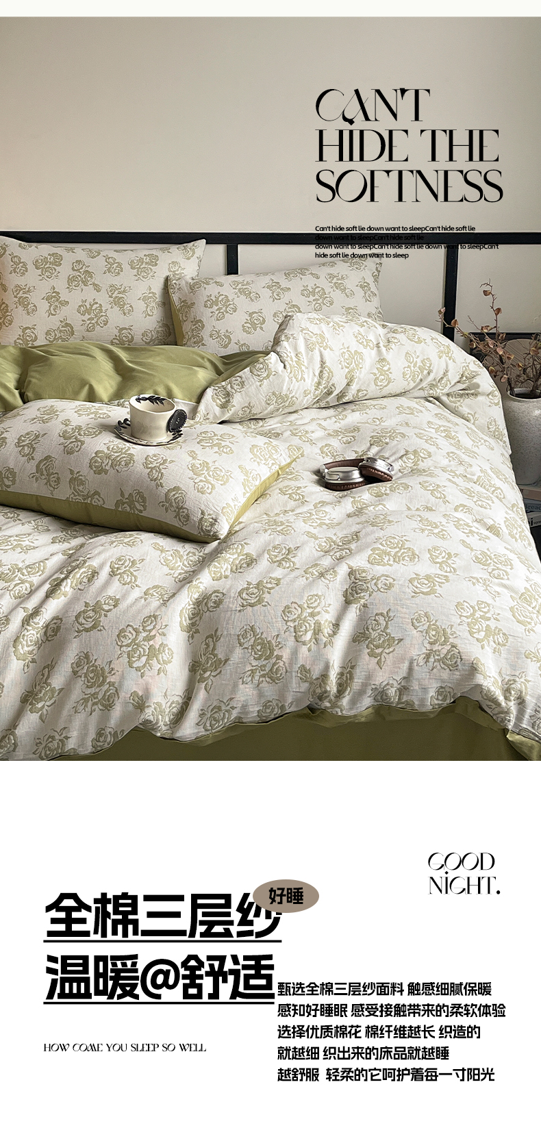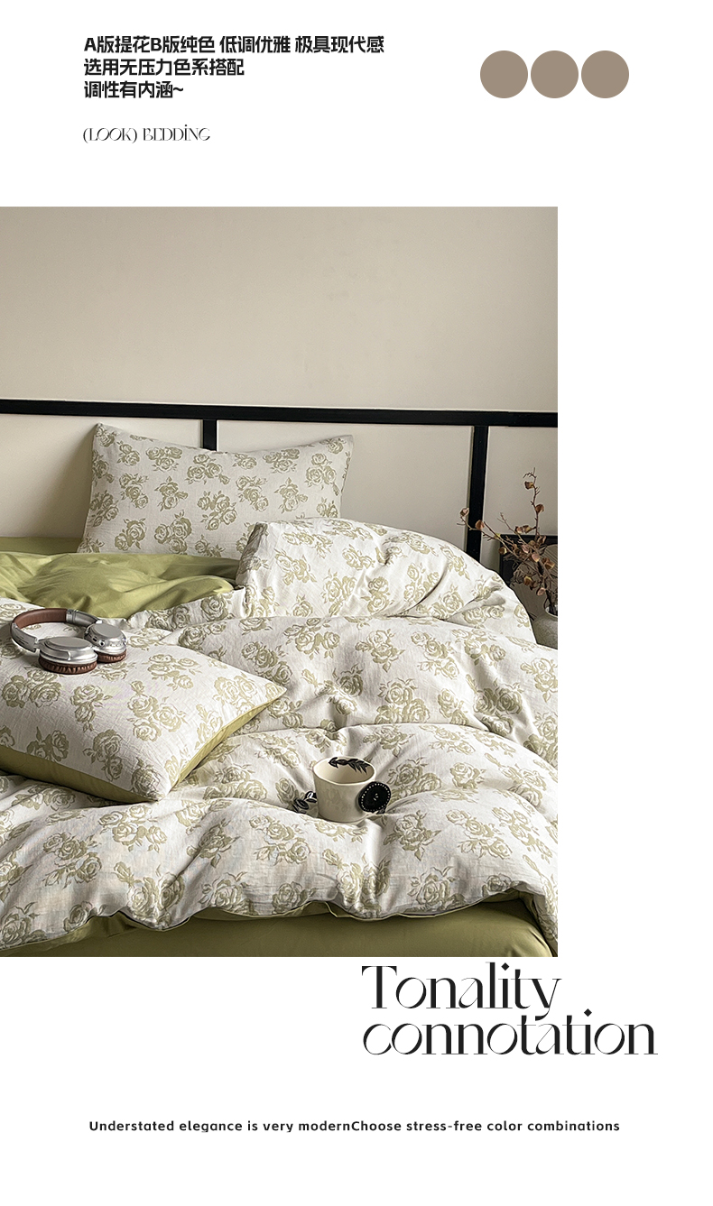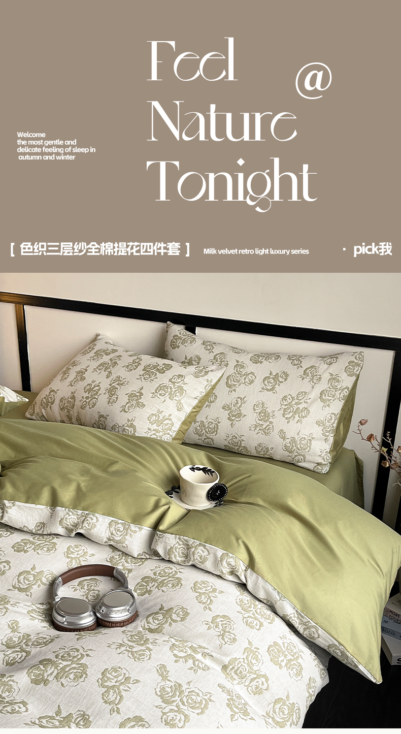 雅居纺家纺 2024新款100%全棉色织水洗三层提花四件套 春日繁花
