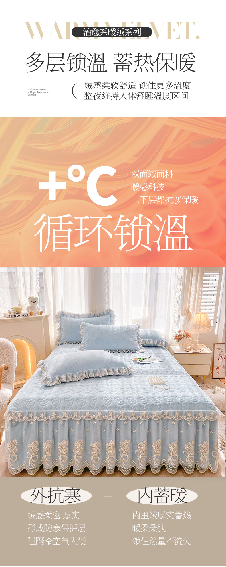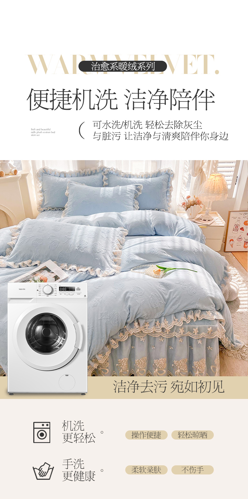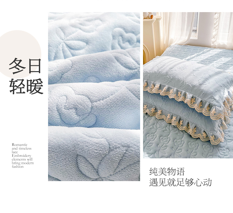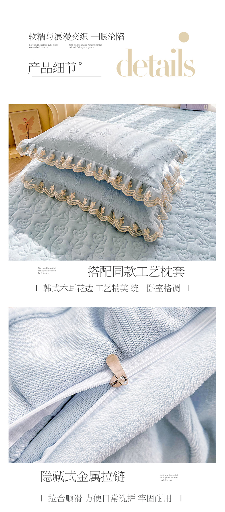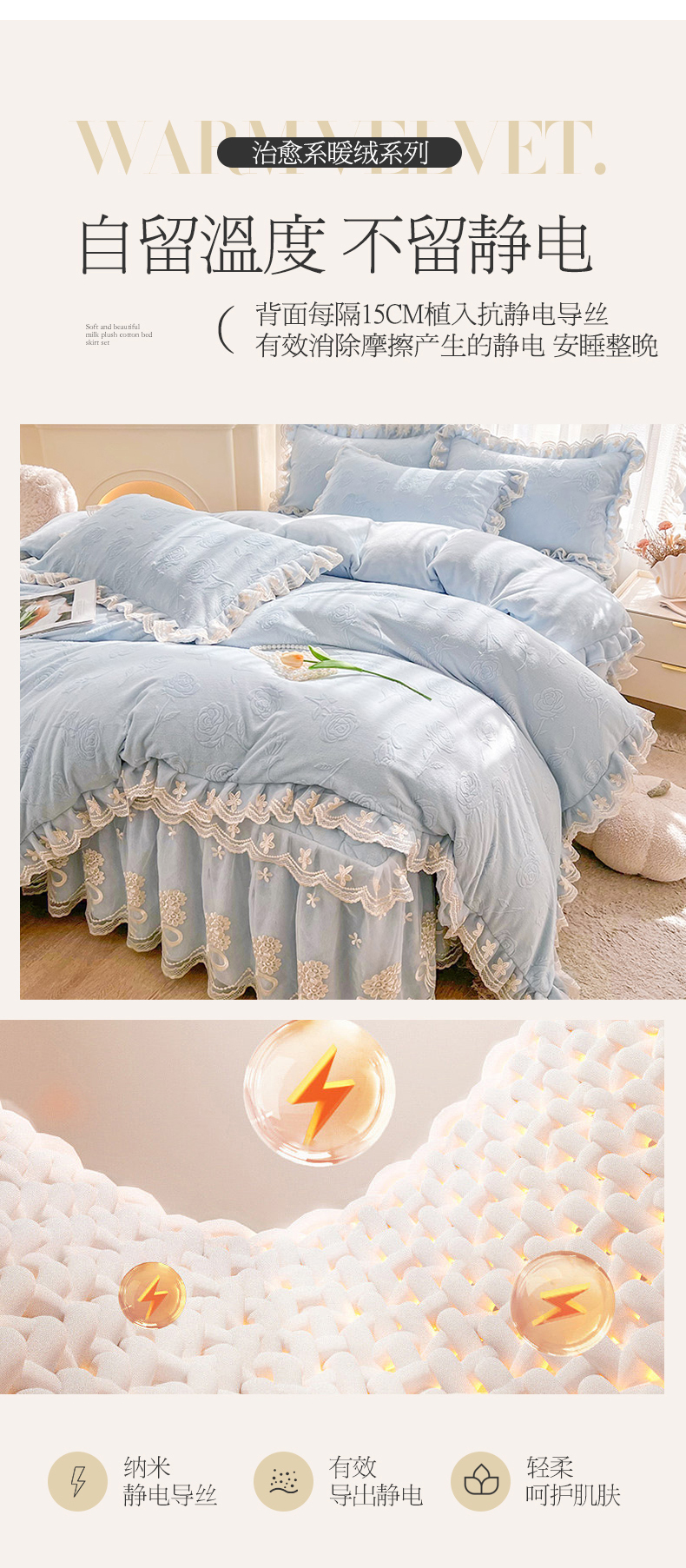 当前位置: 91家纺网 > 商品网购 > 床品套件 > 四件套 > 牛奶绒四件套 > 虹星家纺 2024新款雕花夹棉蕾丝牛奶绒床裙四件套-罗马花园 罗马花园 天蓝