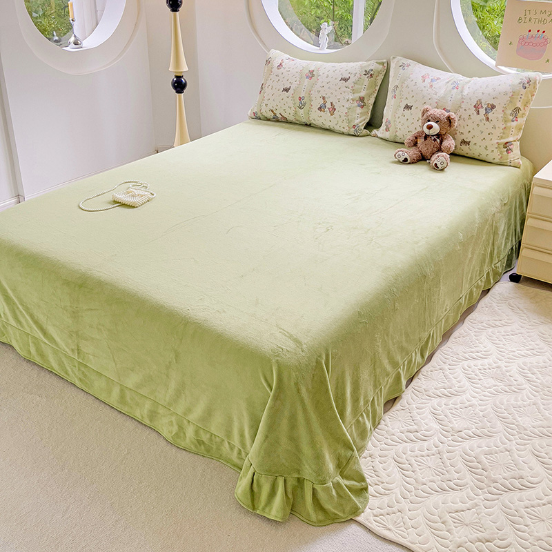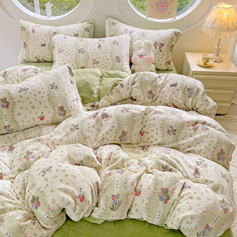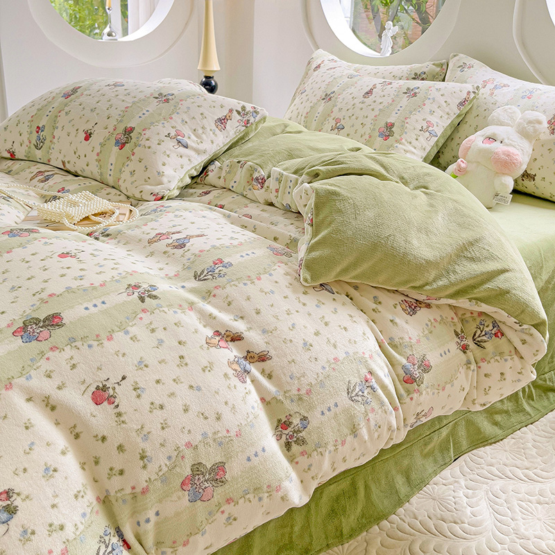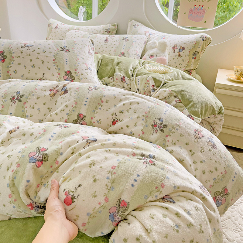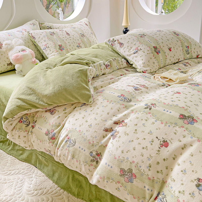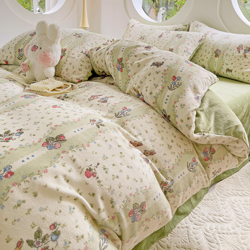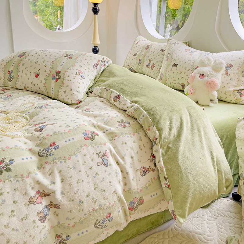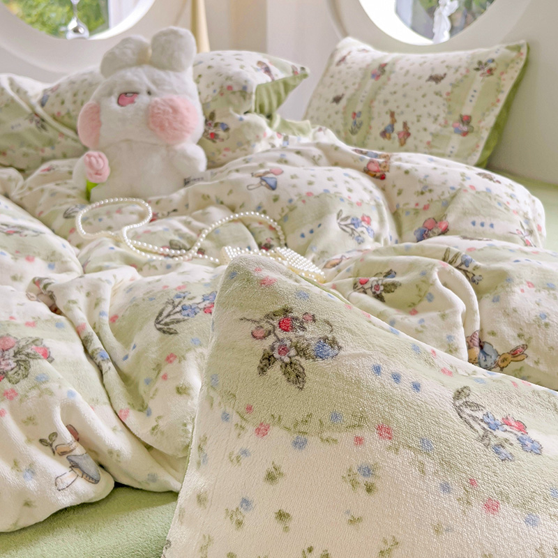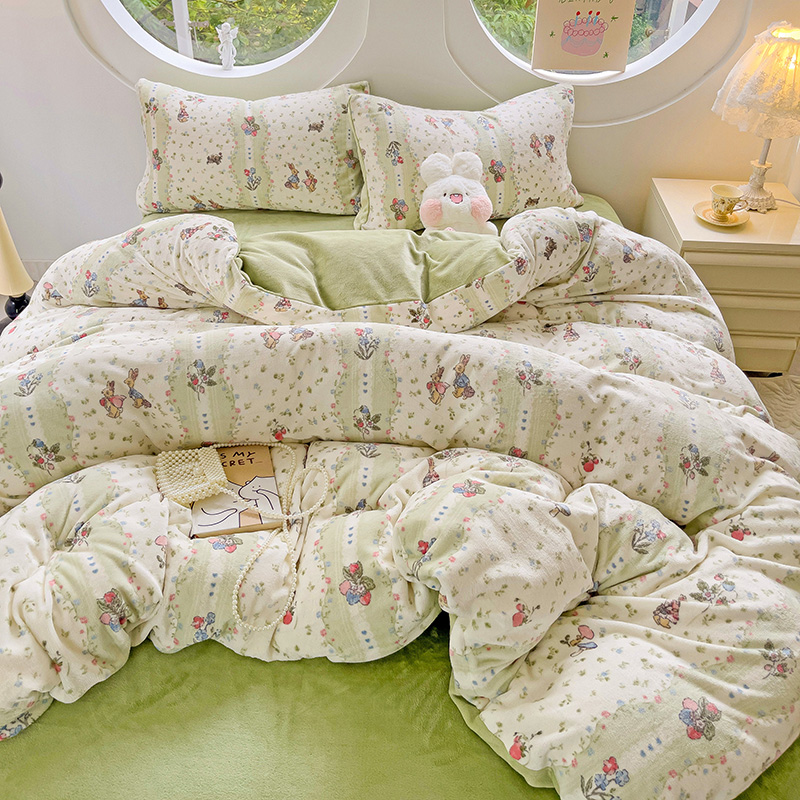 玉海棠家纺 2024新款6.5斤牛奶绒四件套 花开花兔绿
