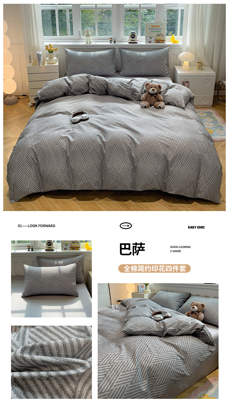 捌月 2025新款13372喷气全棉四件套-简约风系列 巴萨