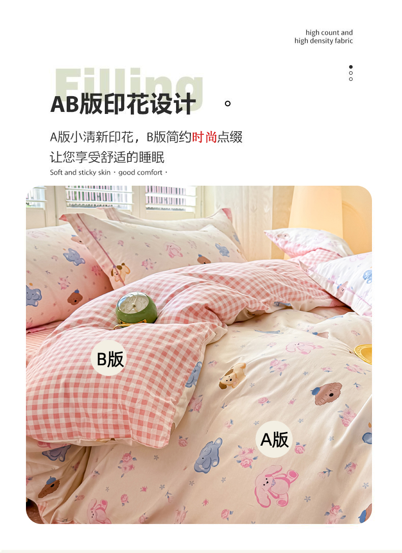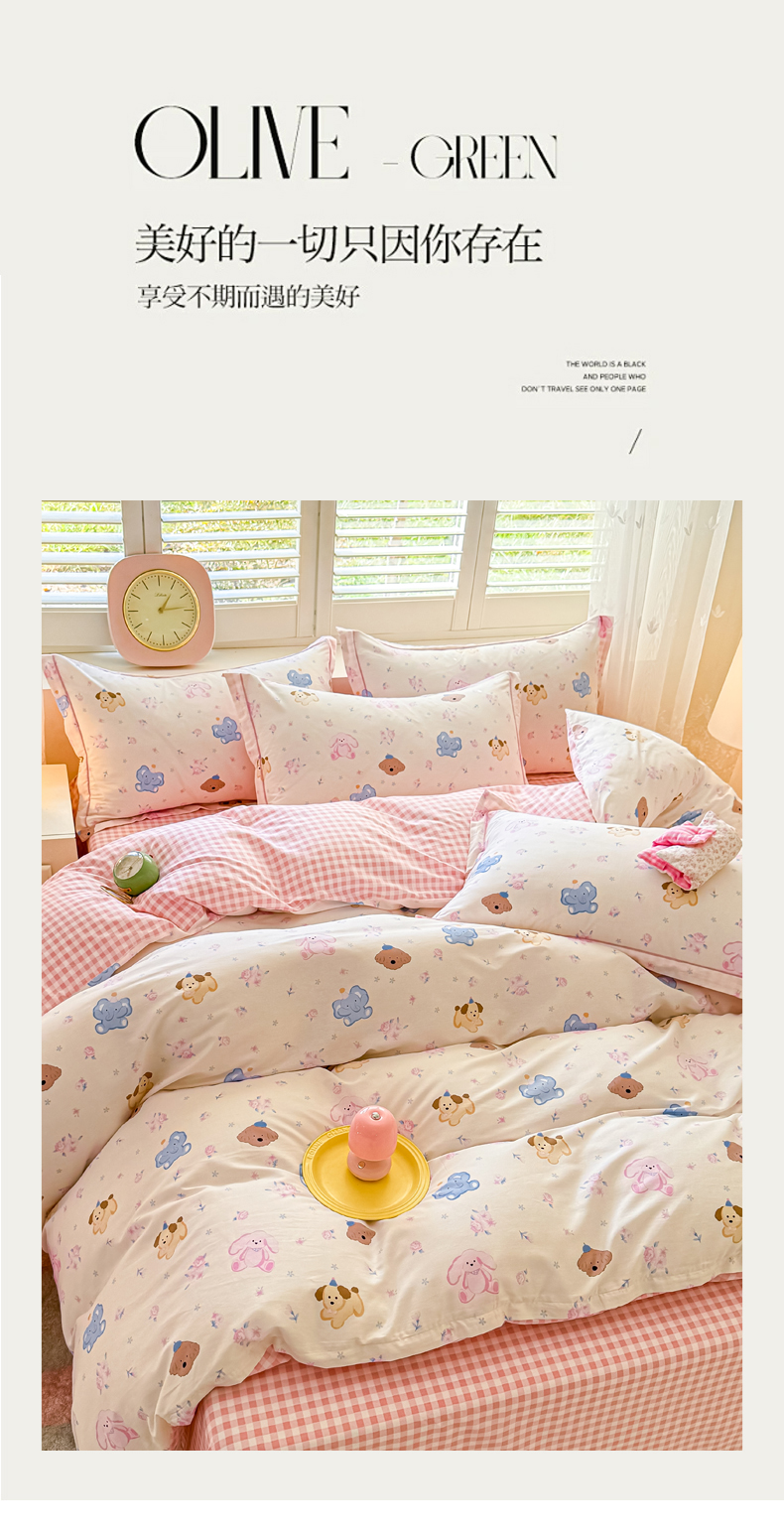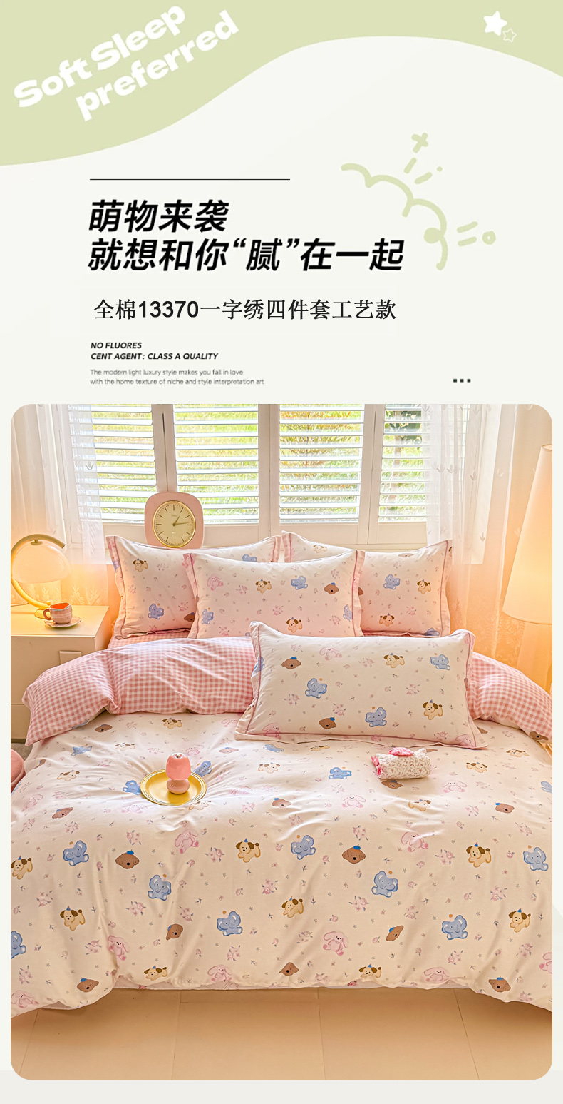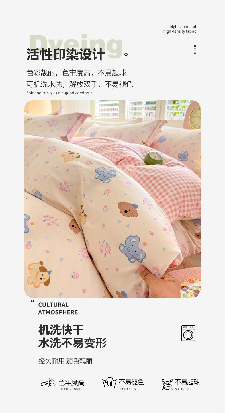 商品名称:洺兰家居 2025年新款全棉A类全喷气印花小清新床单床裙款四件套学生三件套 快乐狗狗