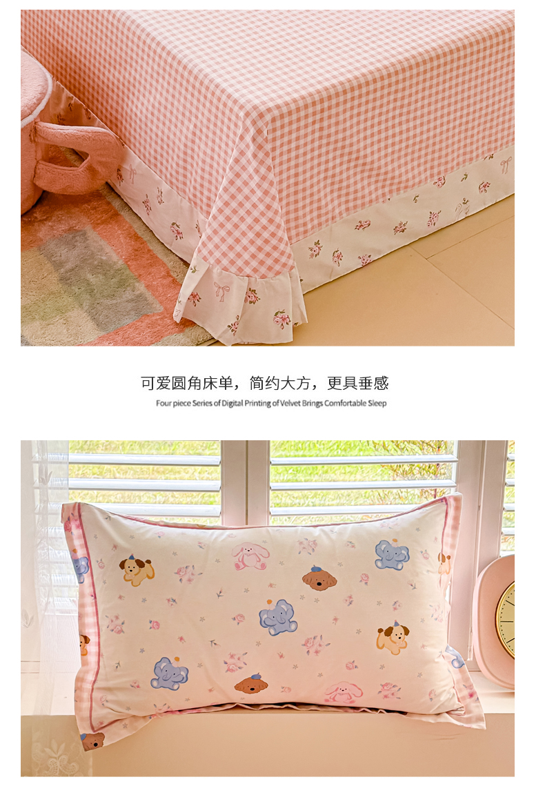 洺兰家居 2025年新款全棉A类全喷气印花小清新床单床裙款四件套学生三件套 快乐狗狗