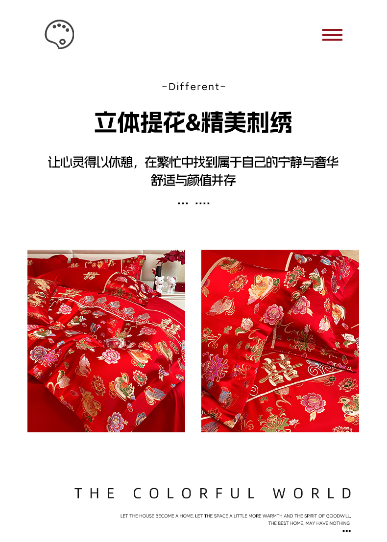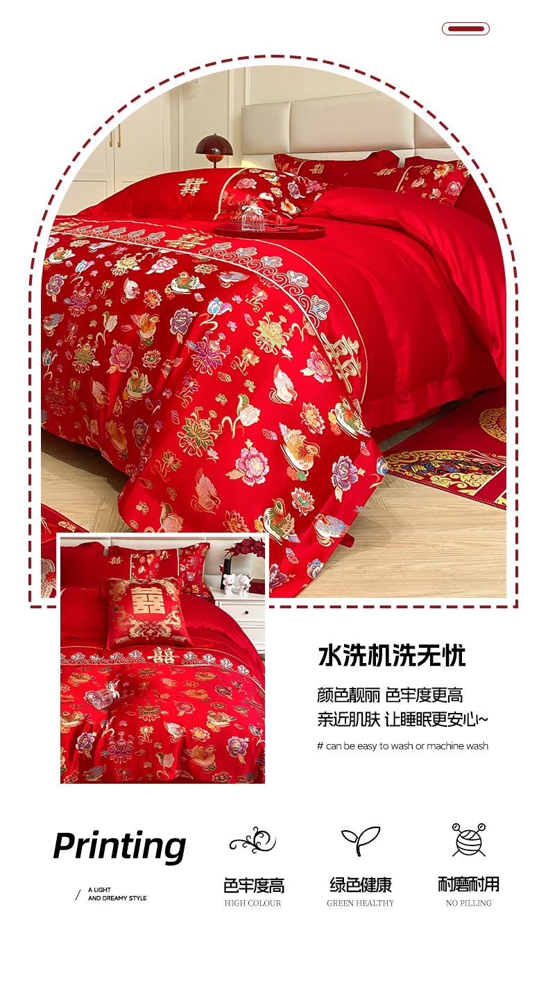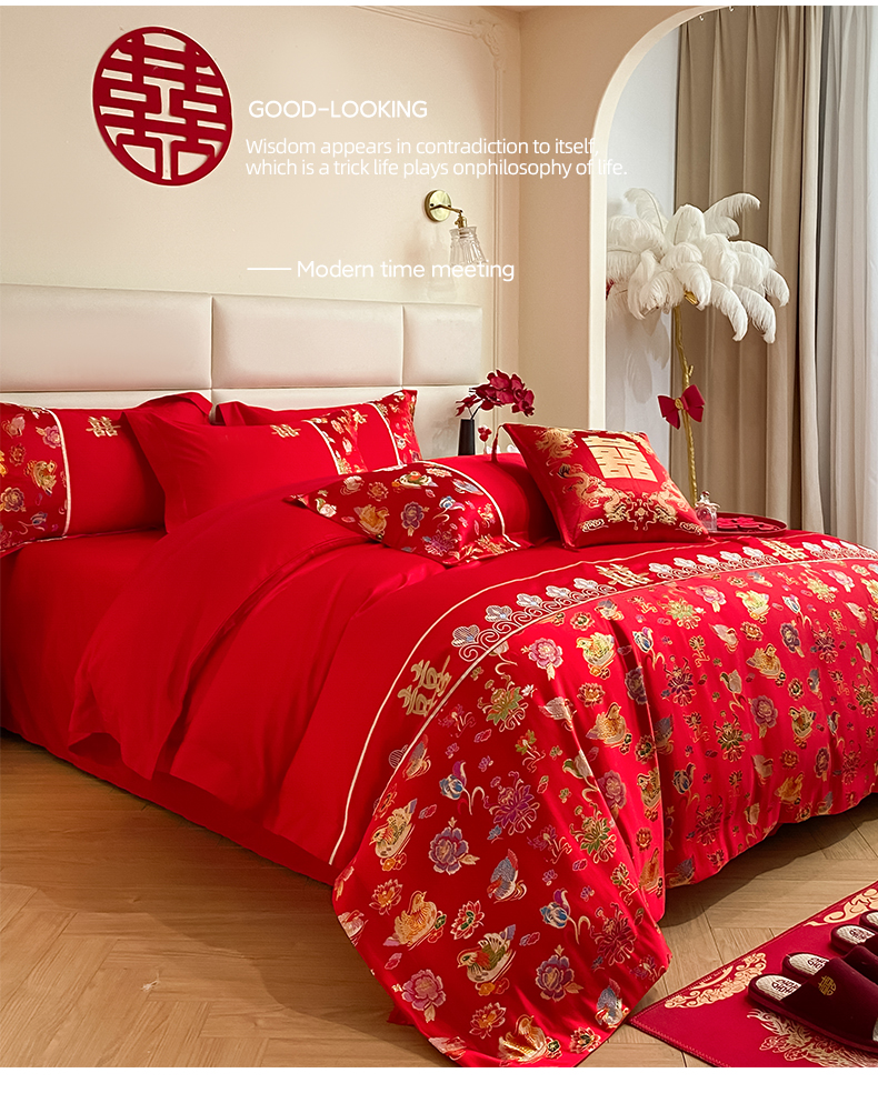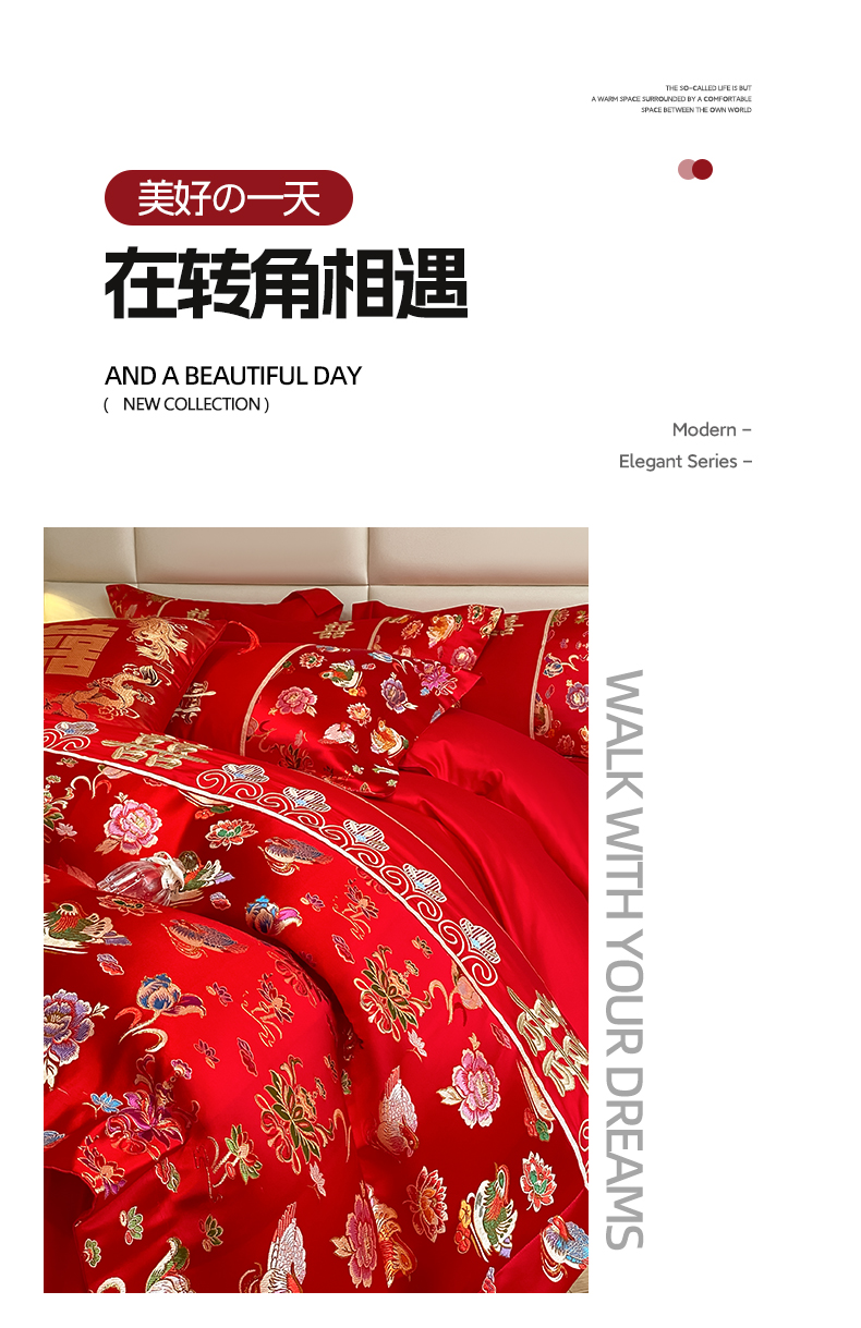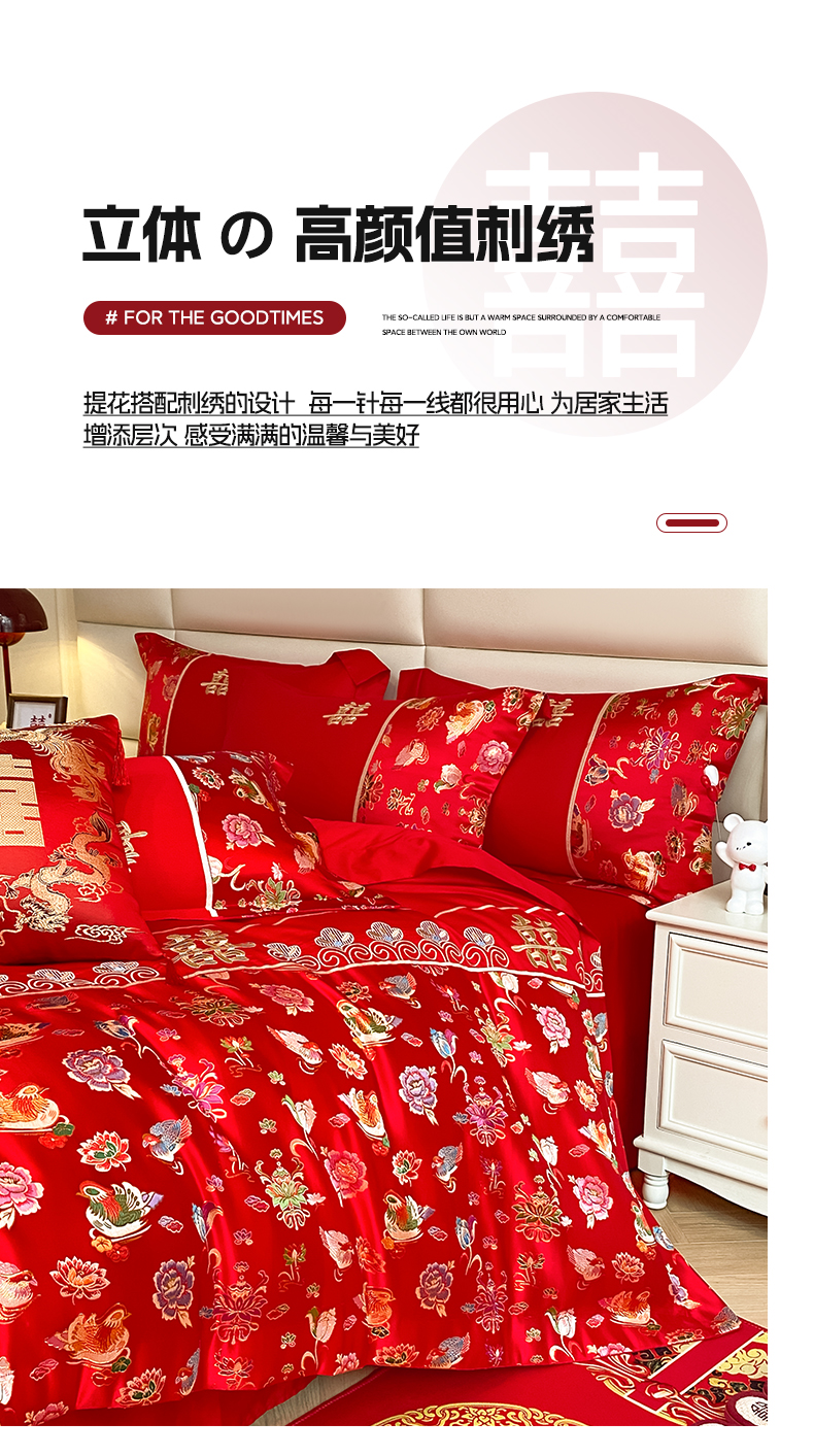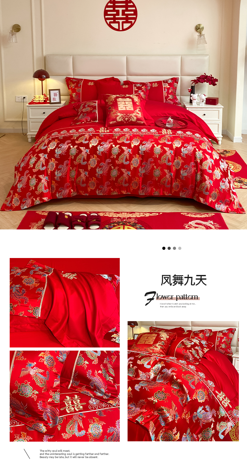 当前位置: 91家纺网 > 商品网购 > 床品套件 > 四件套 > 婚庆四件套 > 帝王家纺 2024新款A类亲肤棉刺绣锦缎提花婚庆四件套 鸳俦凤侣