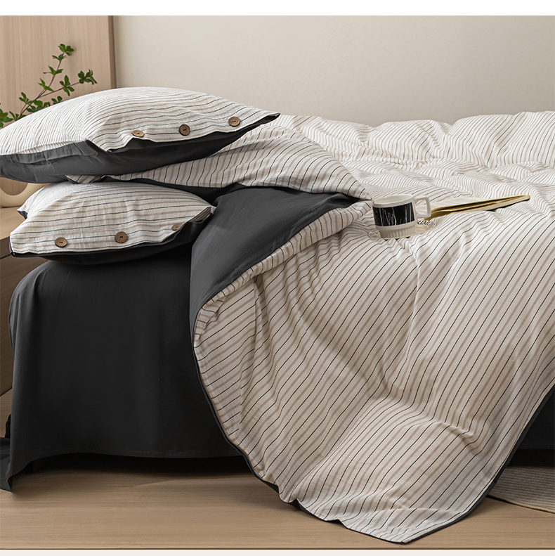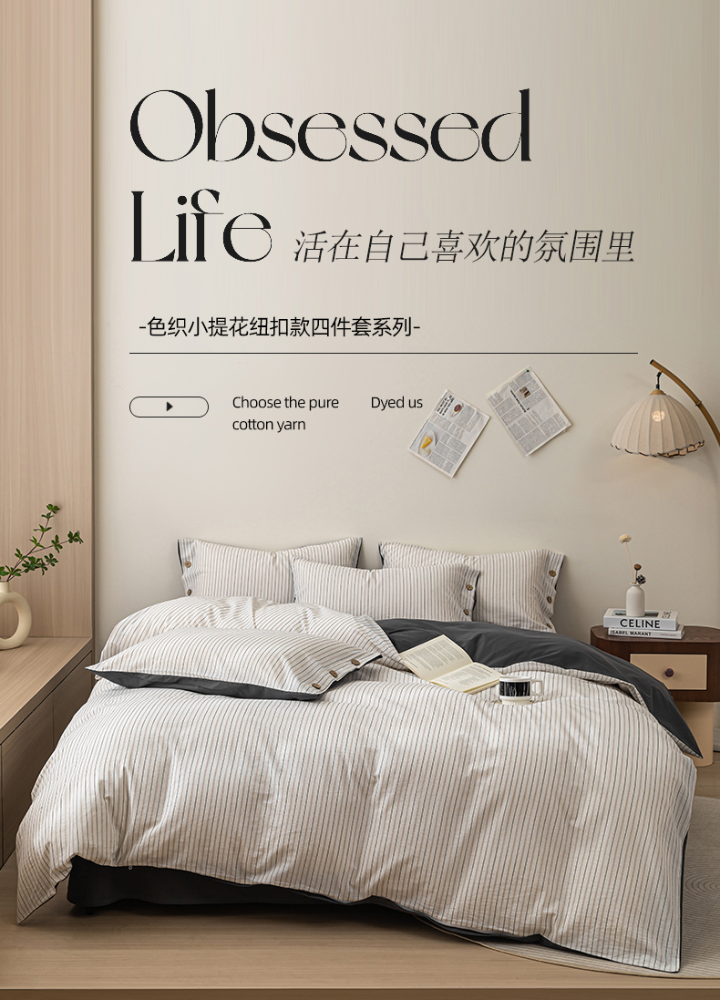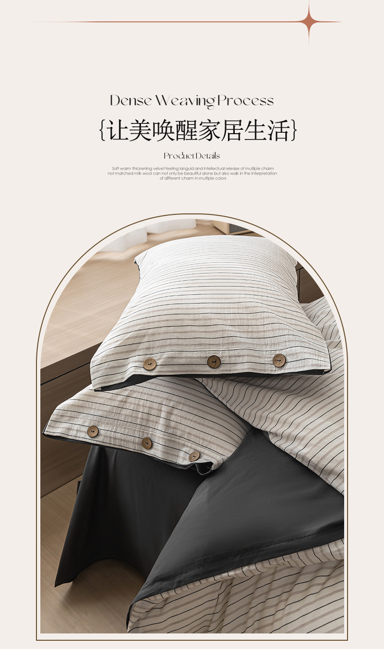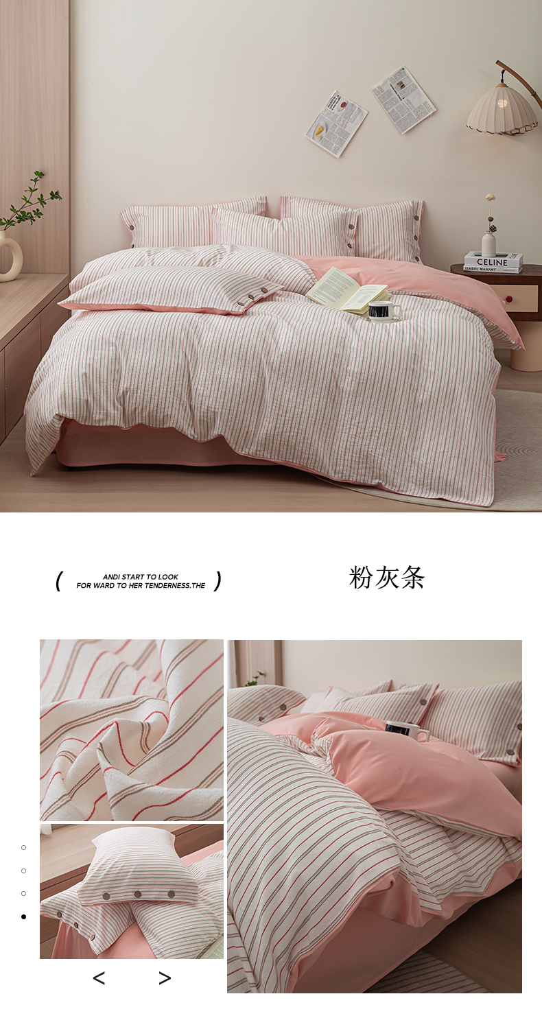 当前位置: 91家纺网 > 商品网购 > 床品套件 > 四件套 > 水洗棉四件套 > (总)女子家纺 2024新款色织小提花条纹水洗棉纽扣四件套