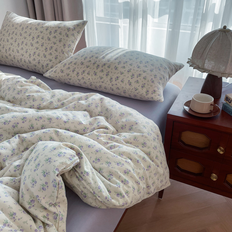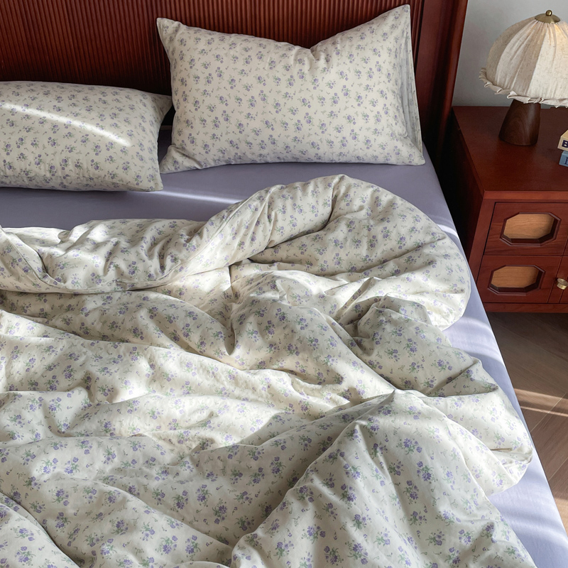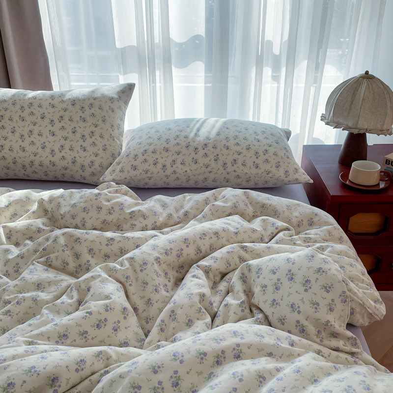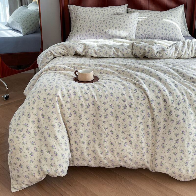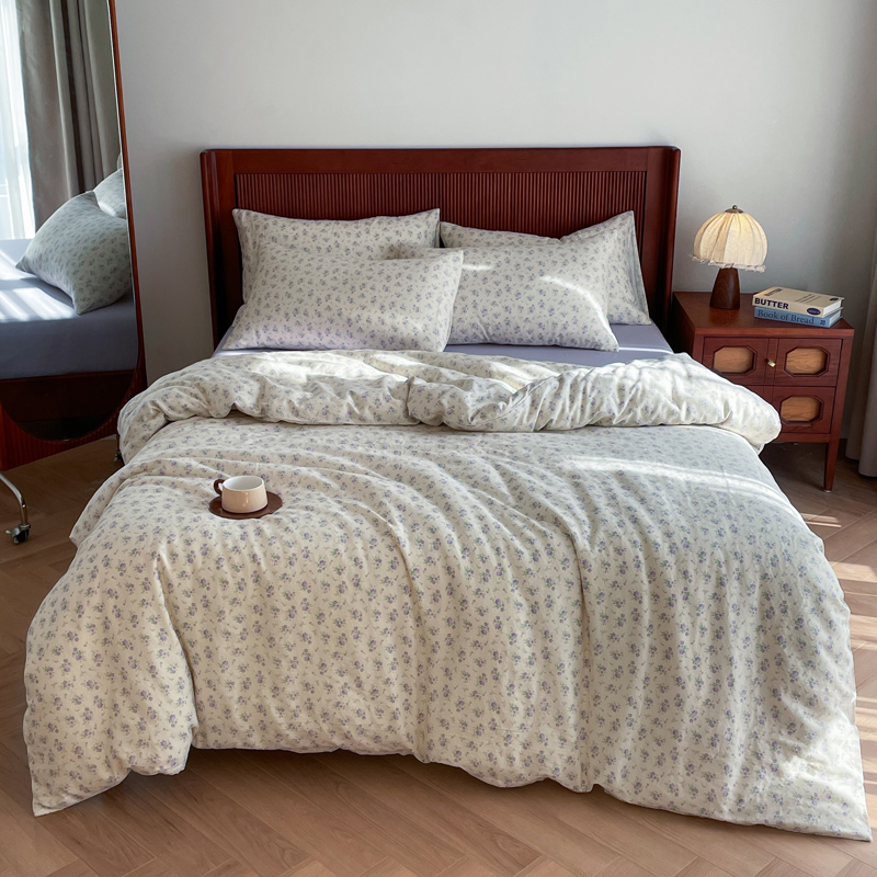 一比一家纺 2025新款全棉母婴级抗菌有氧全棉双层纱亲肤全棉小清新印花三件套四件套 寻意花海