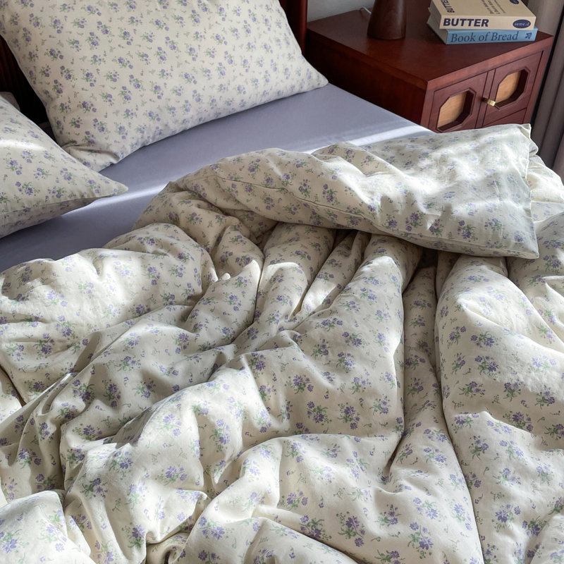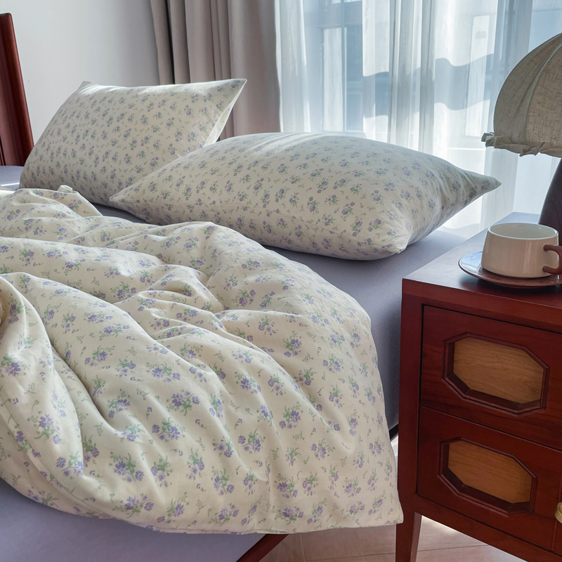 商品名称:一比一家纺 2025新款全棉母婴级抗菌有氧全棉双层纱亲肤全棉小清新印花三件套四件套 寻意花海