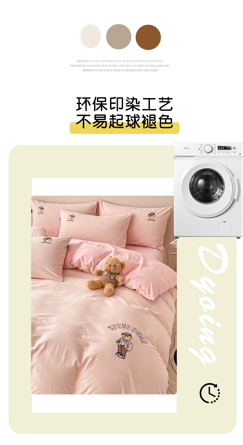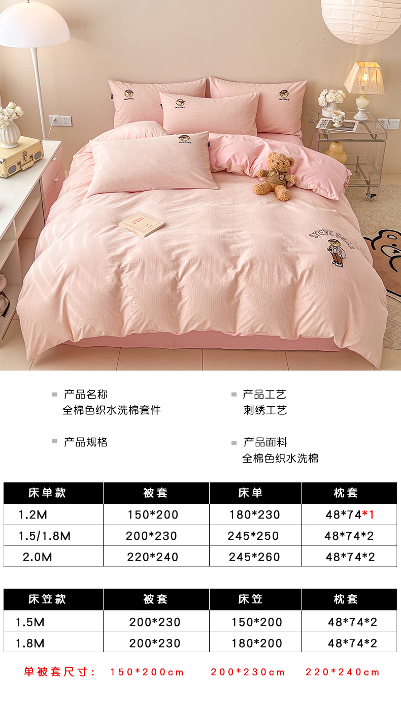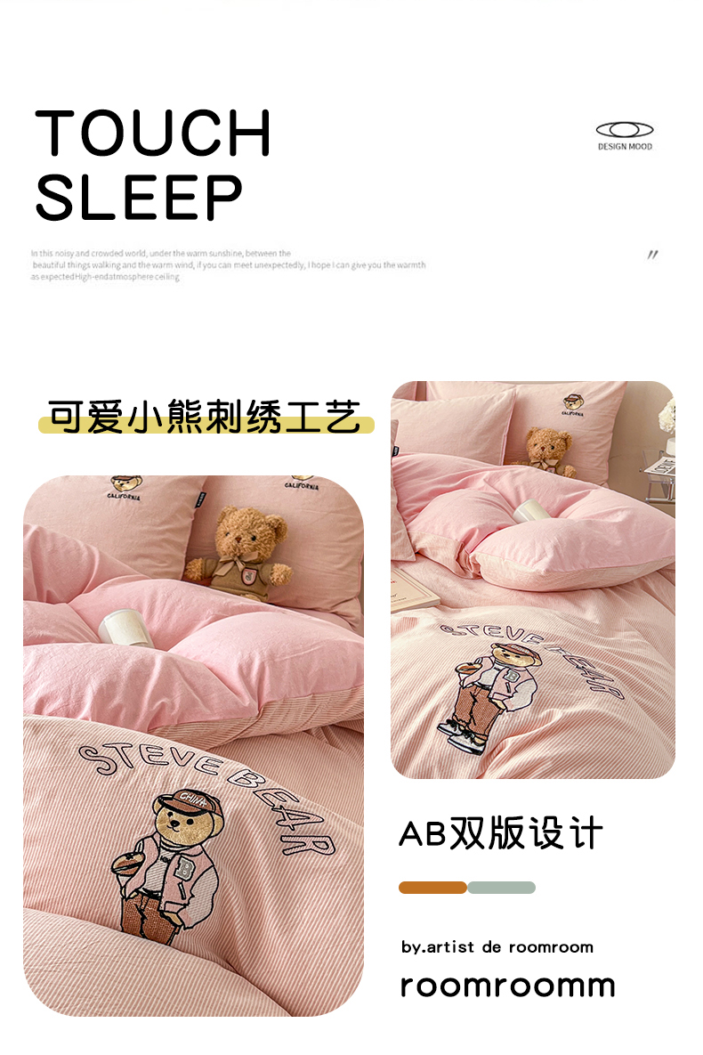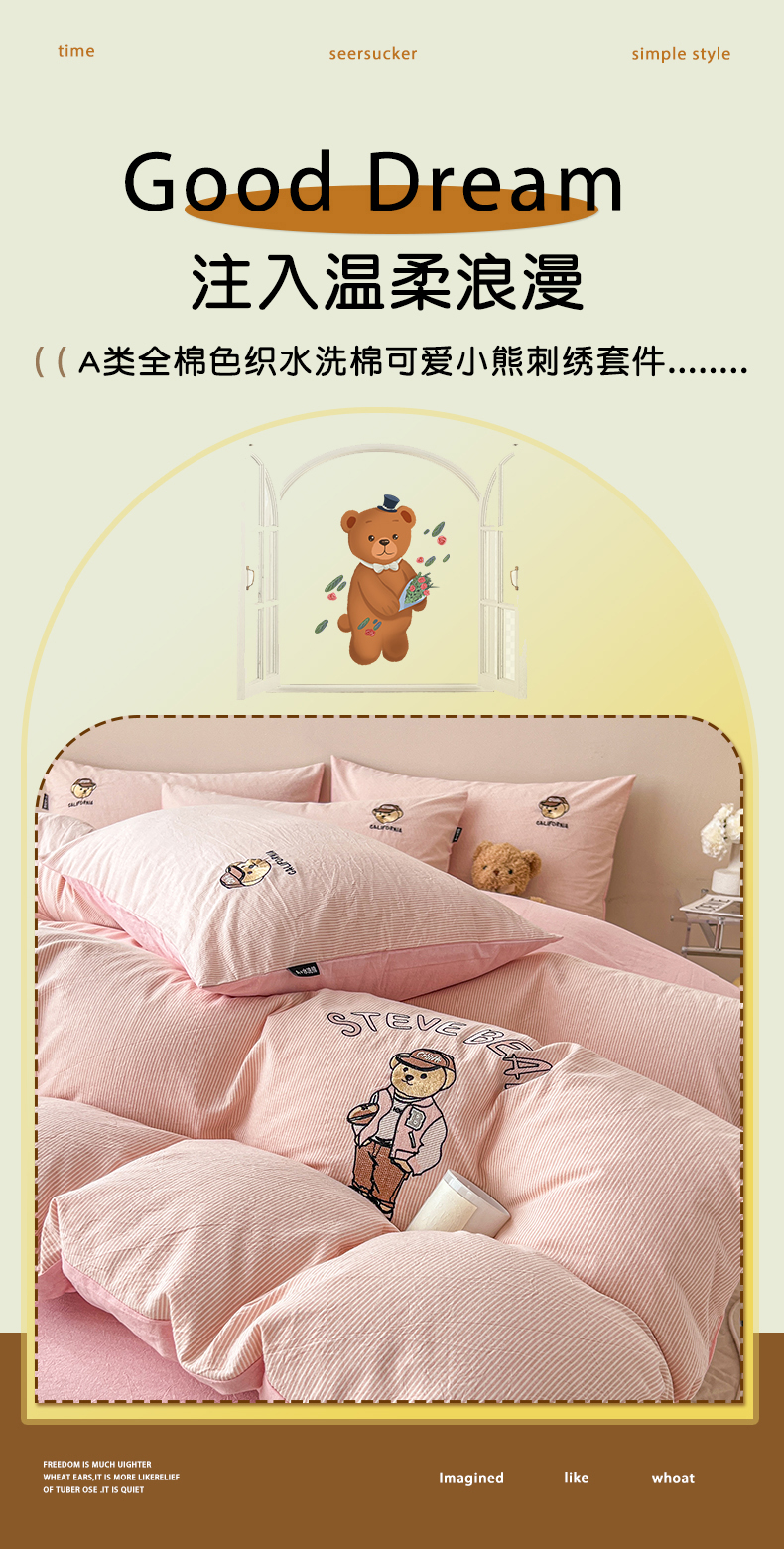 当前位置: 91家纺网 > 商品网购 > 床品套件 > 四件套 > 水洗棉四件套 > 2025新款A类全棉色织水洗棉可爱小熊刺绣四件套 小熊先生-条纹粉