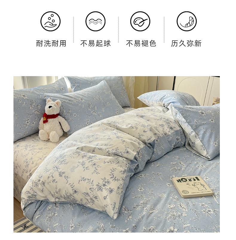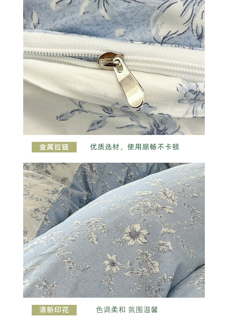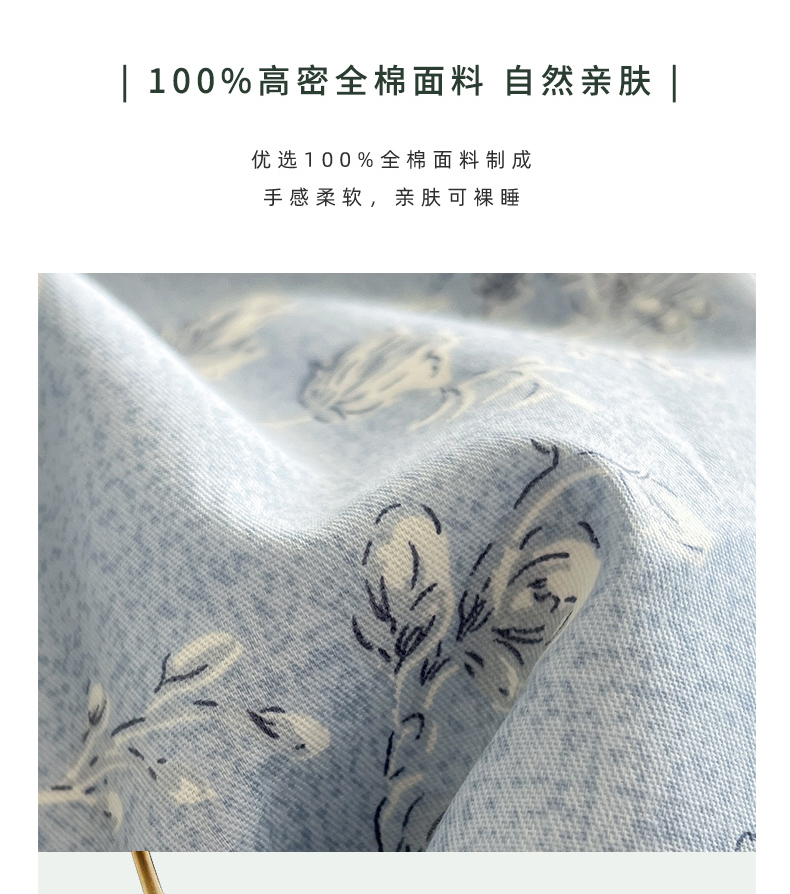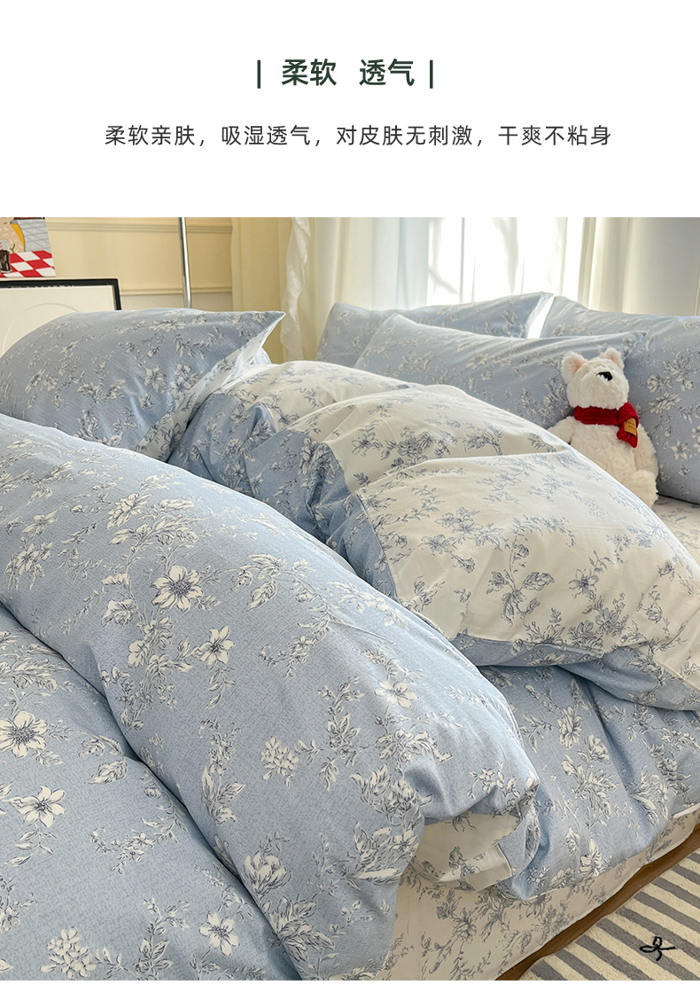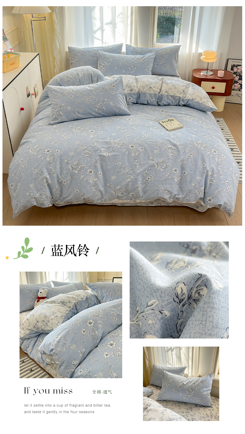商品名称:捌月 2025新款13372喷气全棉四件套-花园里系列 蓝风铃