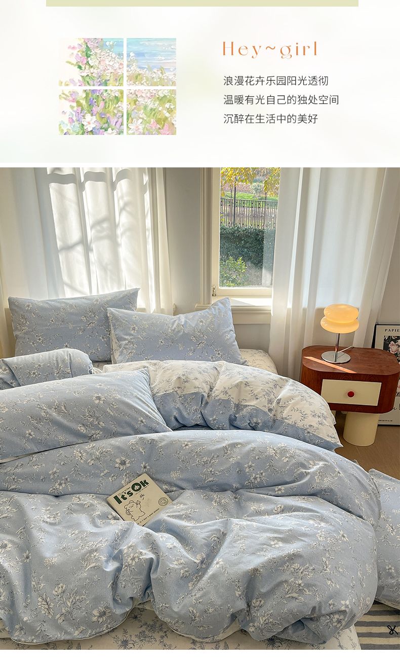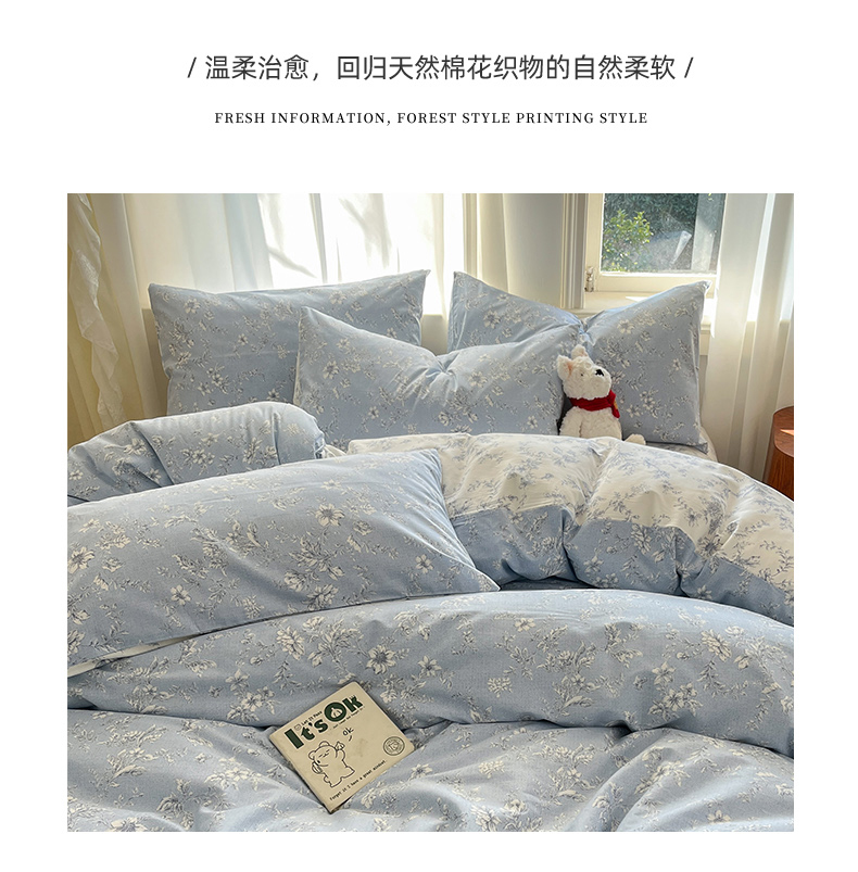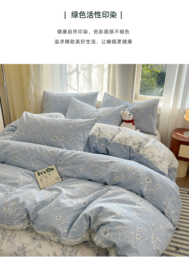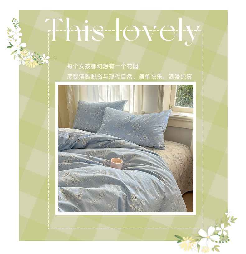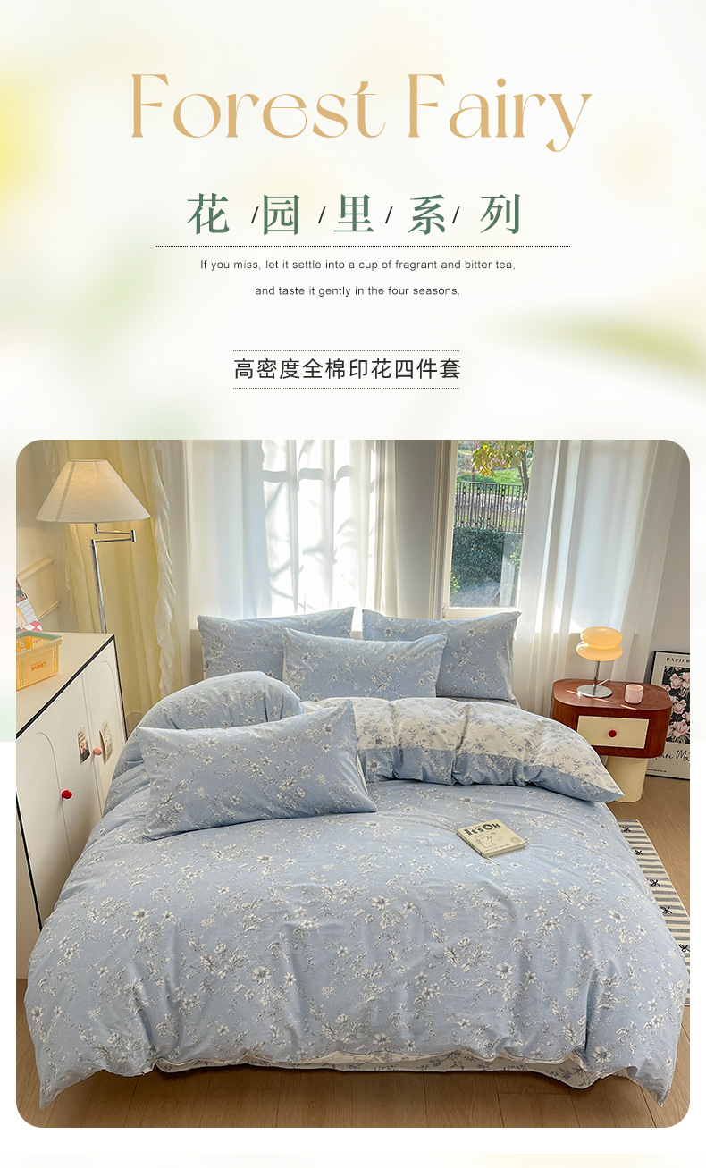 (总)捌月 2025新款13372全棉四件套花园里系列小清新全棉四件套热卖新品,艾美,蓝风铃,蓝汐,流年,魅影,木兰,年华,浅浅,青花瓷,青木,轻颜,韶华,思绪,汐月
