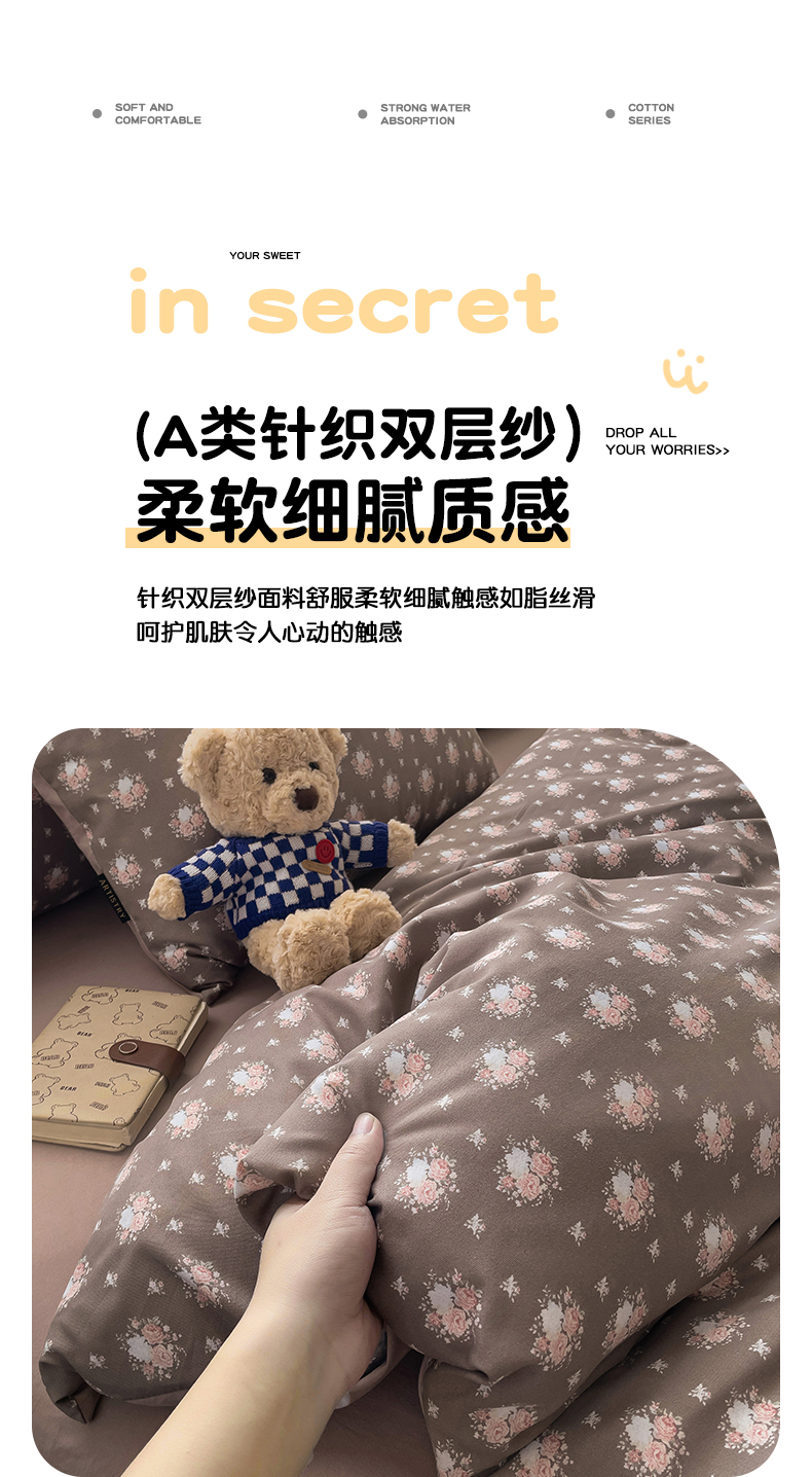 娜娜2025新款A类针织双层纱印花四件套 太阳花