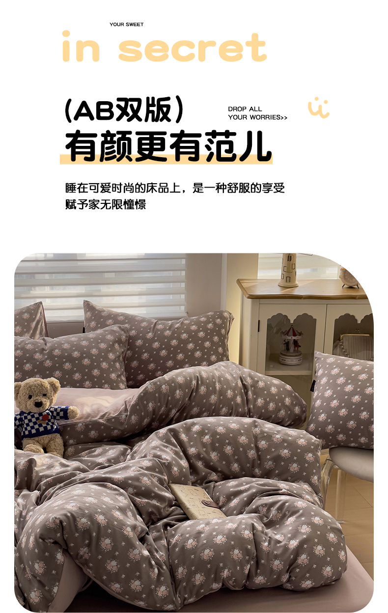 (总)娜娜 2026新款A类云朵锦花边四件套,动物世界-雾蓝,满天星-豆沙,满天星-浅紫,小雏菊-浅绿,小雏菊-玉色,樱花粉