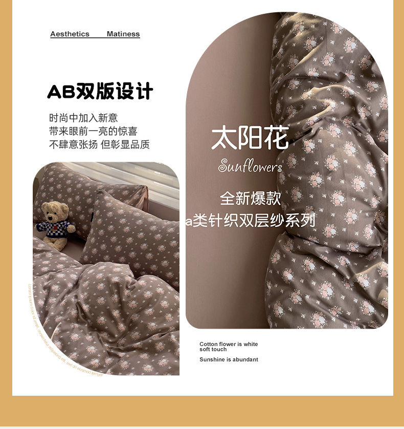 商品名称:娜娜2025新款A类针织双层纱印花四件套 太阳花