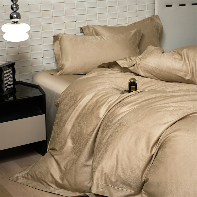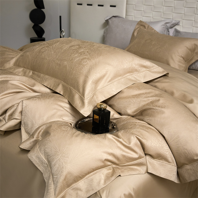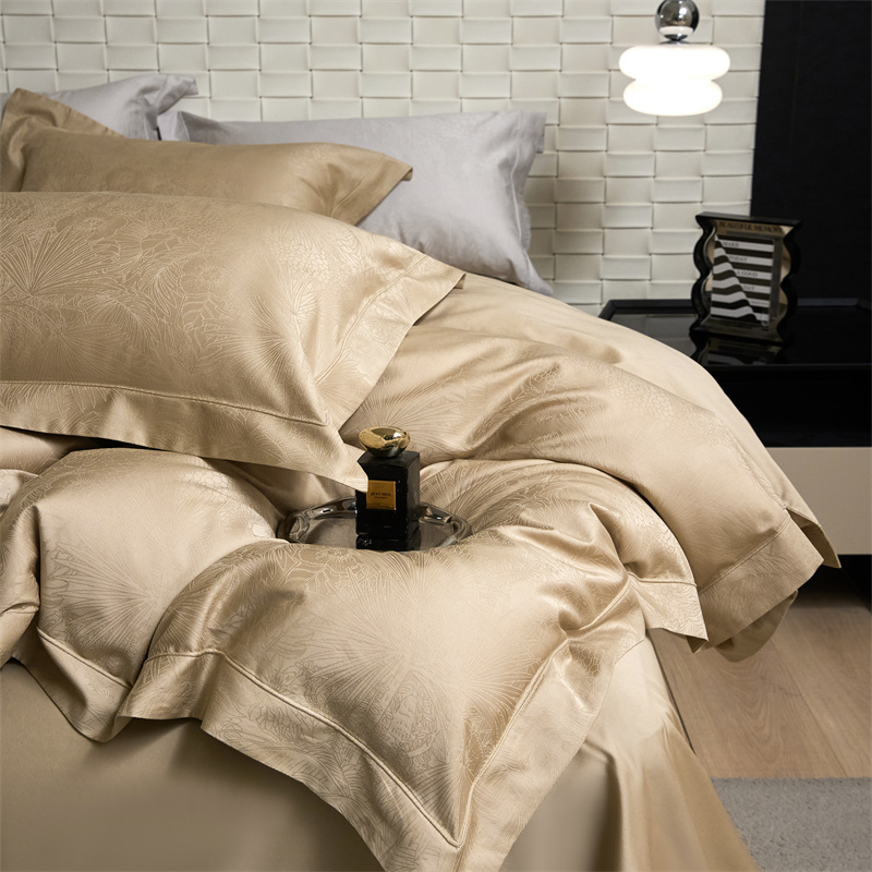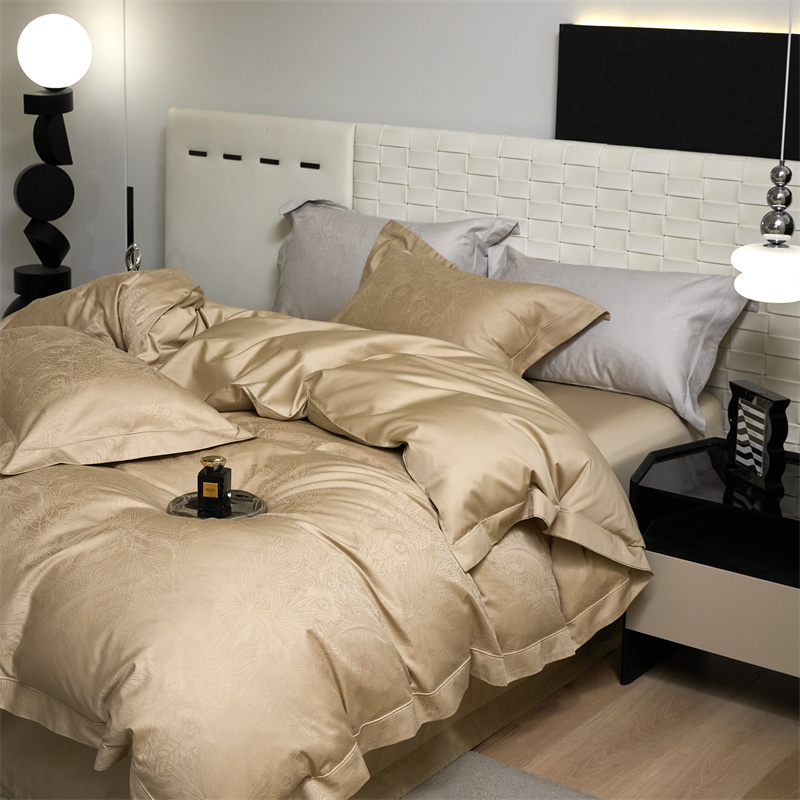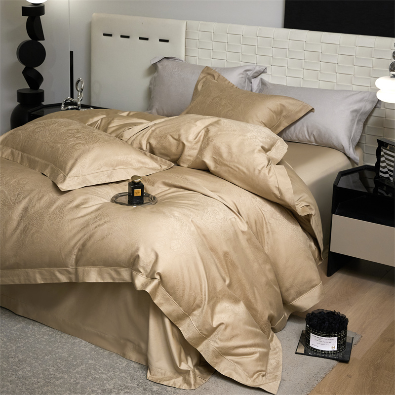 淳绵家居 2025新款50*50S长绒棉贡缎提花手工立体埋绳工艺四件套(礼盒包装) 洛奇(金驼)