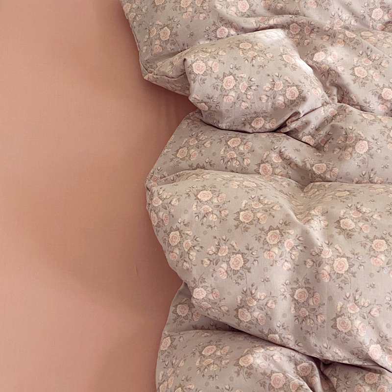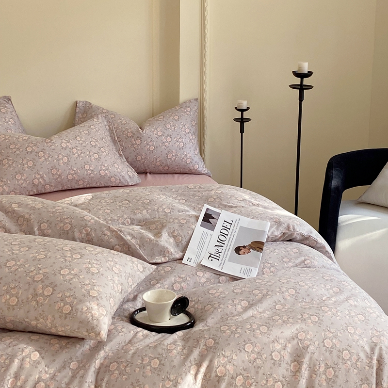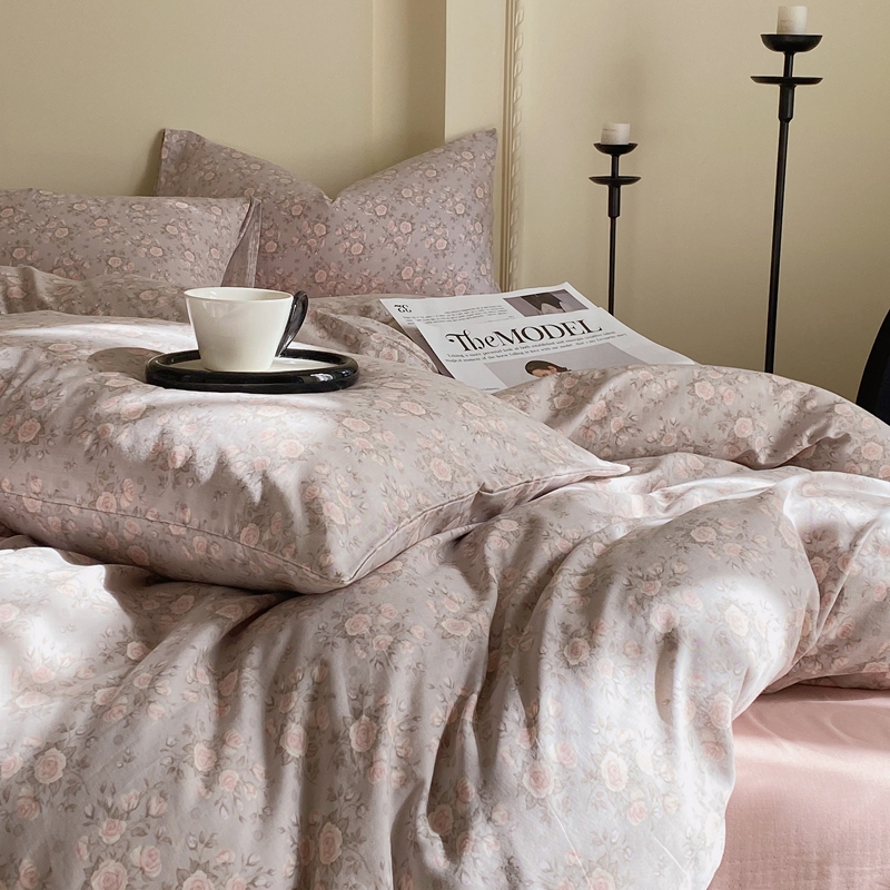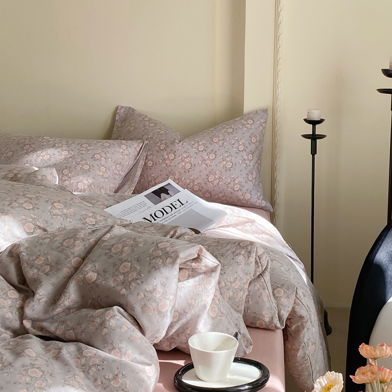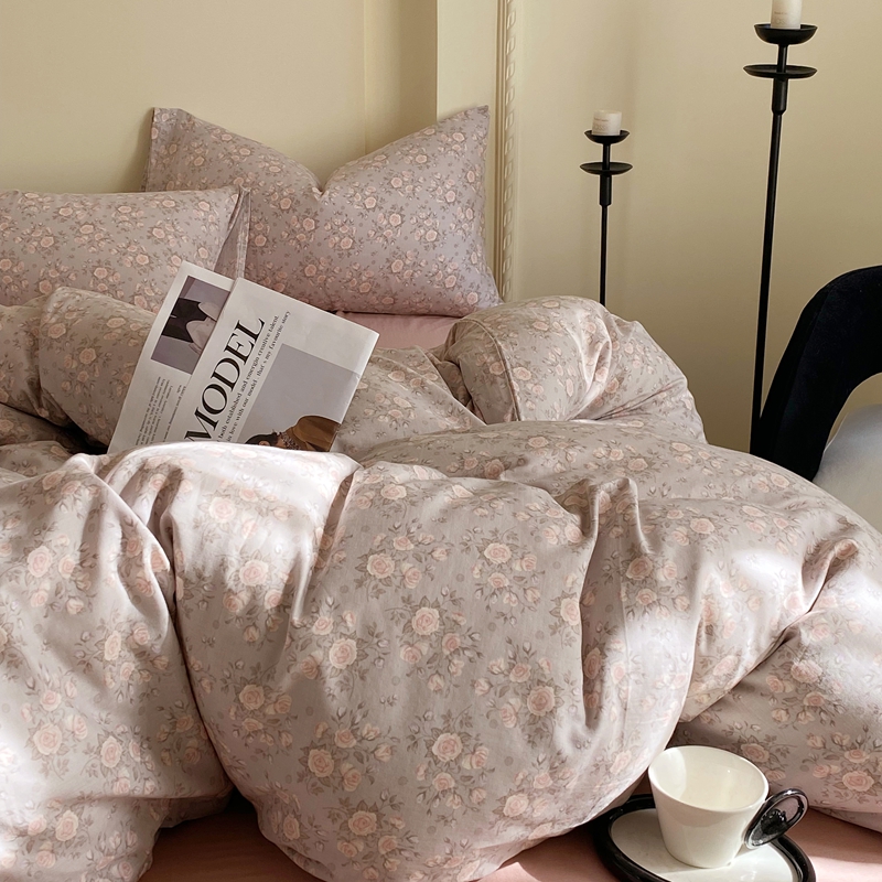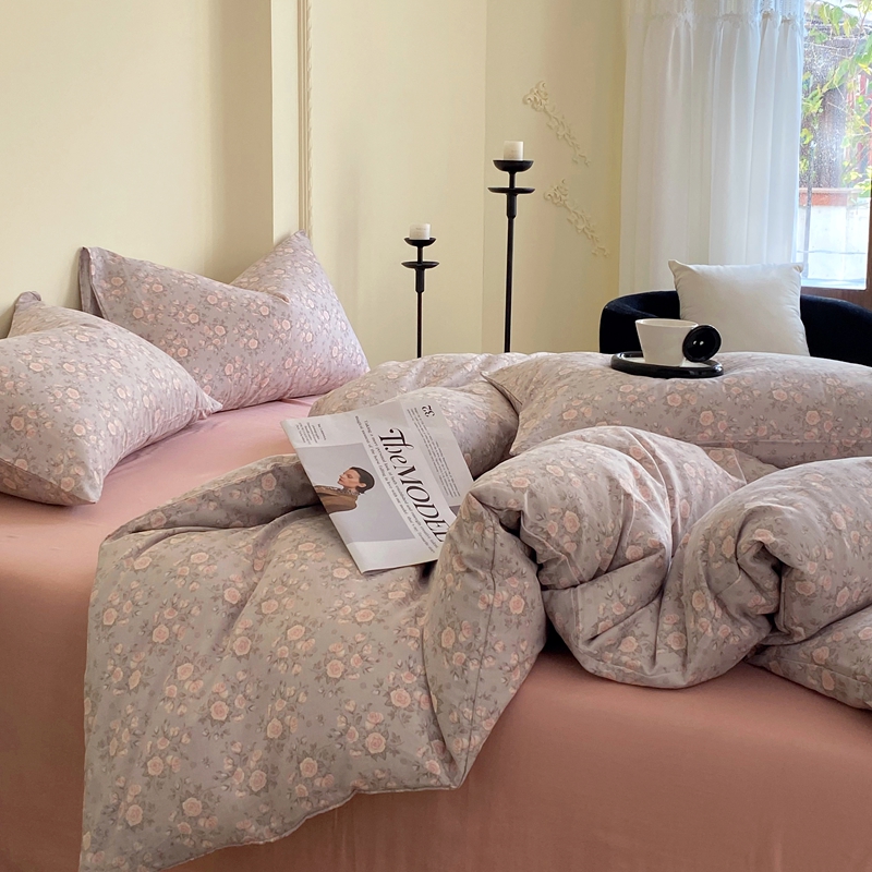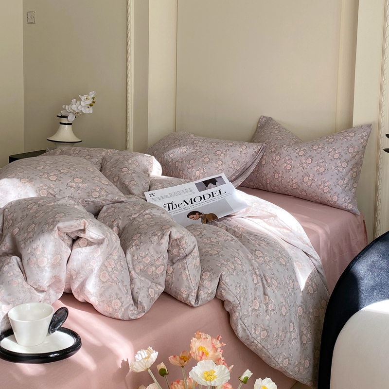 于果 2025新款全棉双层纱四件套 玫瑰-灰