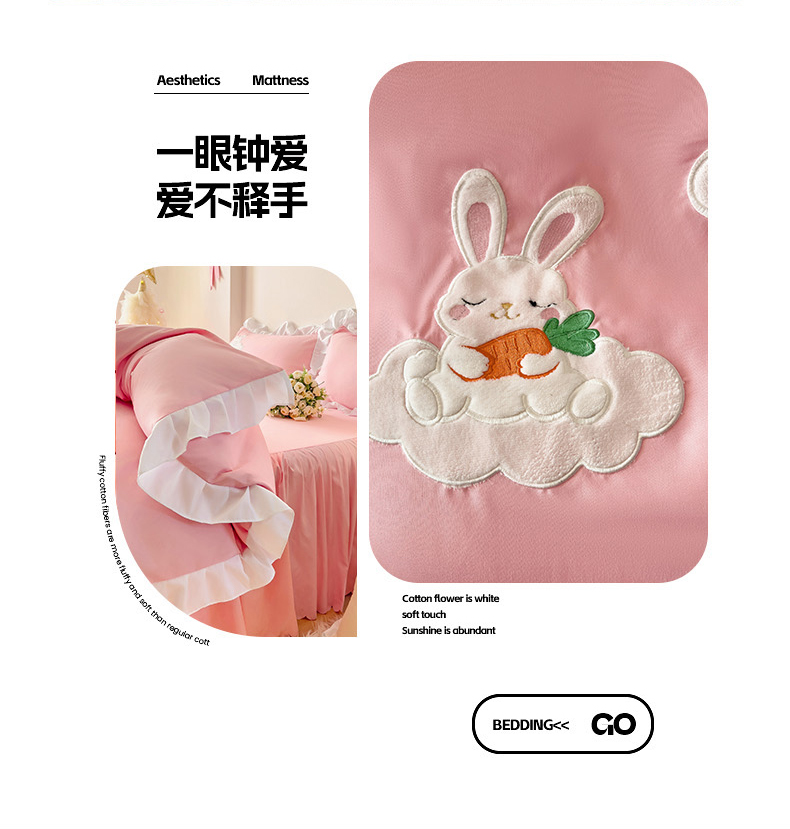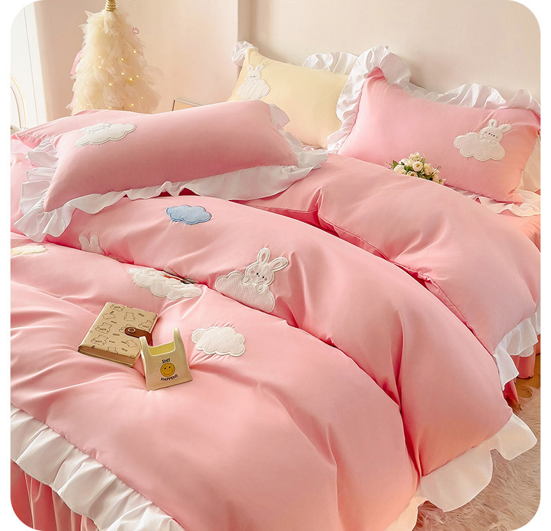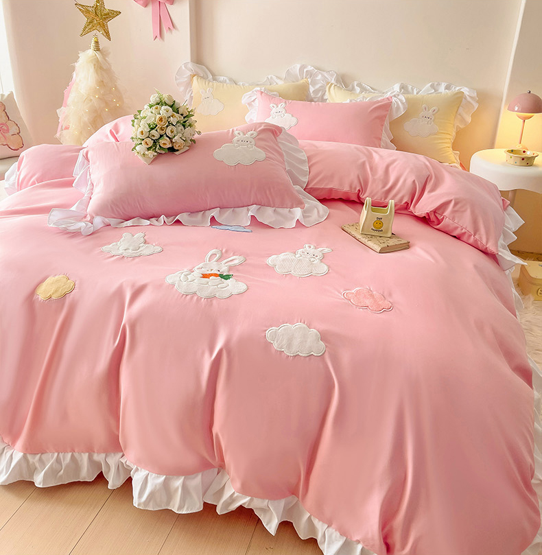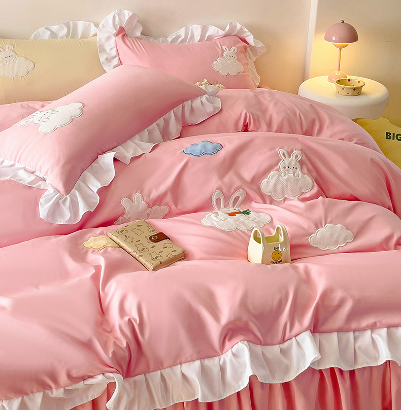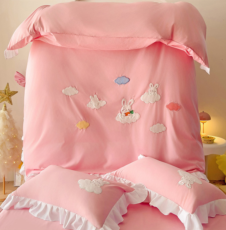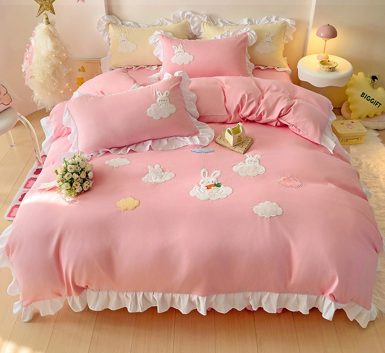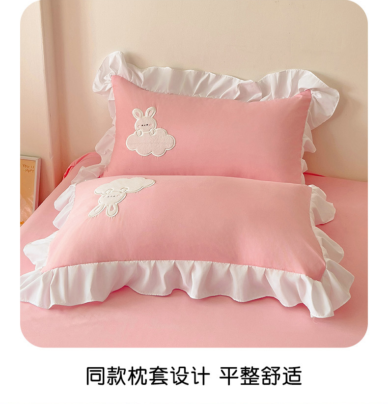 当前位置: 91家纺网 > 商品网购 > 床品套件 > 四件套 > 水洗棉四件套 > 慕语家纺 2025新款韩版水洗磨毛棉卡通贴布绣四件套-云朵兔 云朵兔-浅玉粉