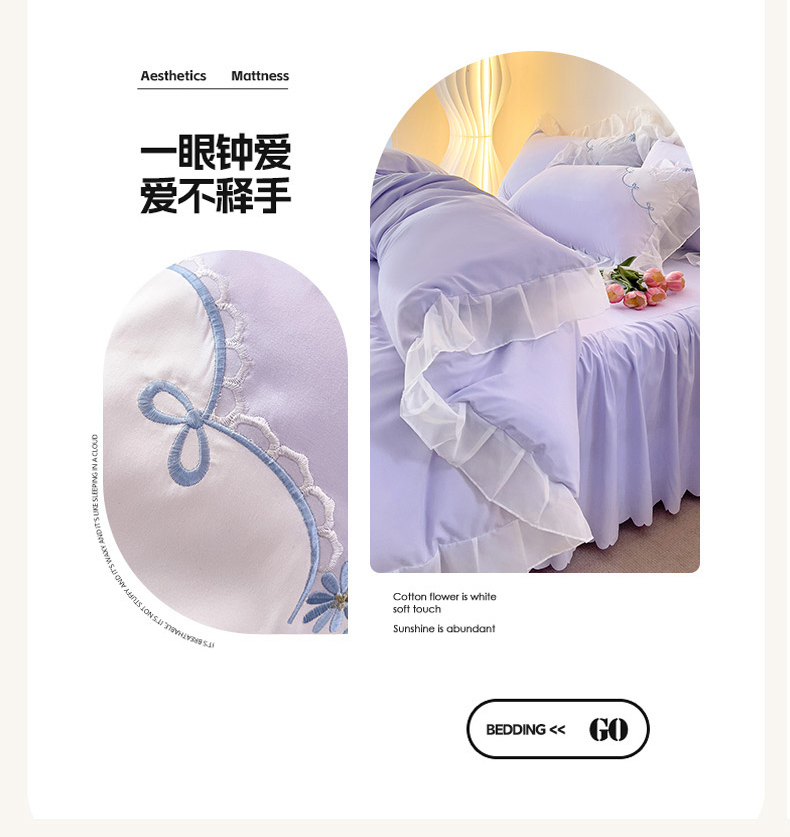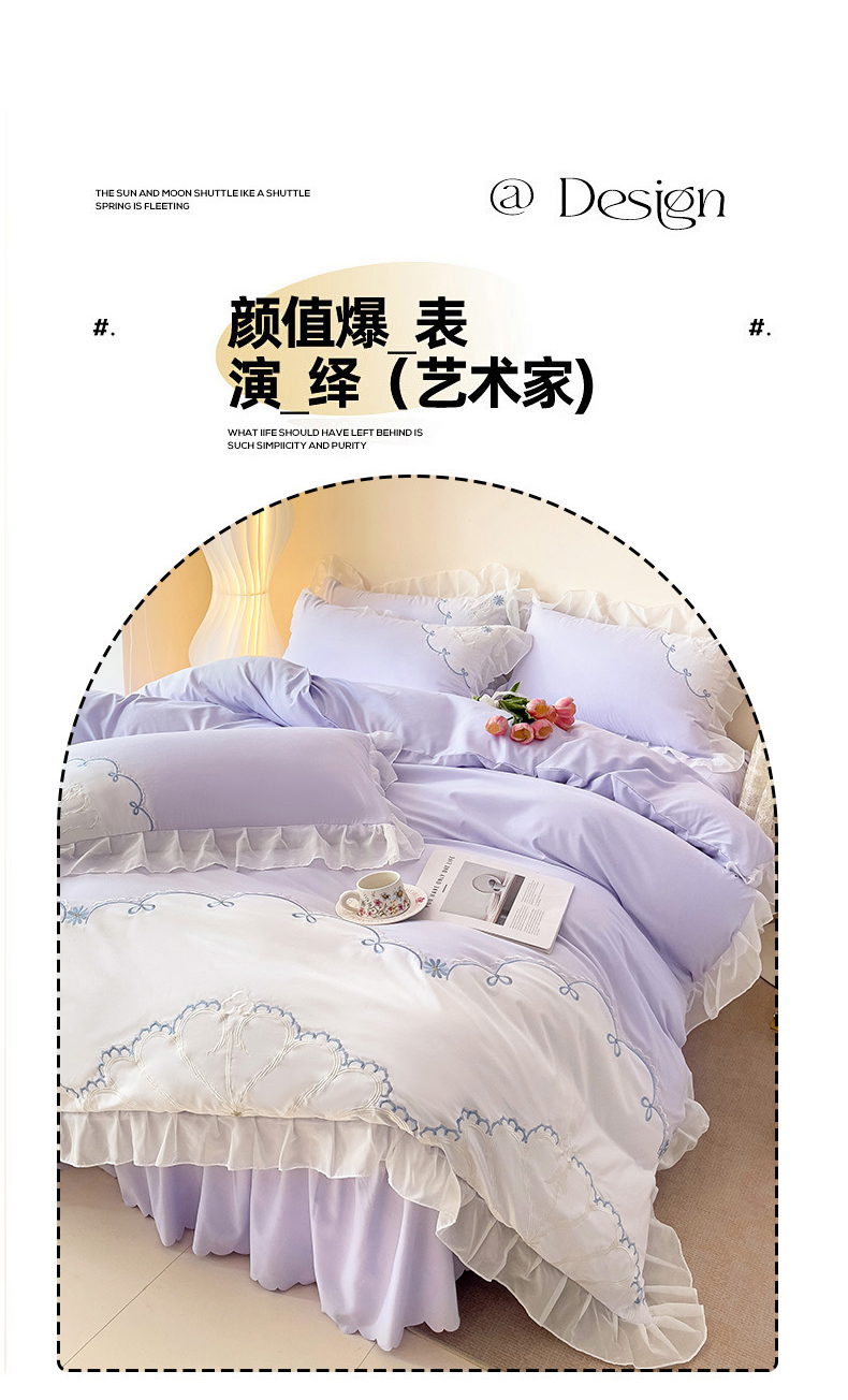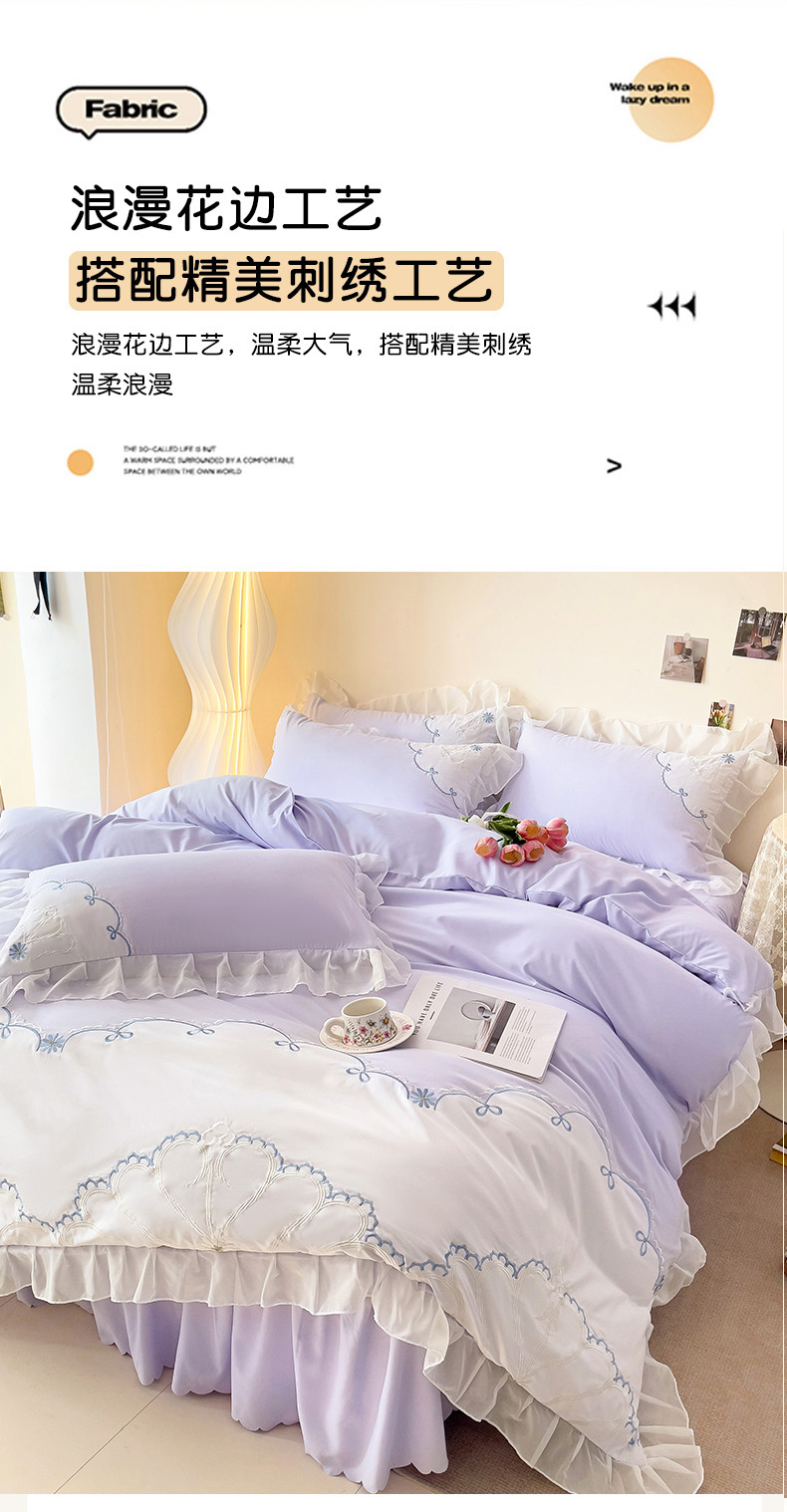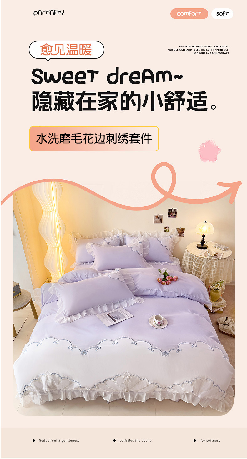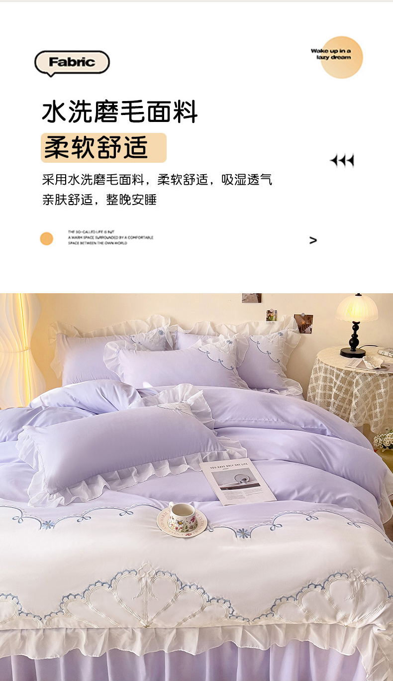 当前位置: 91家纺网 > 商品网购 > 床品套件 > 四件套 > 水洗棉四件套 > 慕语家纺 2025新款韩版高支高密水洗磨毛棉贴布绣四件套-克拉恋人 克拉恋人-米紫色