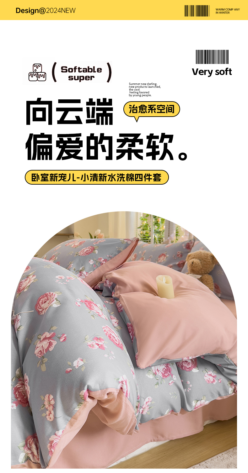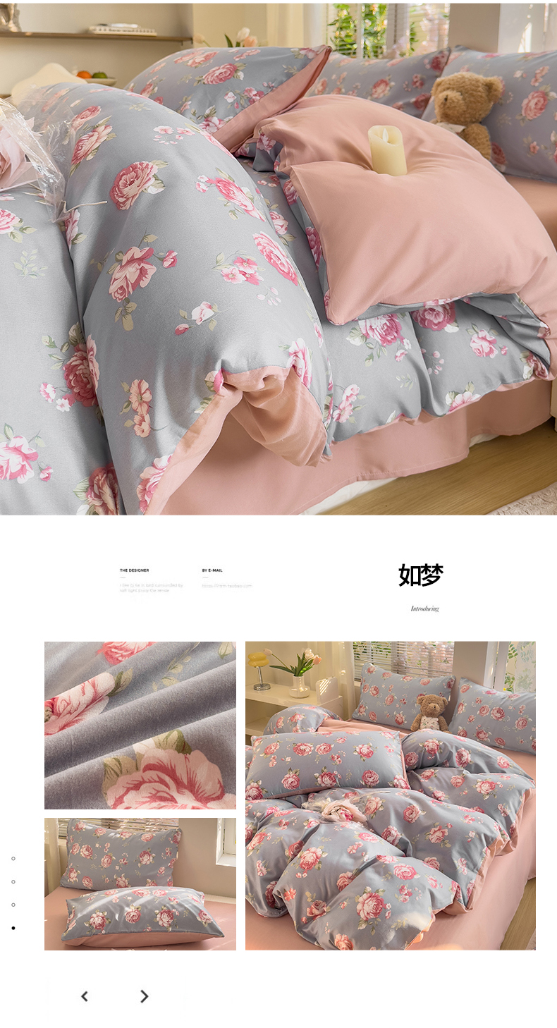 雅阁尔2025新款直播热款水洗棉四件套小碎花床单被套三件套 如梦