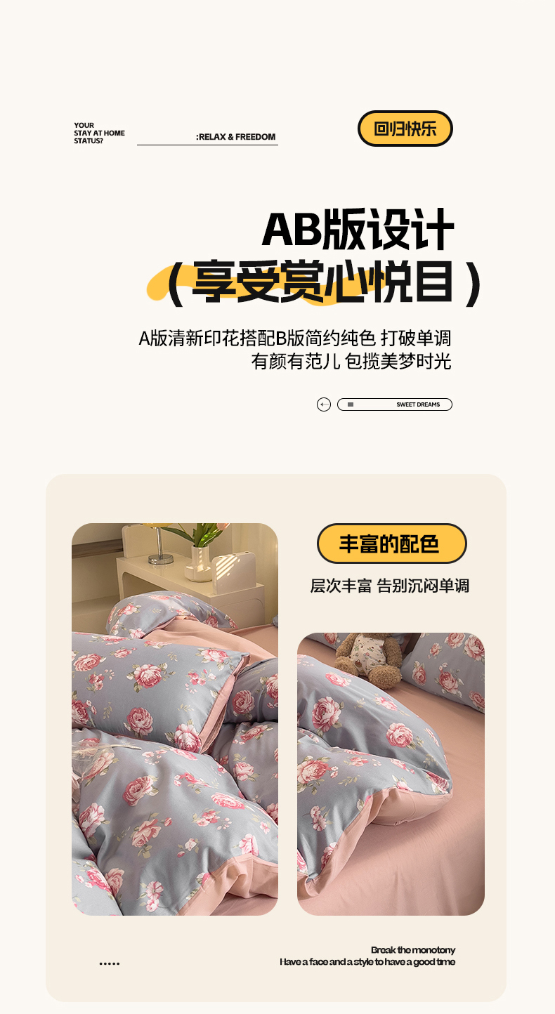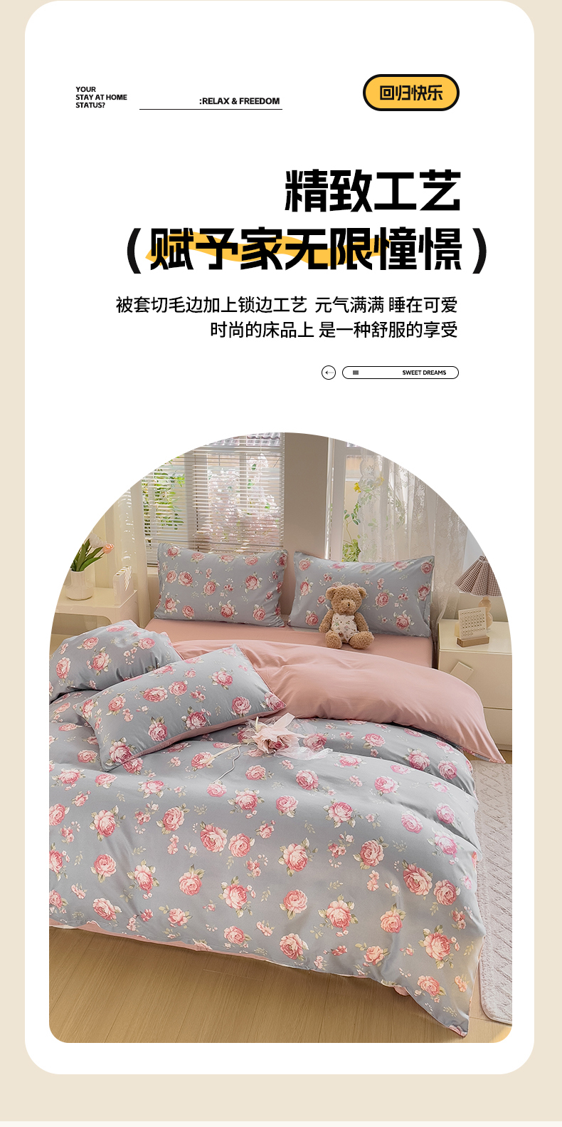(总)雅阁尔家纺 2022新款活性芦荟棉四件套,比心,筚路蓝缕,潮牌,吃货,地鼠,格调灰,格悦-深灰,花心萝卜,火龙果,加冕,简单爱,鲸鱼,快乐兔,浪漫樱桃,浪漫之夜,流星物语,罗马假日,罗马空间,梦格,梦想十分,奶牛,时尚生活,贪吃熊,悉尼,笑脸,熊宝宝,旋转三角,烟云,夜枫,一鹿平安,印象-黄,元气熊