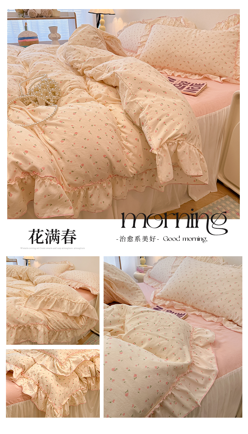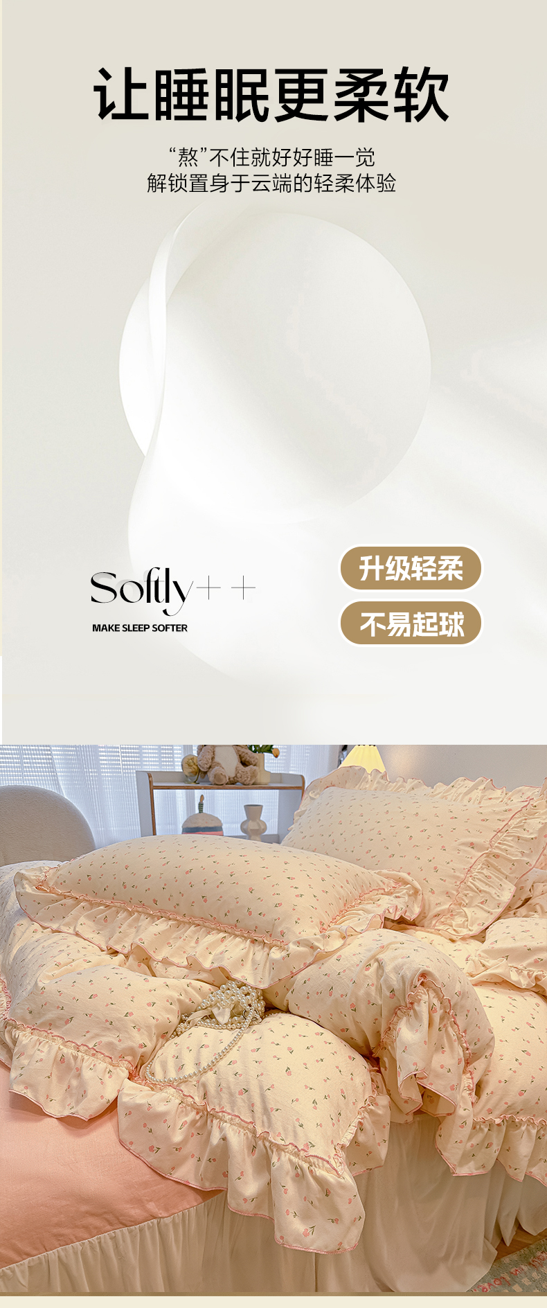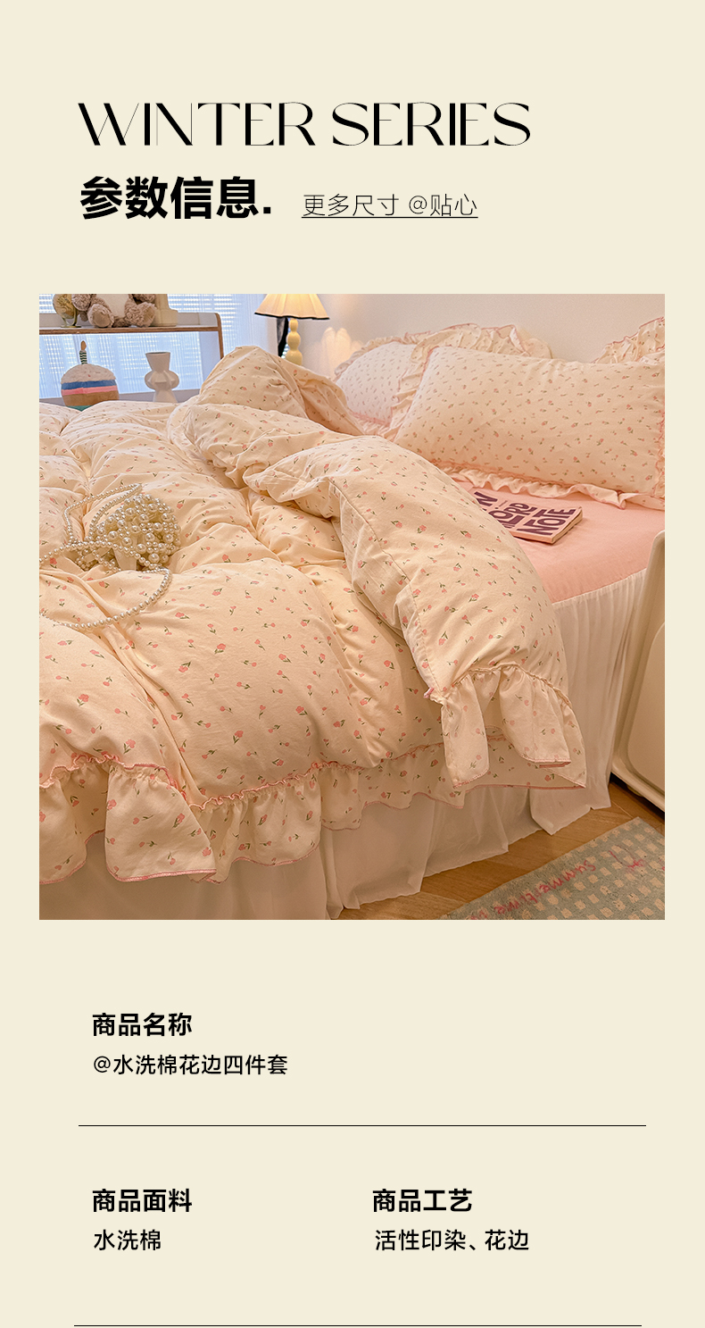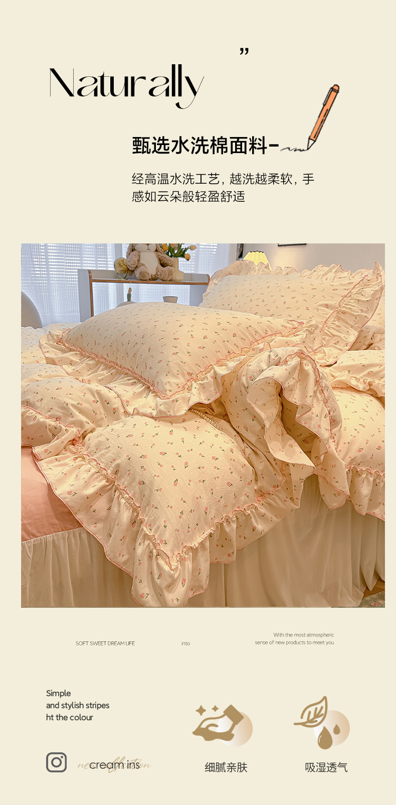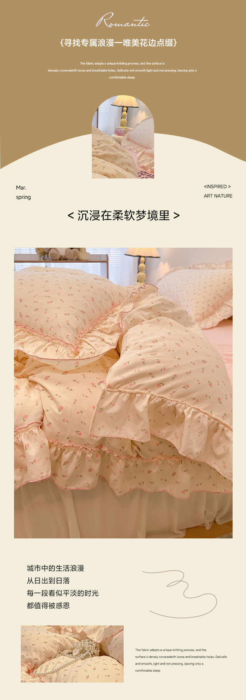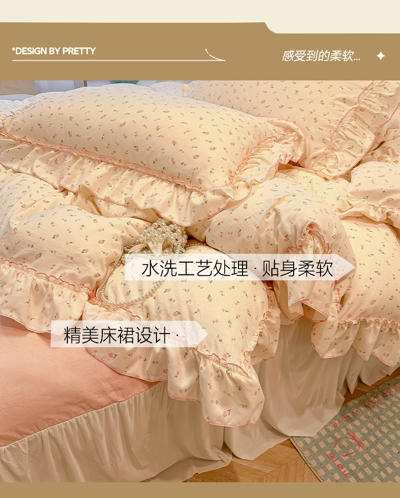 当前位置: 91家纺网 > 商品网购 > 床品套件 > 四件套 > 其它四件套 > 盼季家纺 2025新款公主风花边小清新水洗棉床上四件套床单被套床裙三件套-风格一 花满春