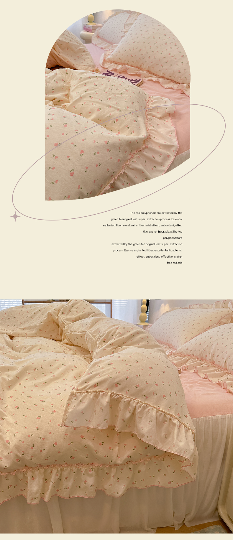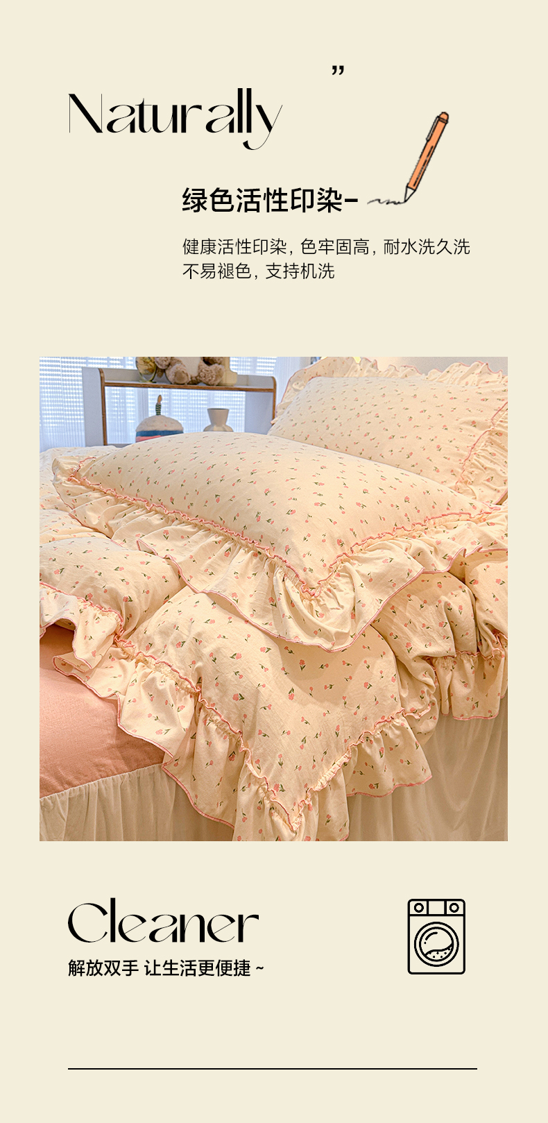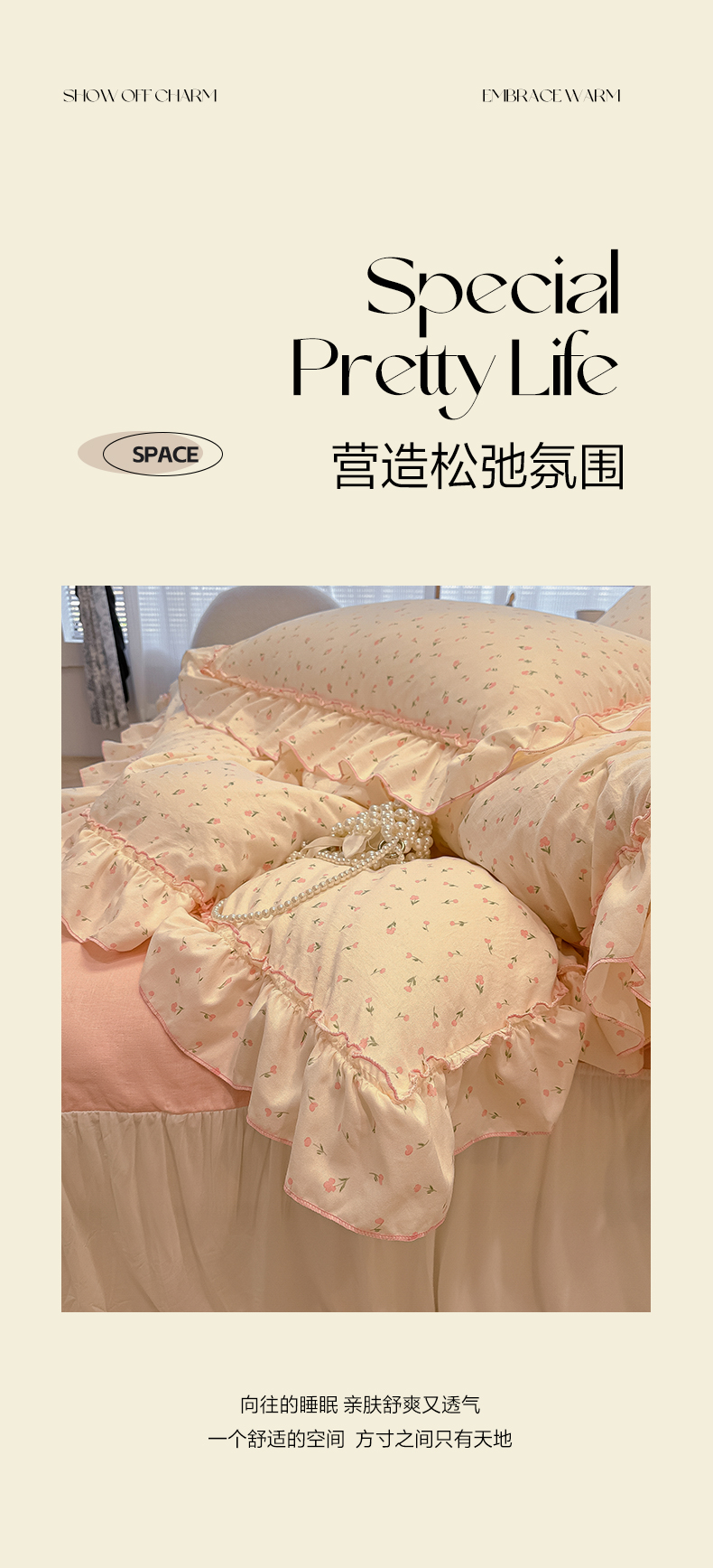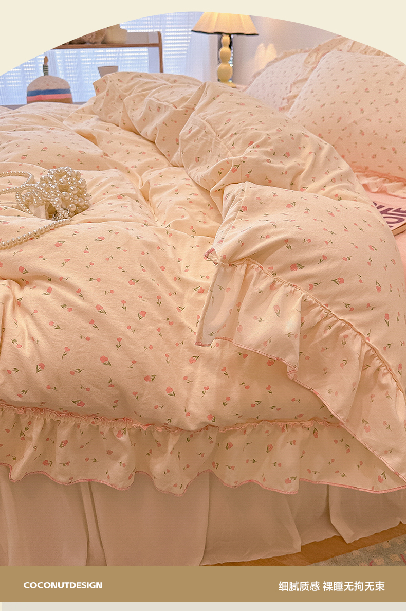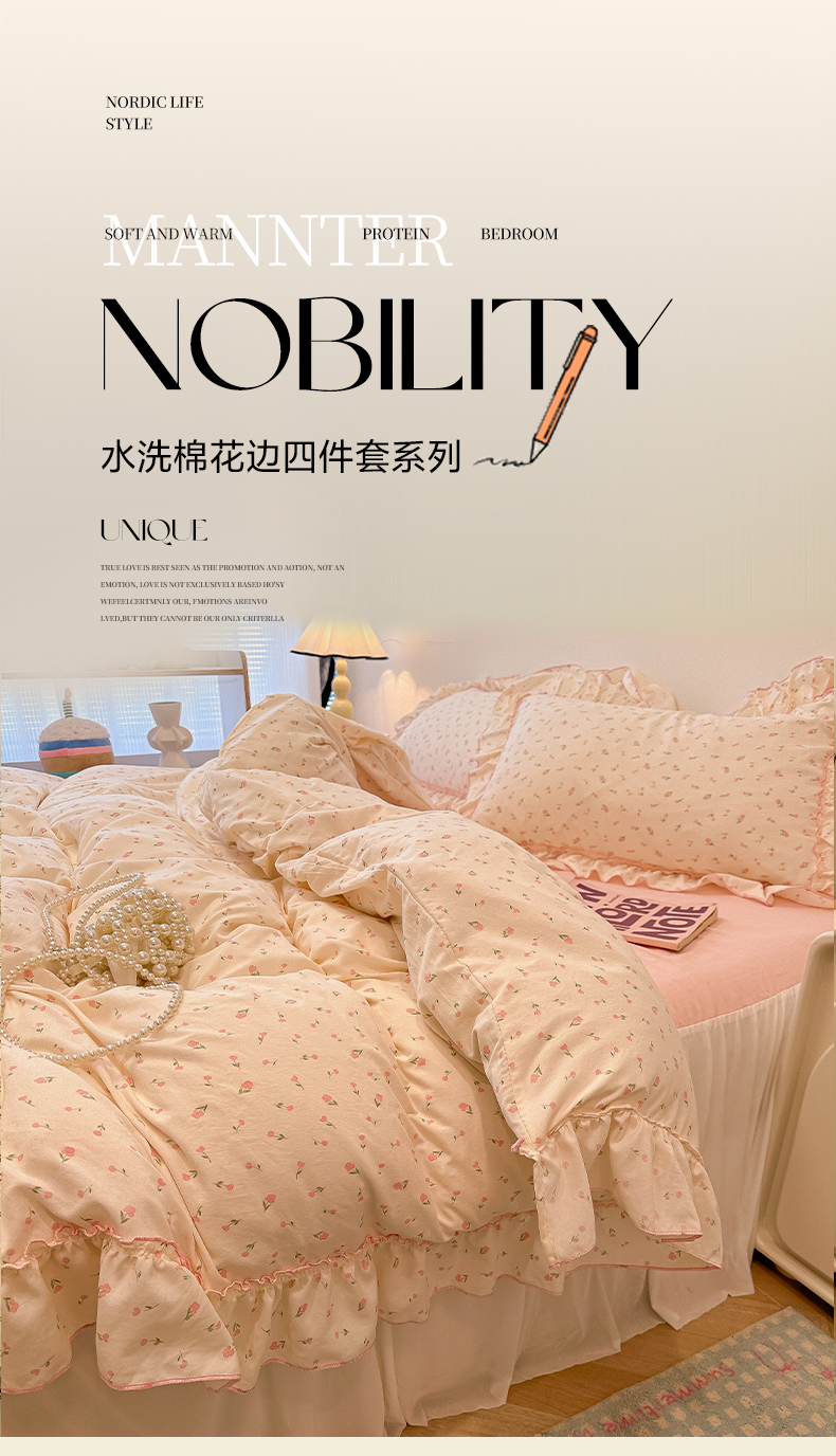 当前位置: 91家纺网 > 商品网购 > 床品套件 > 四件套 > 其它四件套 > 盼季家纺 2025新款公主风花边小清新水洗棉床上四件套床单被套床裙三件套-风格一 花满春