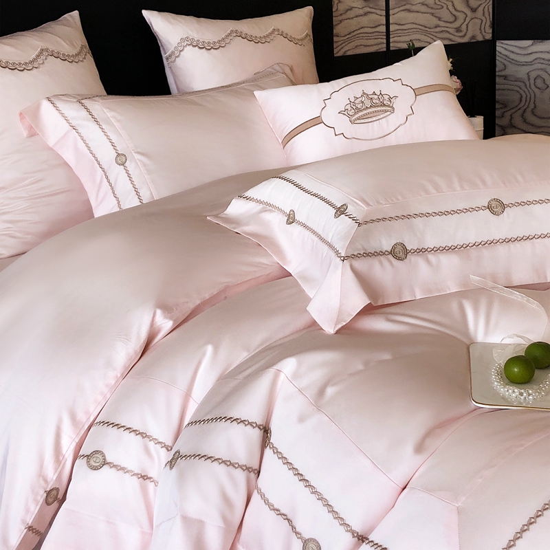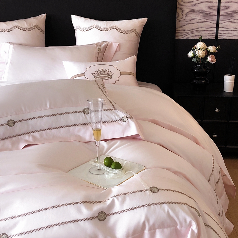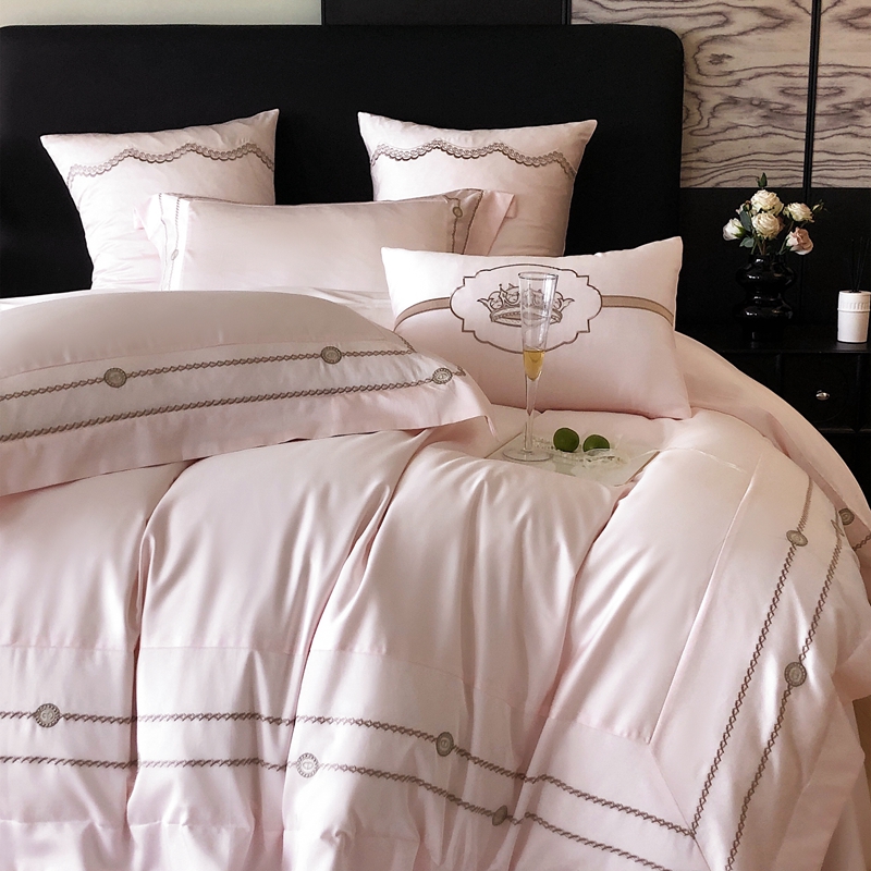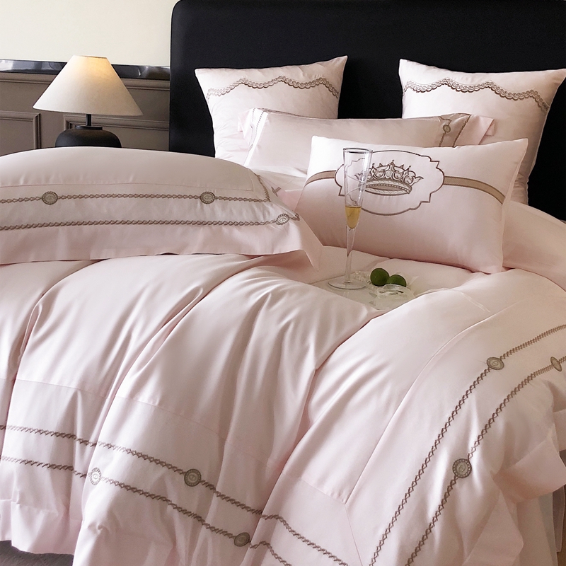 商品名称:曼布缇 2025春夏新款全棉高密工艺款高密绣花四件套-科瑞拉(会员-10) 科瑞拉-浅粉