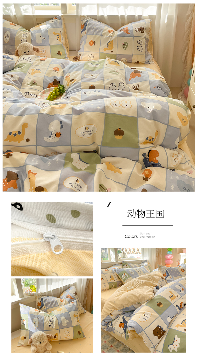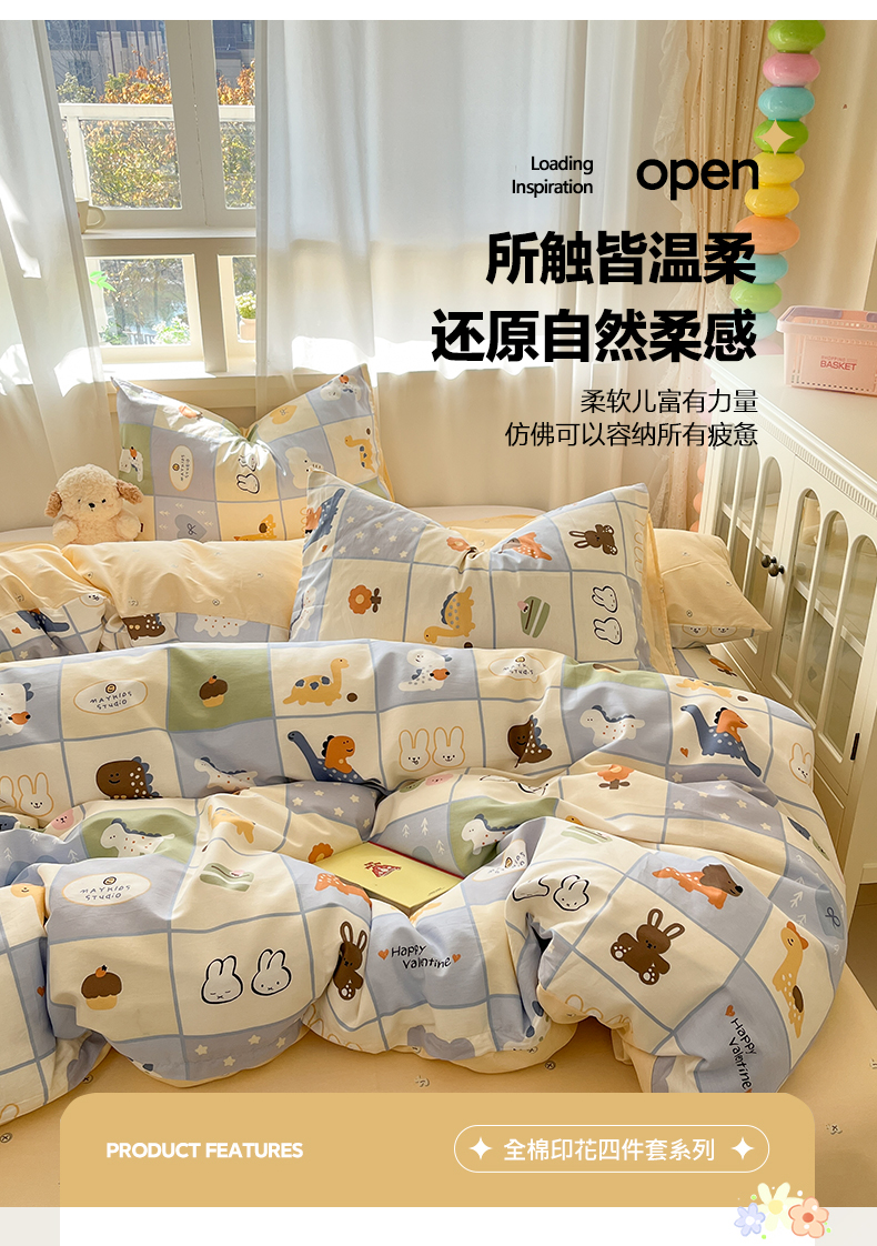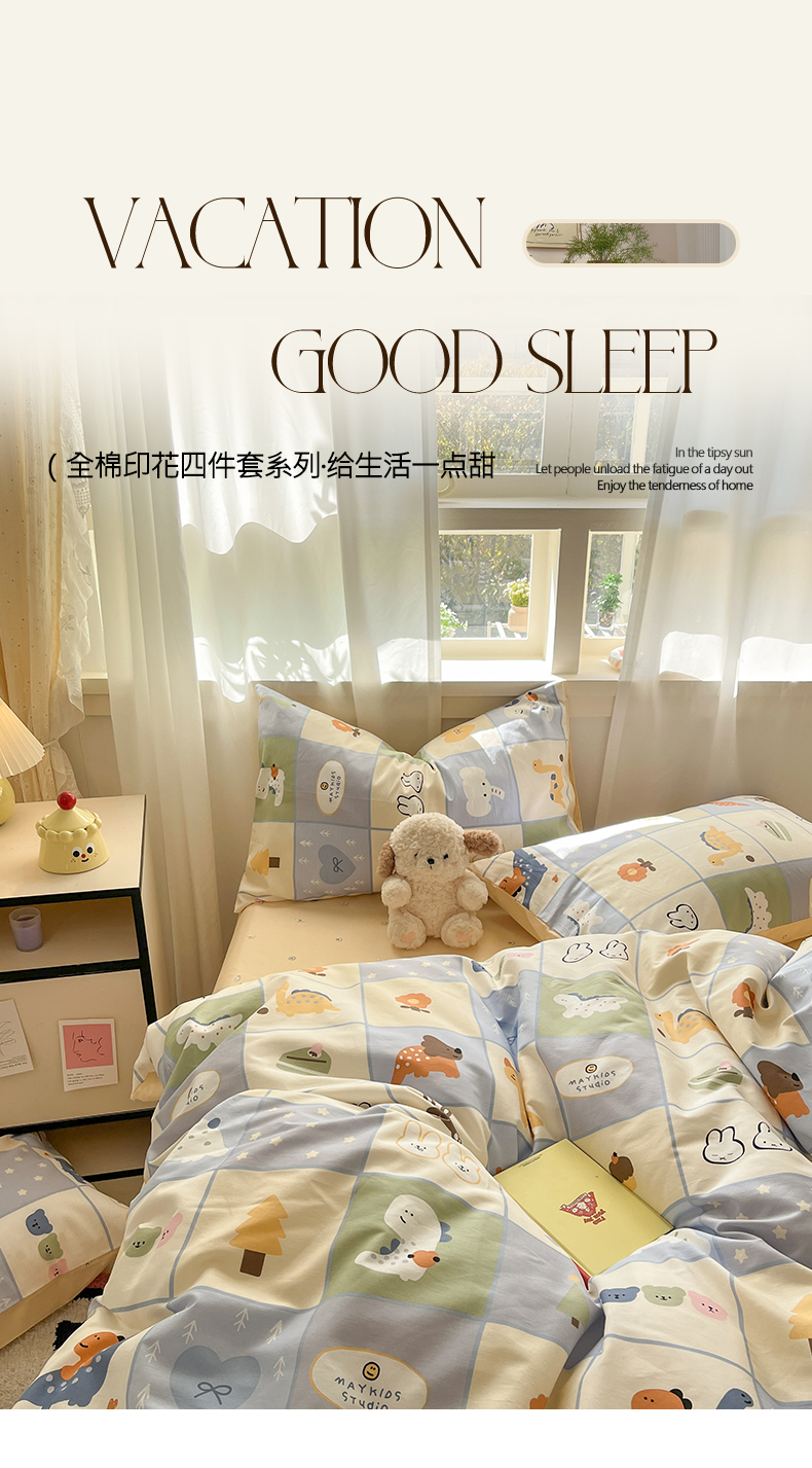 商品名称:盛馨家纺 2025新款ins小清新全棉四件套三件套床笠四件套跑量款系列 动物王国
