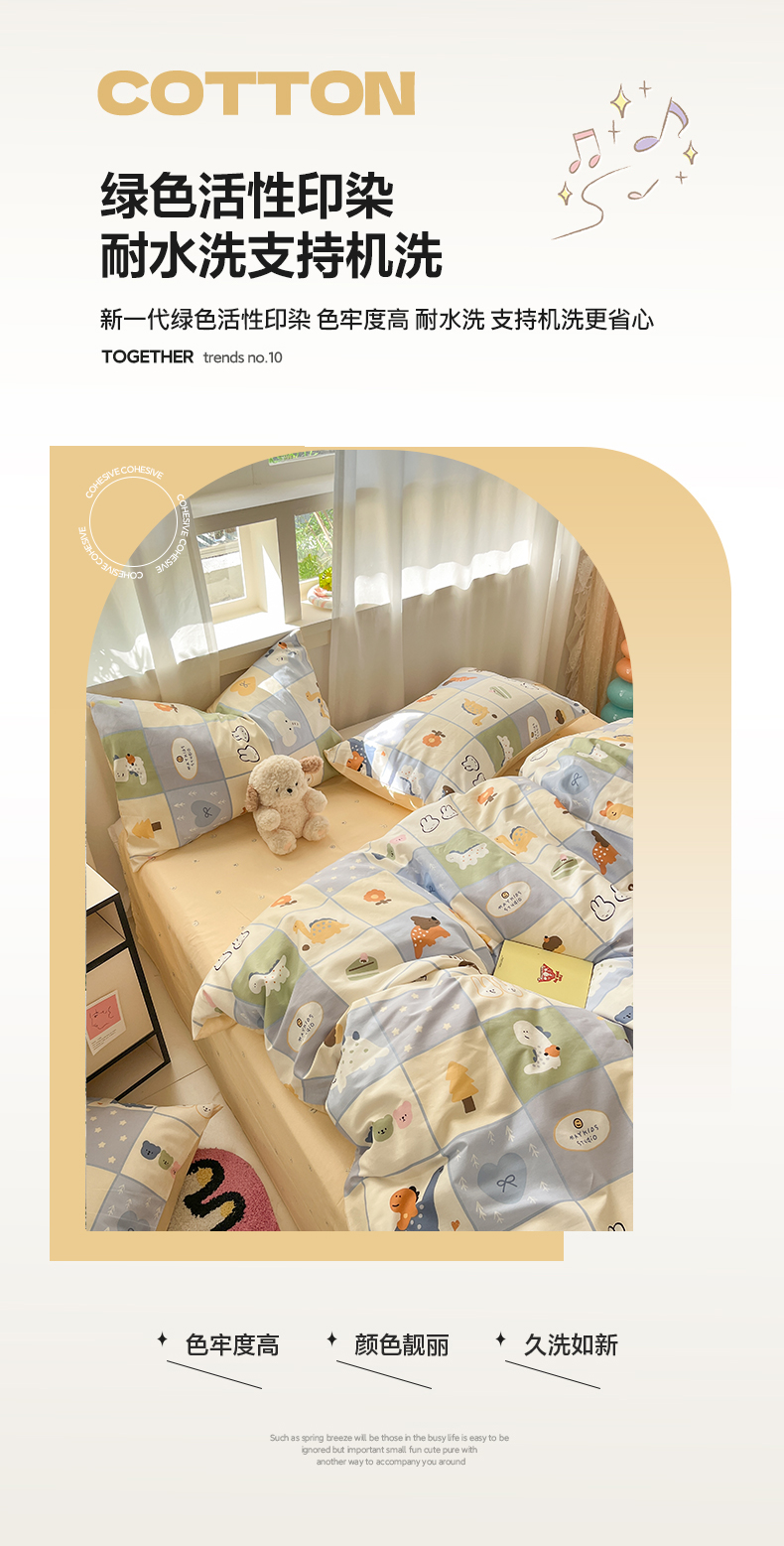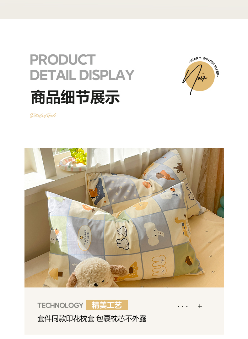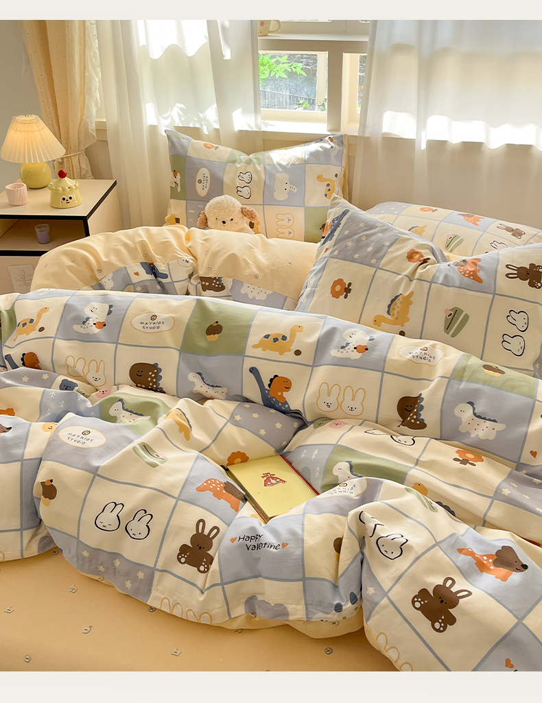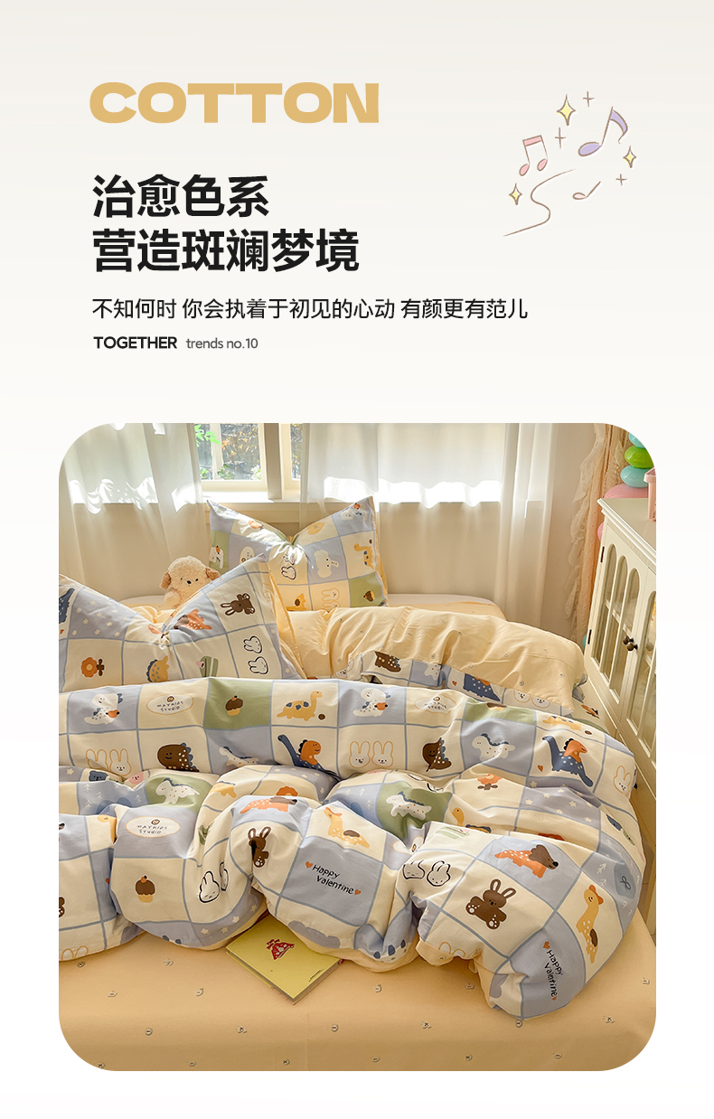 商品名称:盛馨家纺 2025新款ins小清新全棉四件套三件套床笠四件套跑量款系列 动物王国
