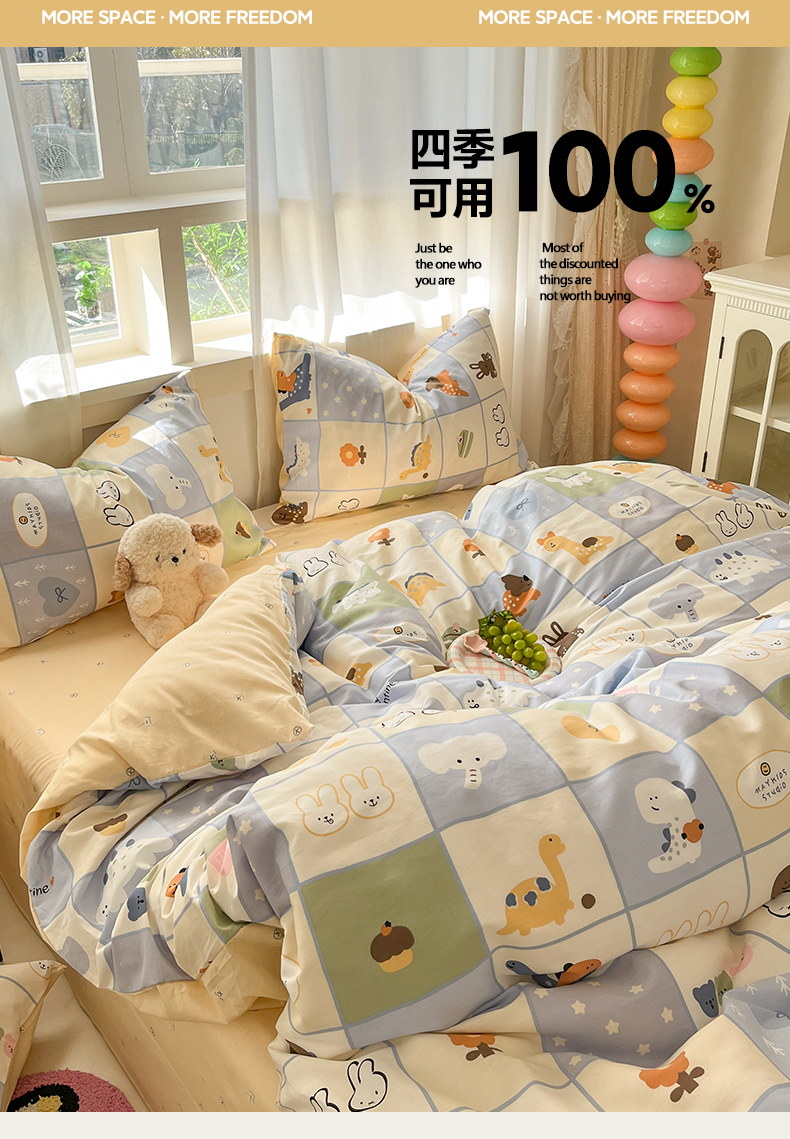 盛馨家纺 2025新款ins小清新全棉四件套三件套床笠四件套跑量款系列 动物王国
