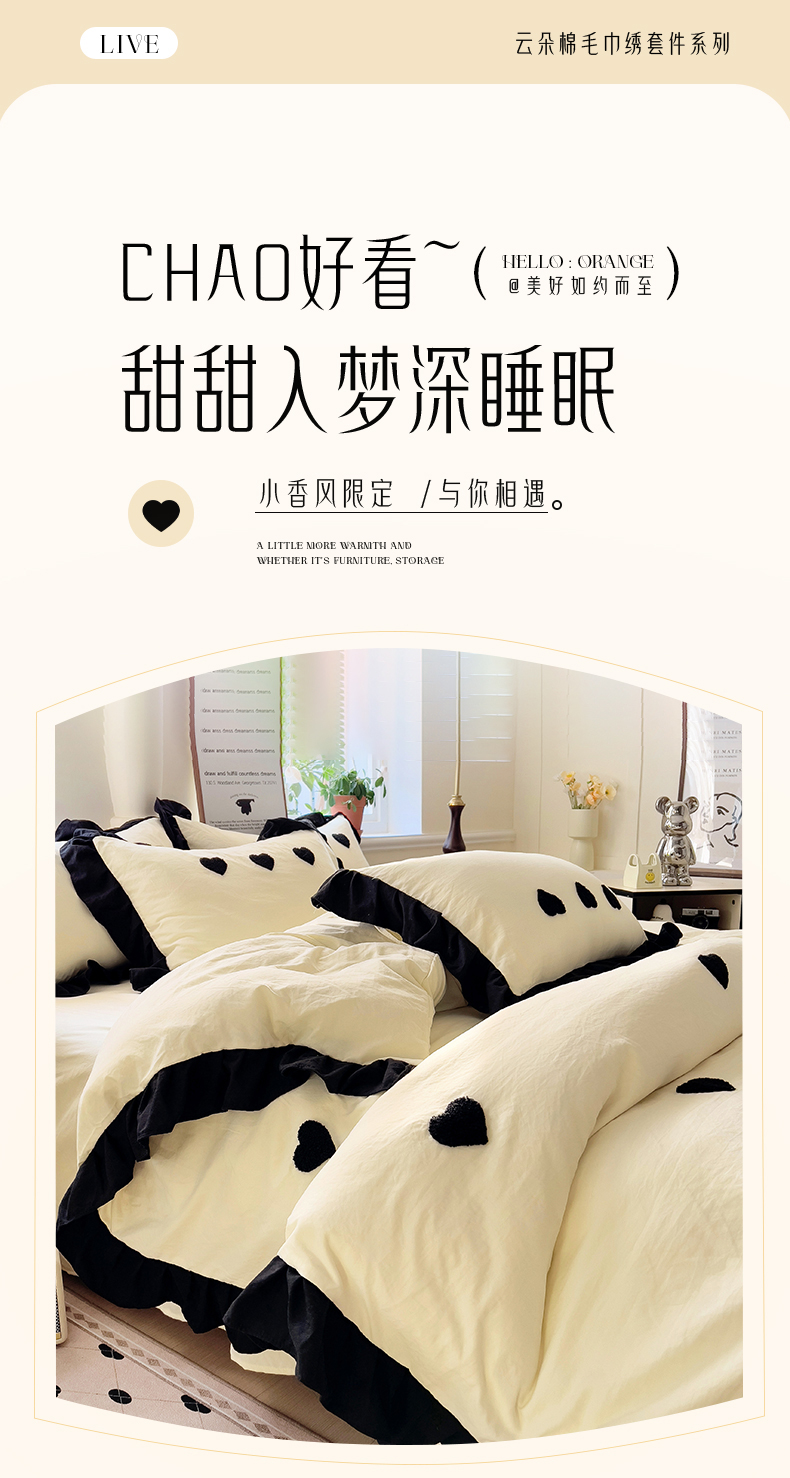 当前位置: 91家纺网 > 商品网购 > 床品套件 > 四件套 > 毛巾绣四件套 > 梦之岛 2025新款韩版小香风赫本风云朵棉毛巾绣四件套 小香风爱心-奶黄