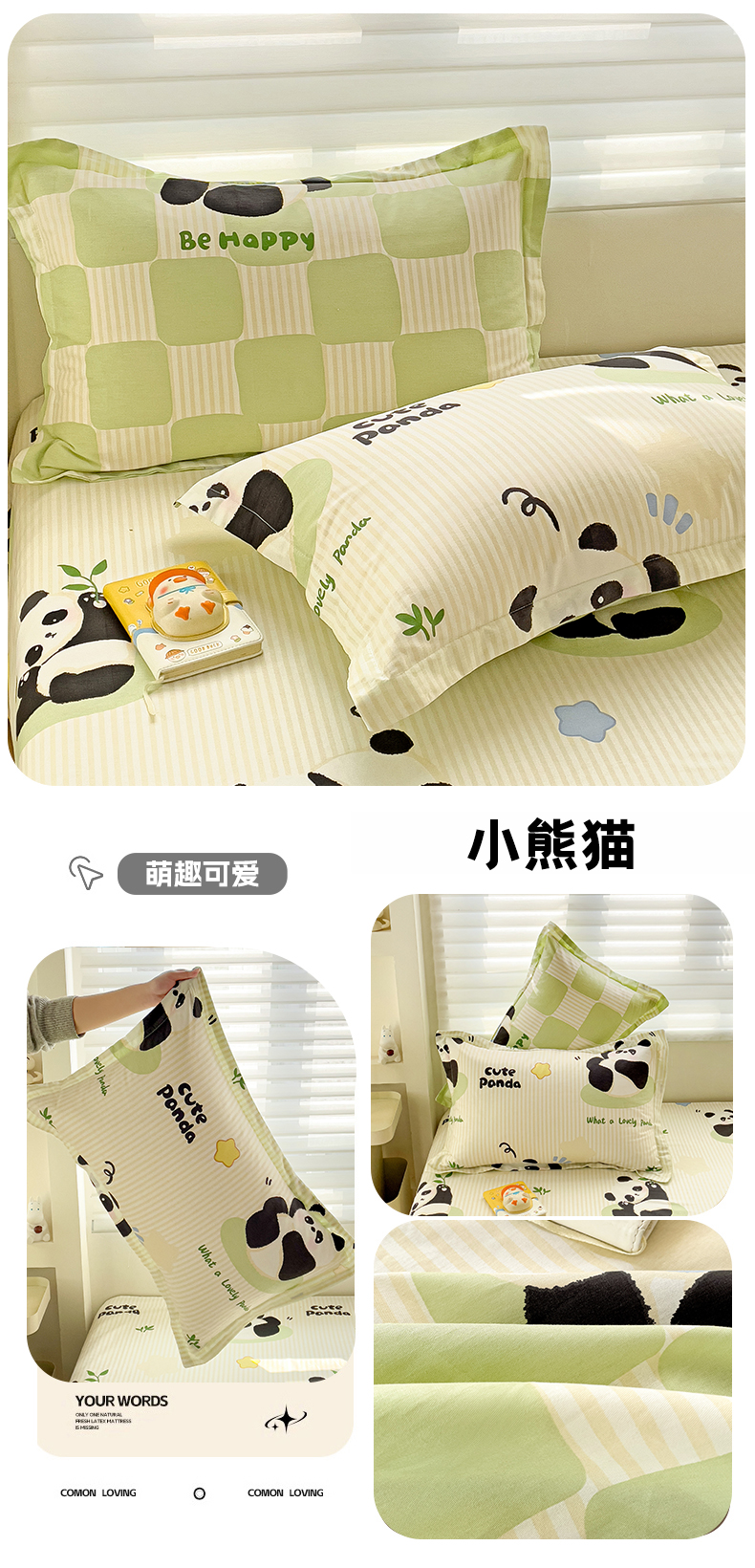 春雨家居 2025新款春夏卡通印花全棉单枕套 1.小熊猫