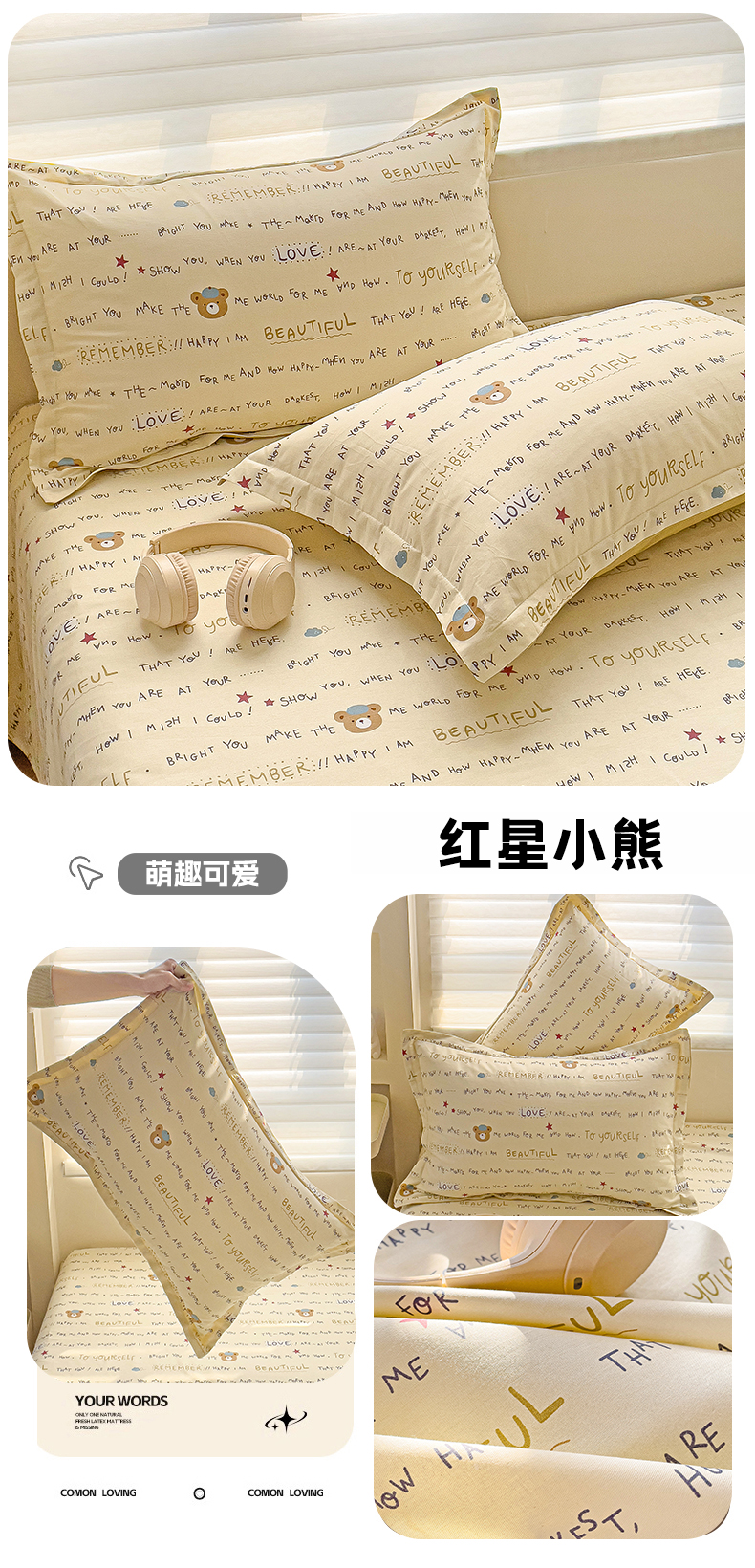 商品名称:春雨家居 2025新款春夏卡通印花全棉单枕套 20.红星小熊