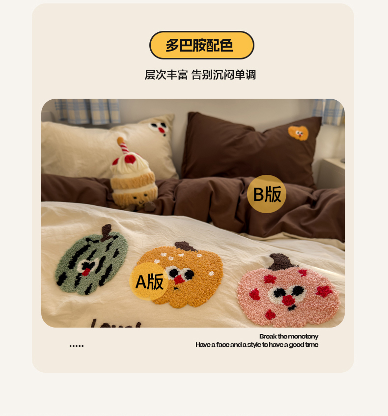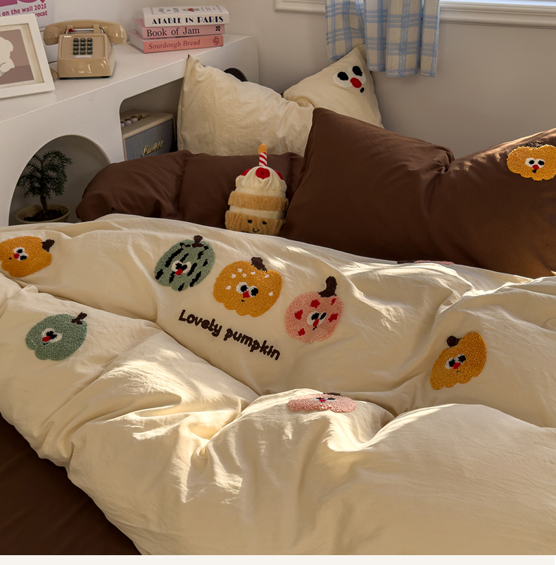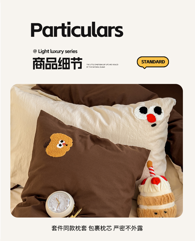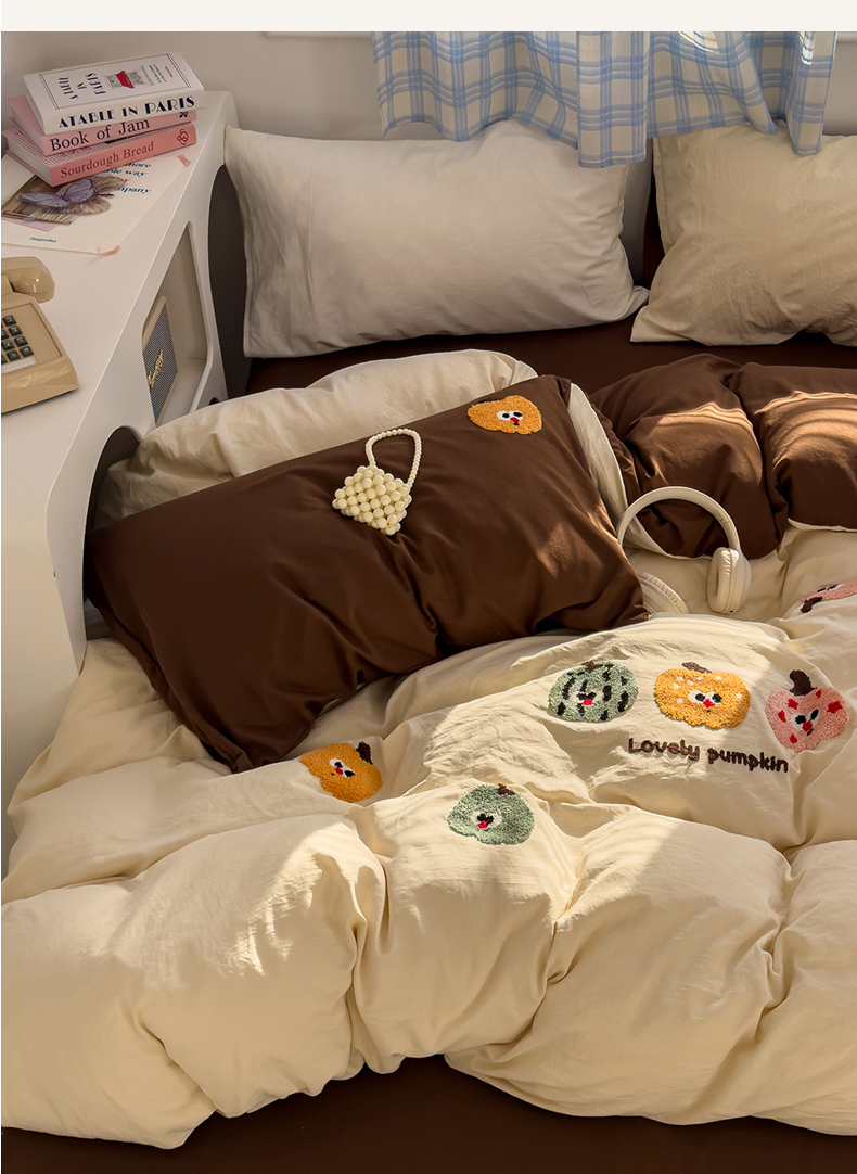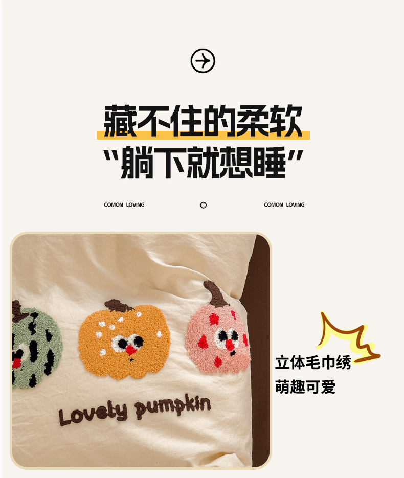 当前位置: 91家纺网 > 商品网购 > 床品套件 > 四件套 > 水洗棉四件套 > 优兰朵 2025新款亲肤卡通水洗棉毛巾绣学生床品四件套 大眼南瓜奶咖