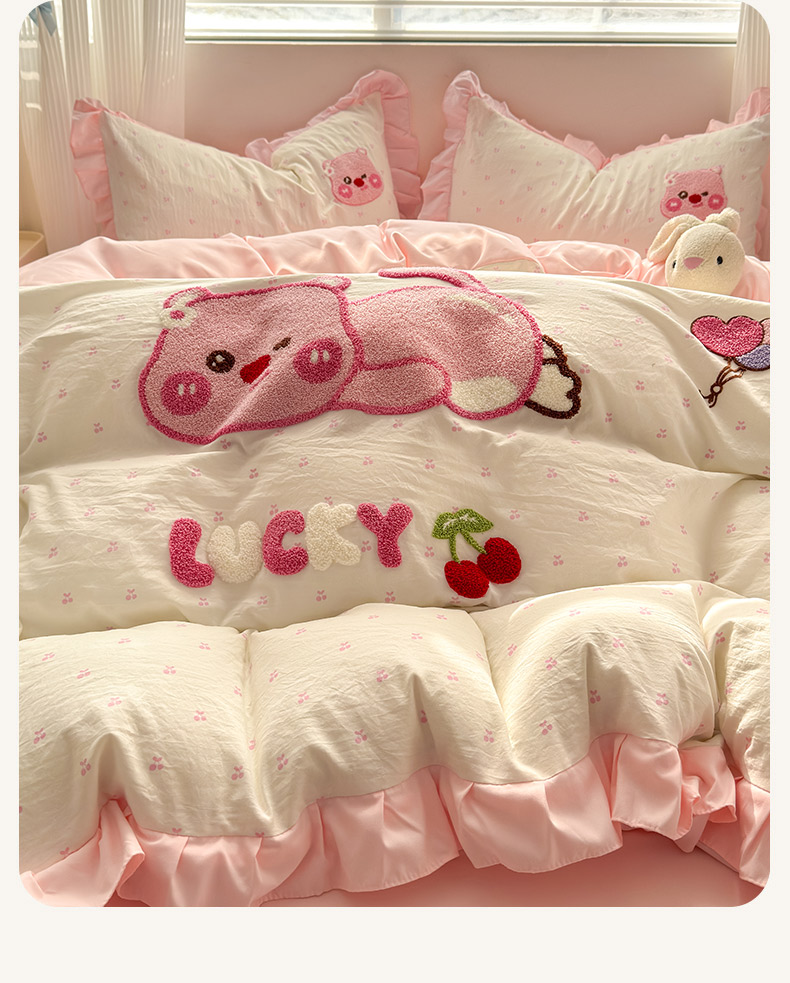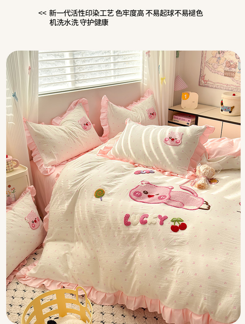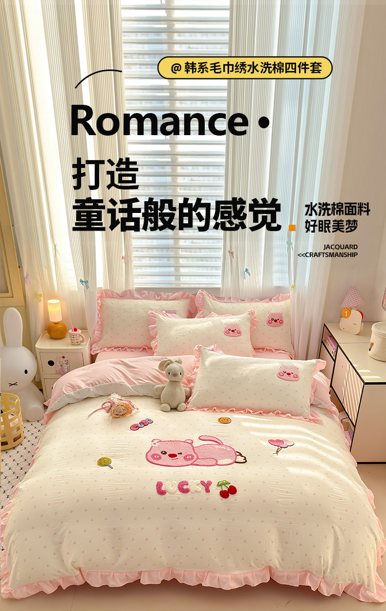 当前位置: 91家纺网 > 商品网购 > 床品套件 > 四件套 > 水洗棉四件套 > 易禾家纺 2025新品韩系小清新水洗棉毛巾绣露比系列四件套(专版花型) 露比-樱桃粉