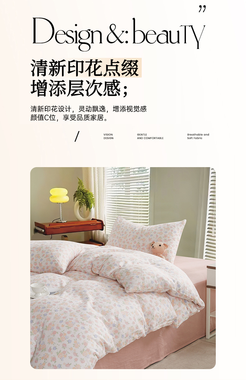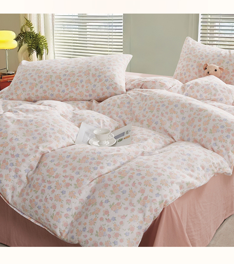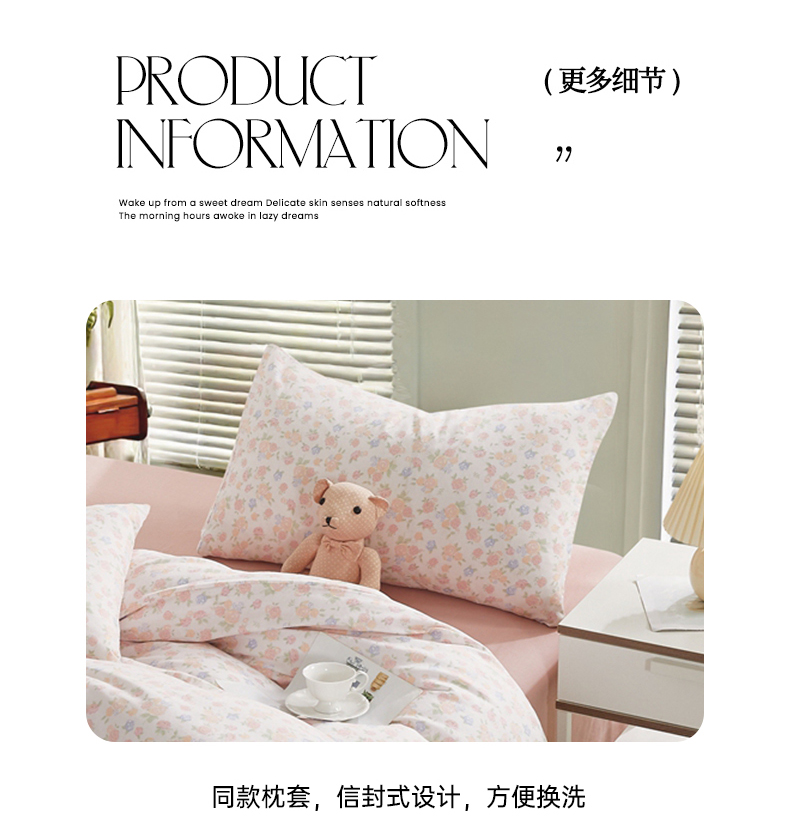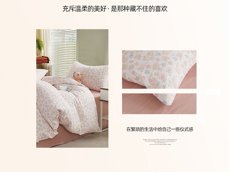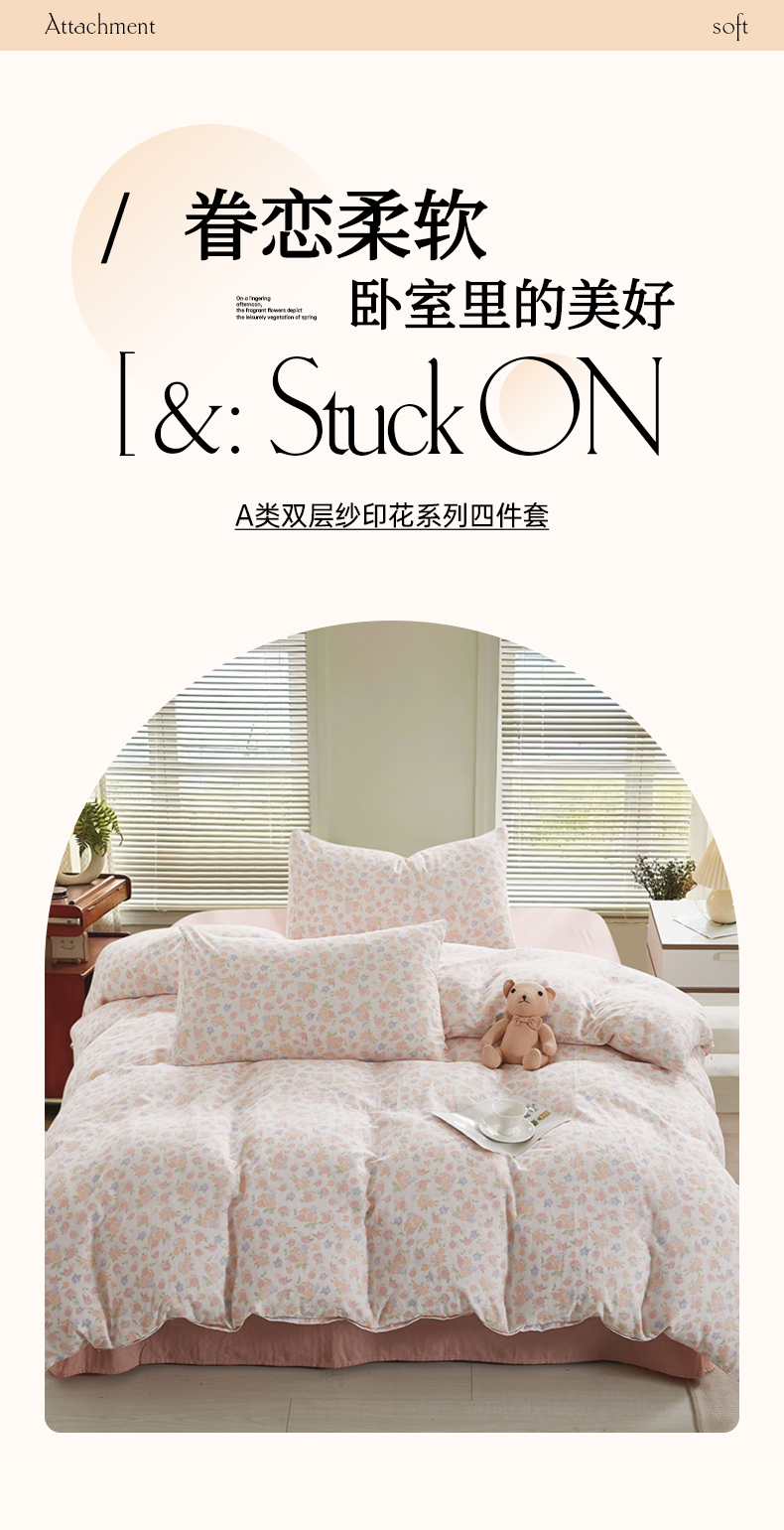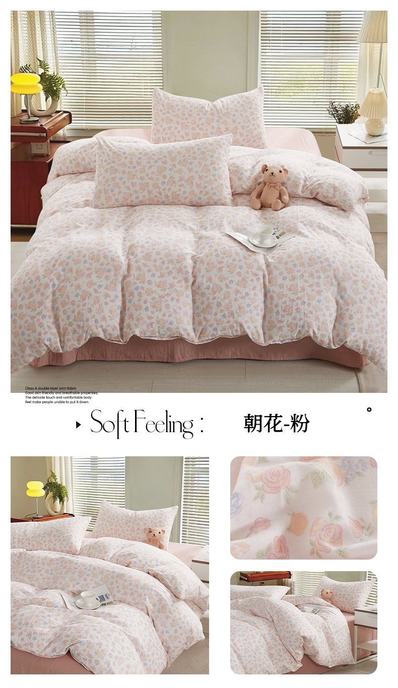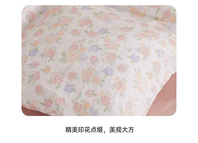 商品名称:棉小二 2025新款双层纱印花系列四件套 朝花-粉