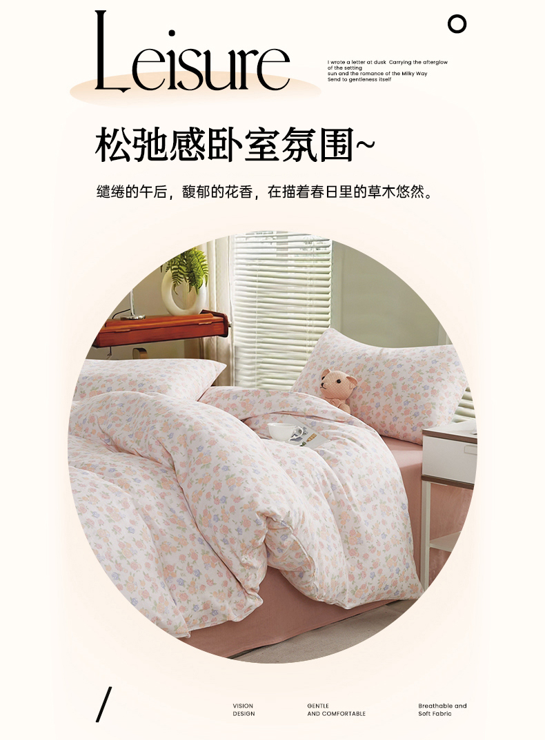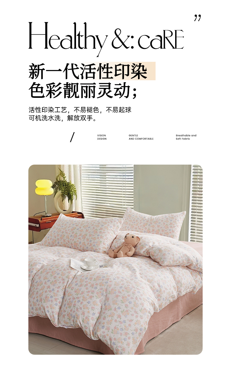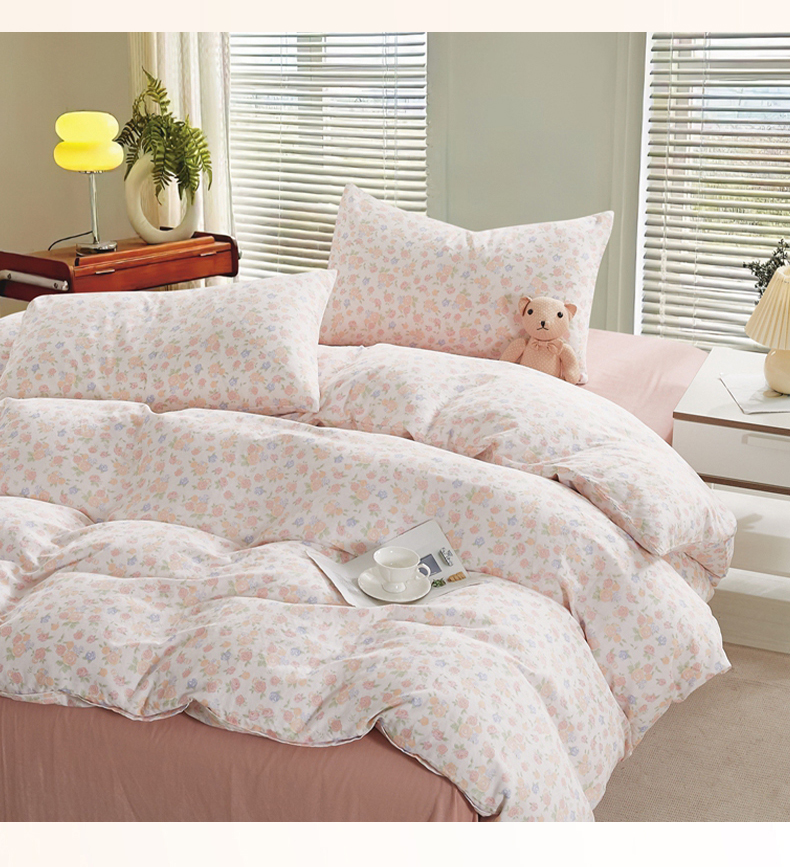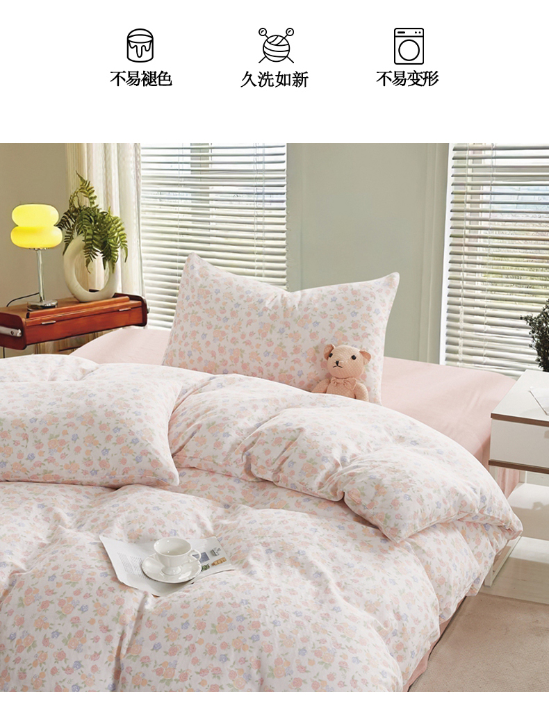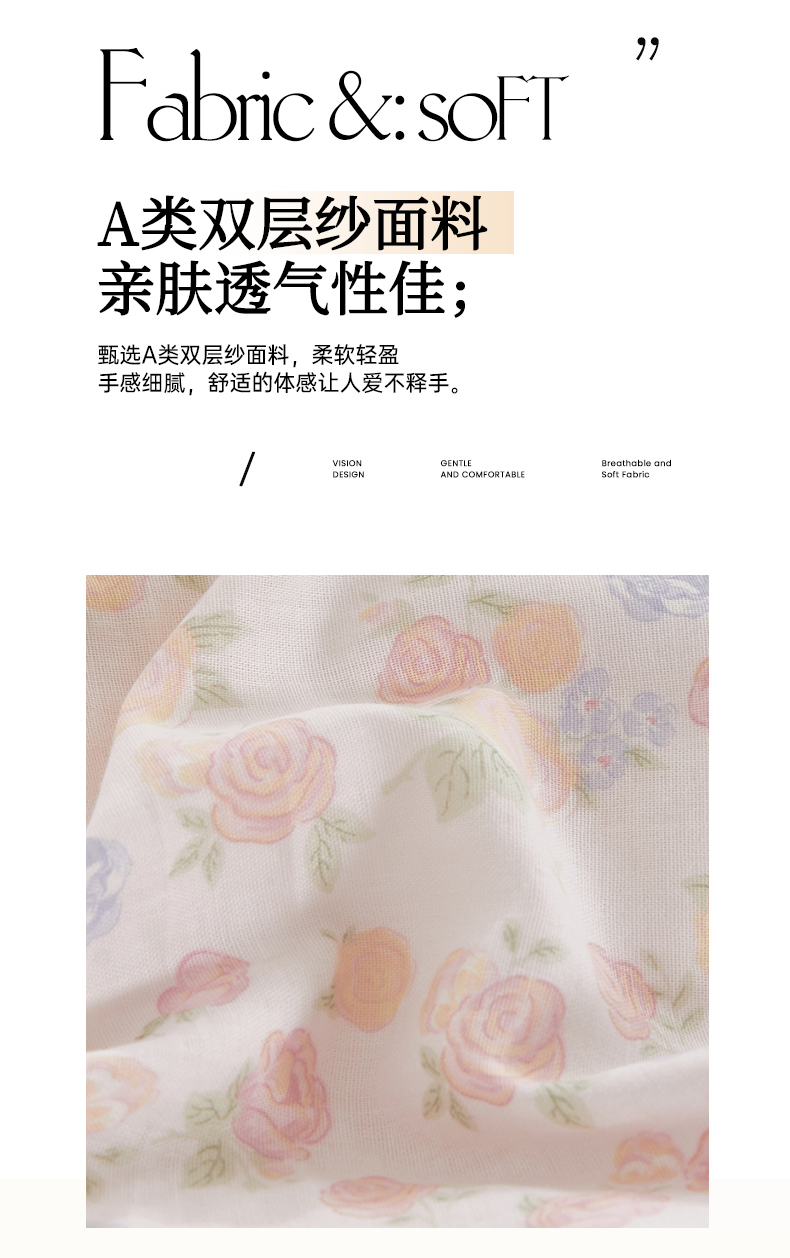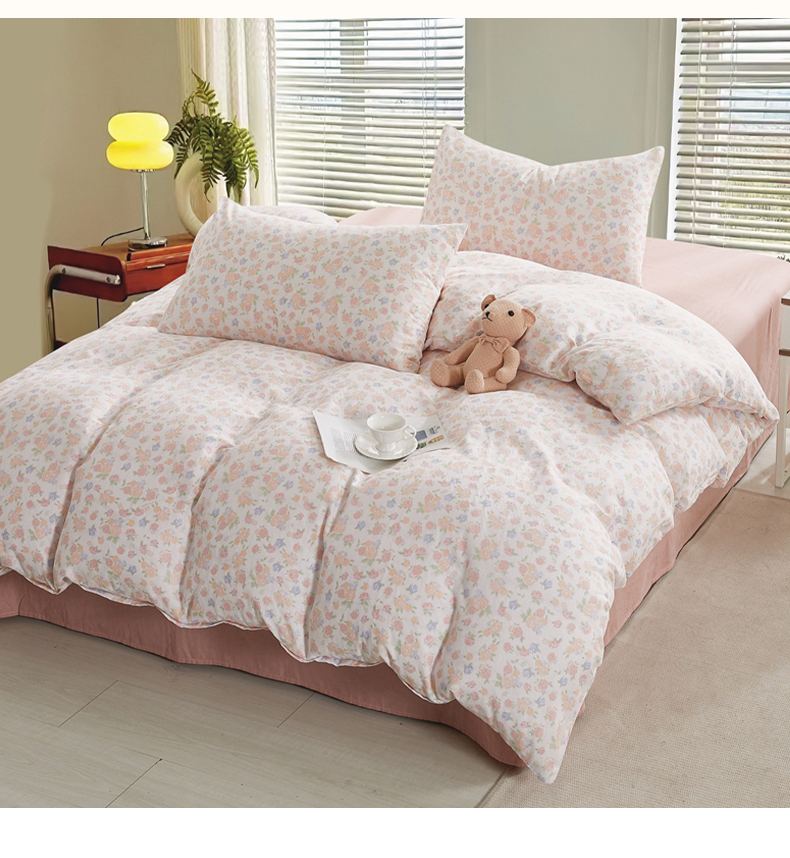 商品名称:棉小二 2025新款双层纱印花系列四件套 朝花-粉
