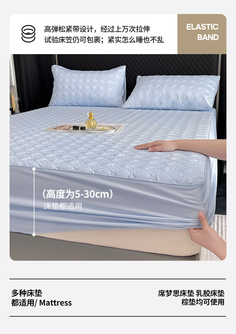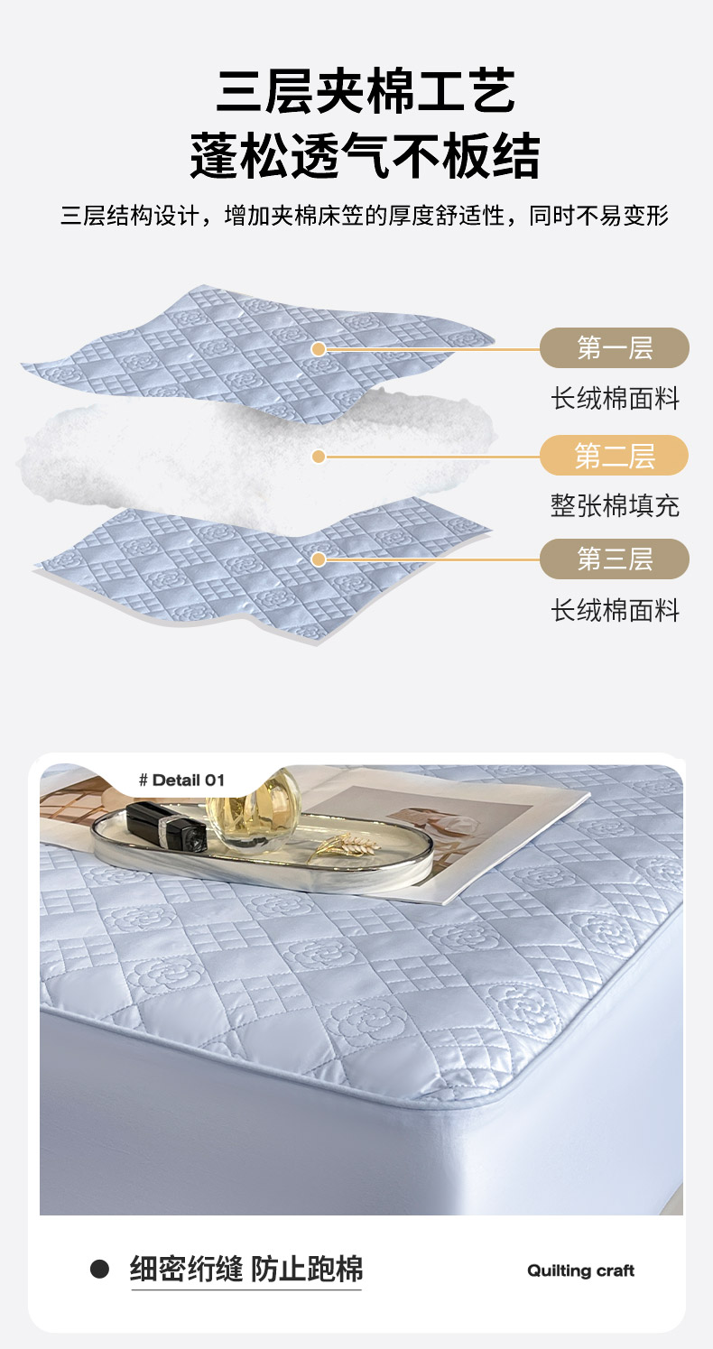 (总)2025A类母婴级长绒棉夹棉床笠三件套纯棉全棉加厚席梦思床罩床套四季款保护罩,茶绿,黛紫,慕蓝,奶玉,颜粉