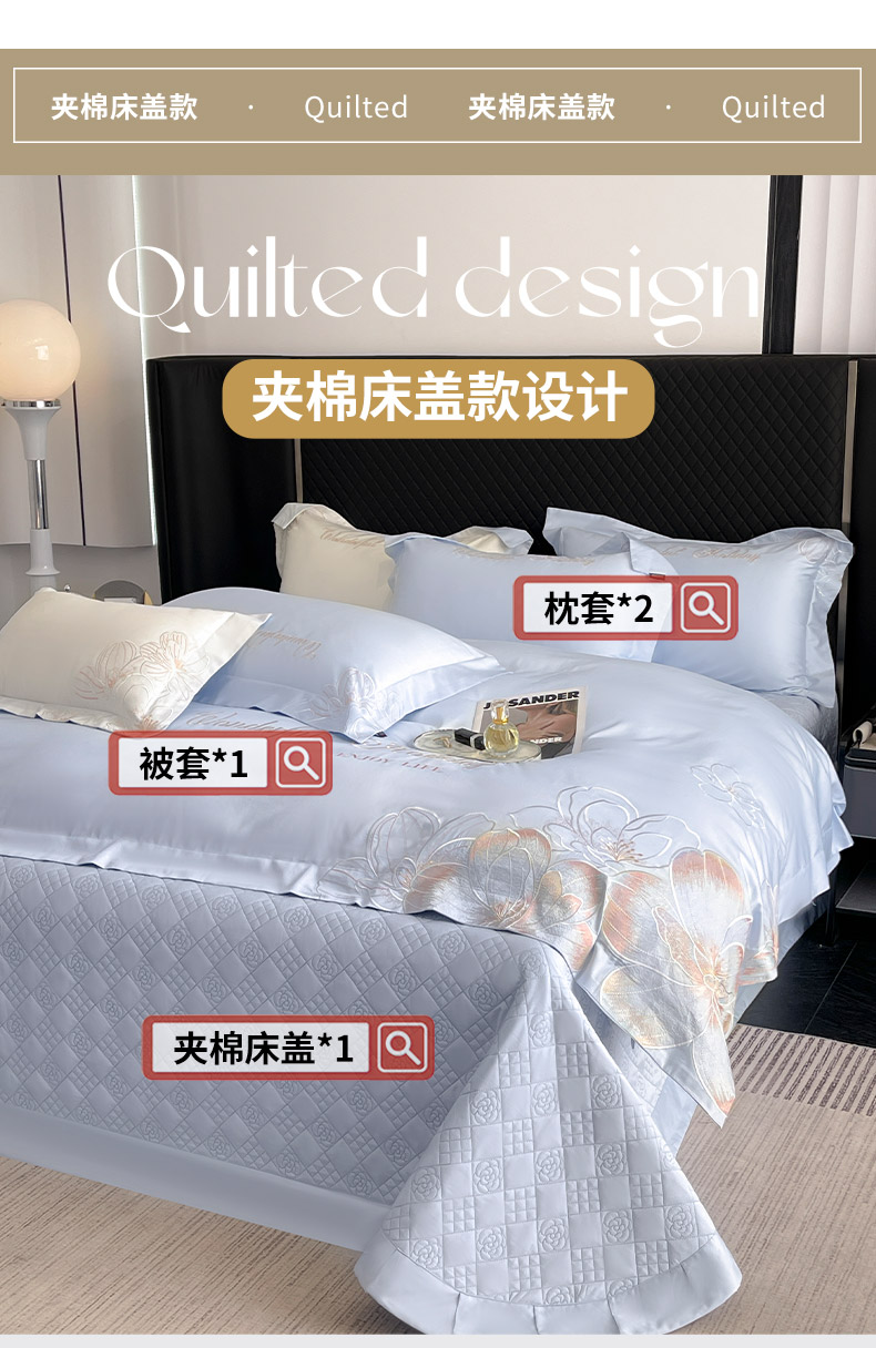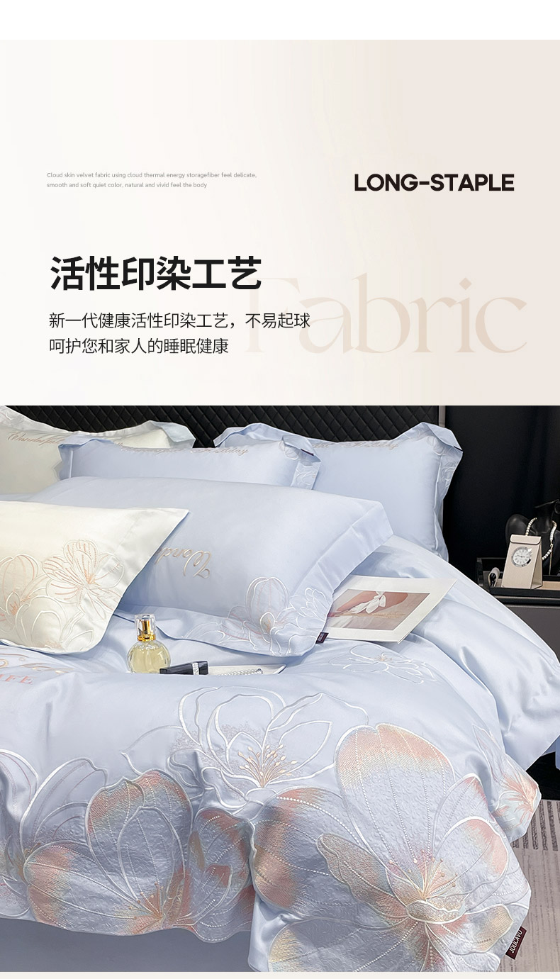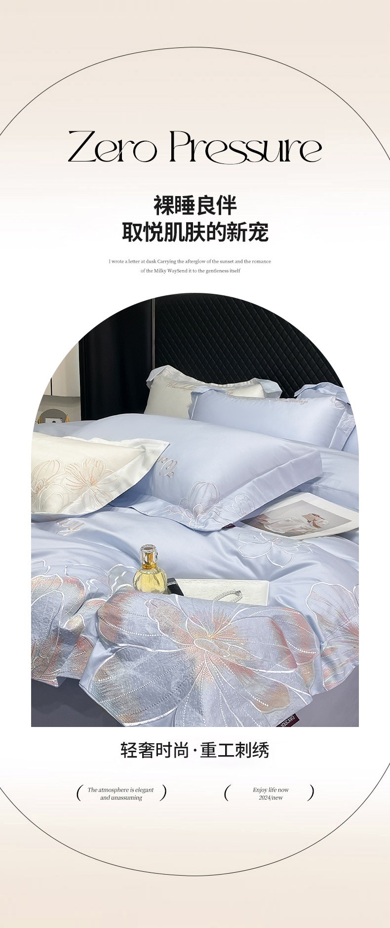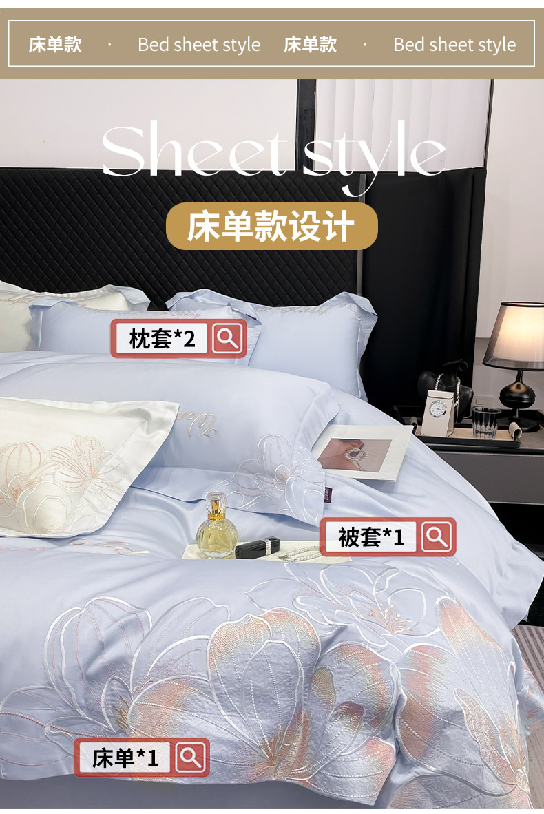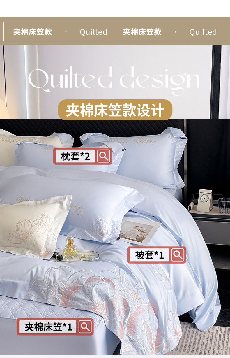 商品名称:2025新款轻奢风A类100支长绒棉四件套全棉纯棉重工刺绣床单床笠夹棉床笠床盖款高端床上用品-星慕 慕蓝
