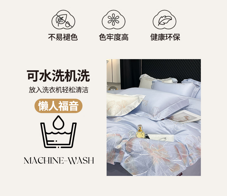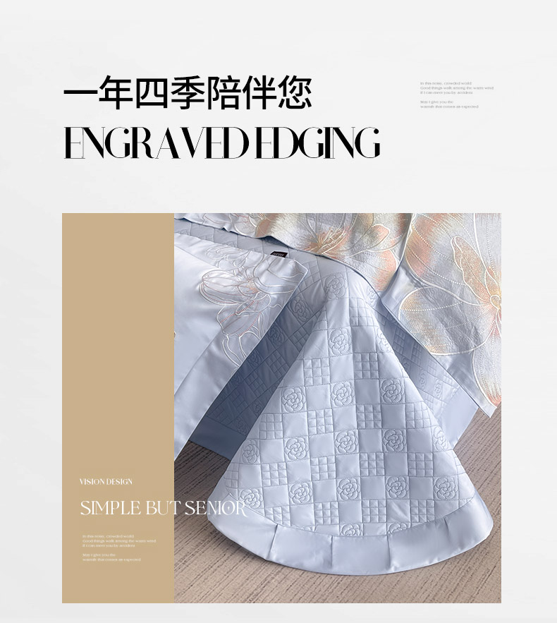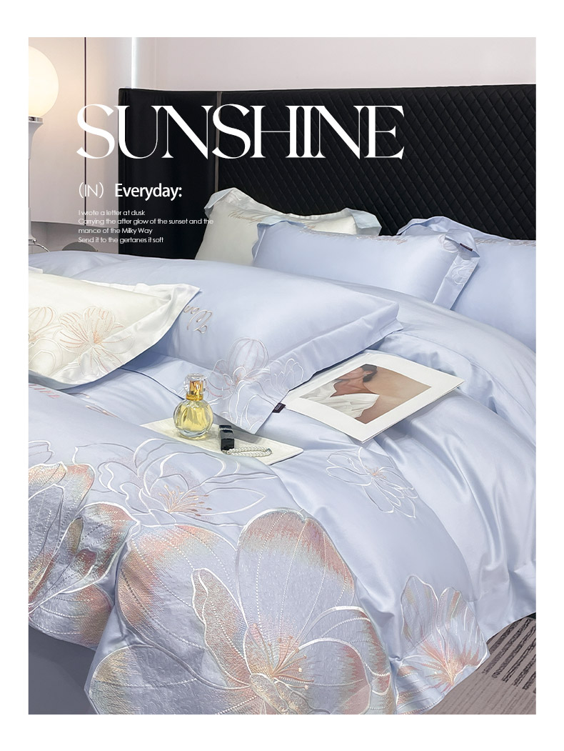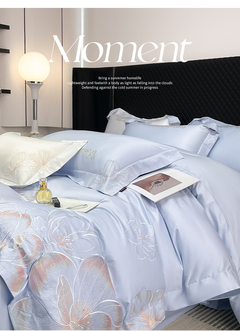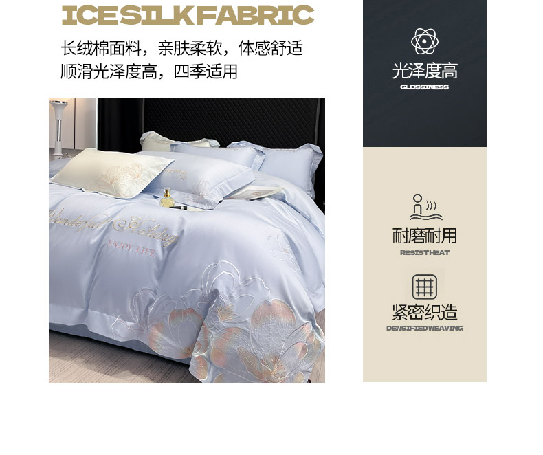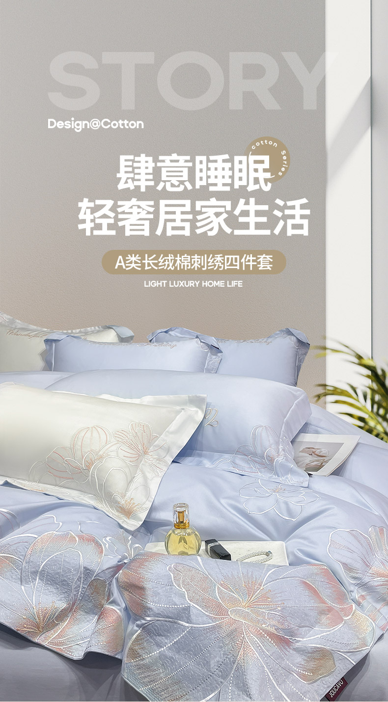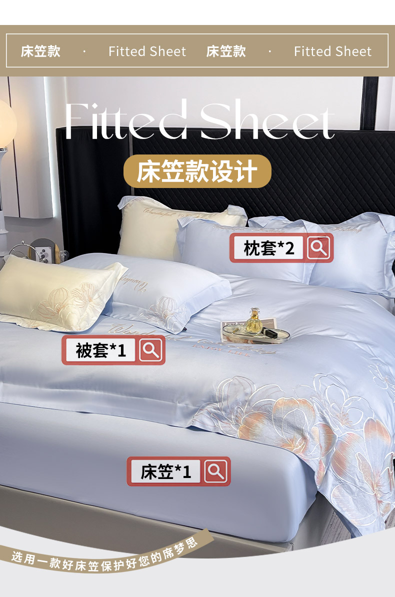 商品名称:2025新款轻奢风A类100支长绒棉四件套全棉纯棉重工刺绣床单床笠夹棉床笠床盖款高端床上用品-星慕 慕蓝