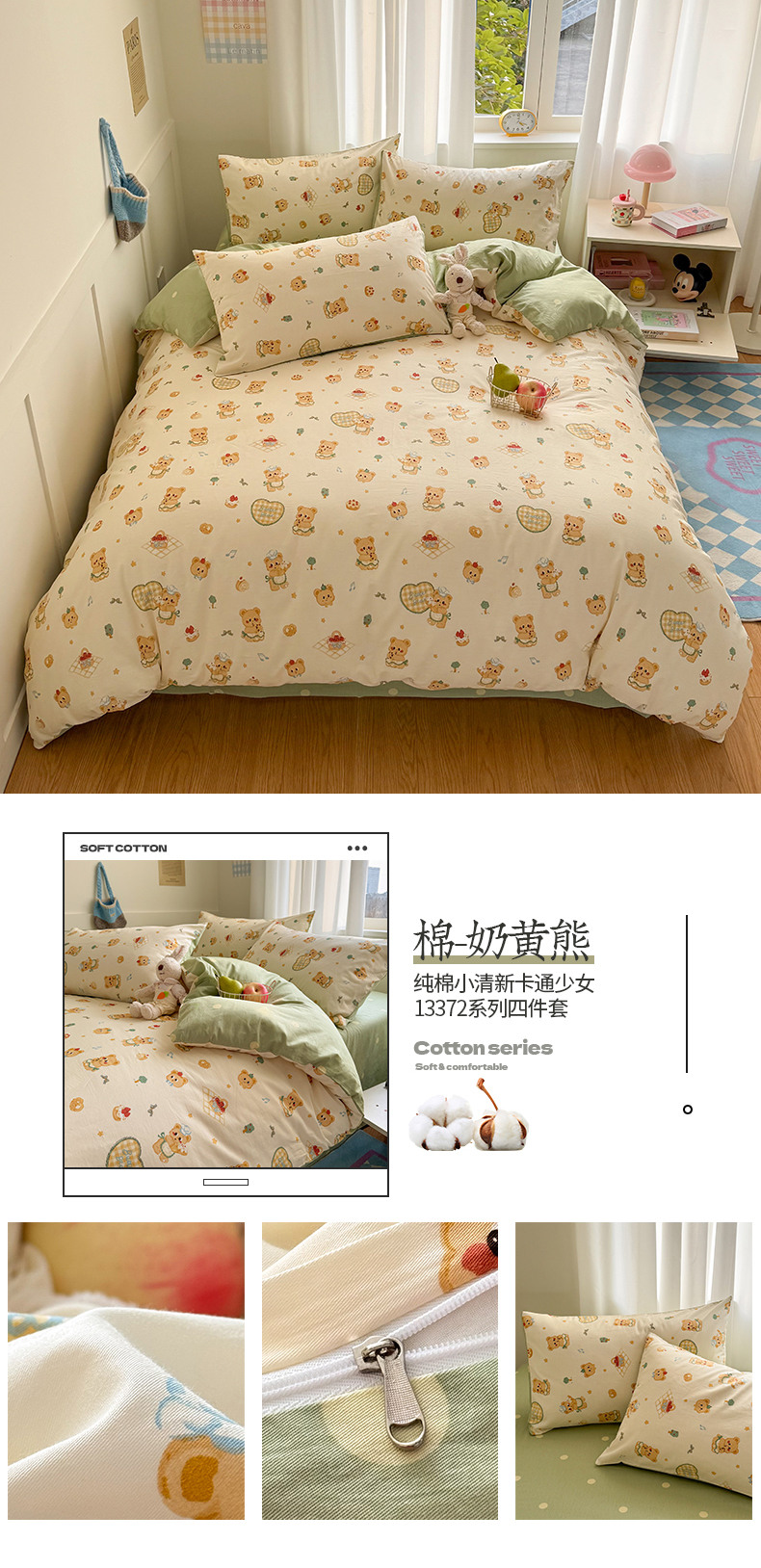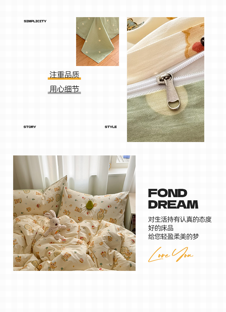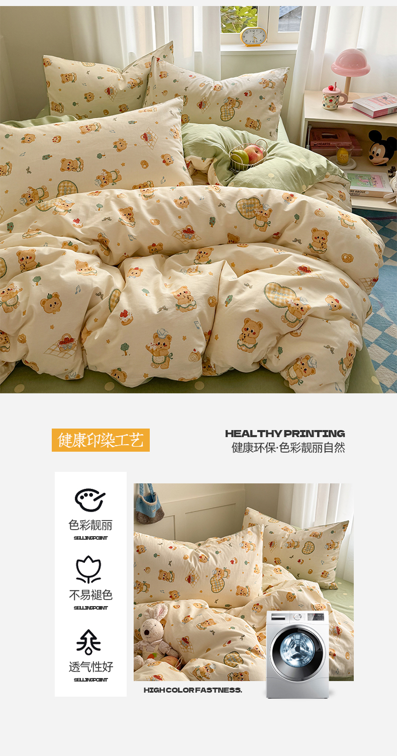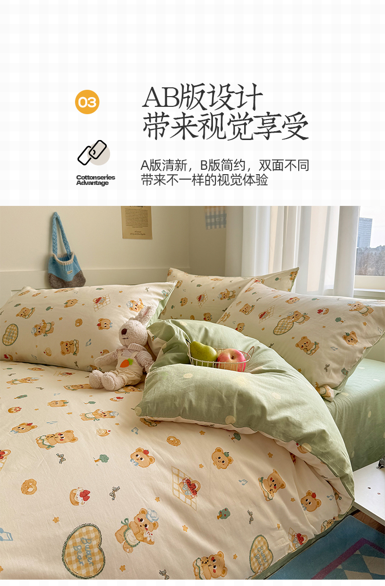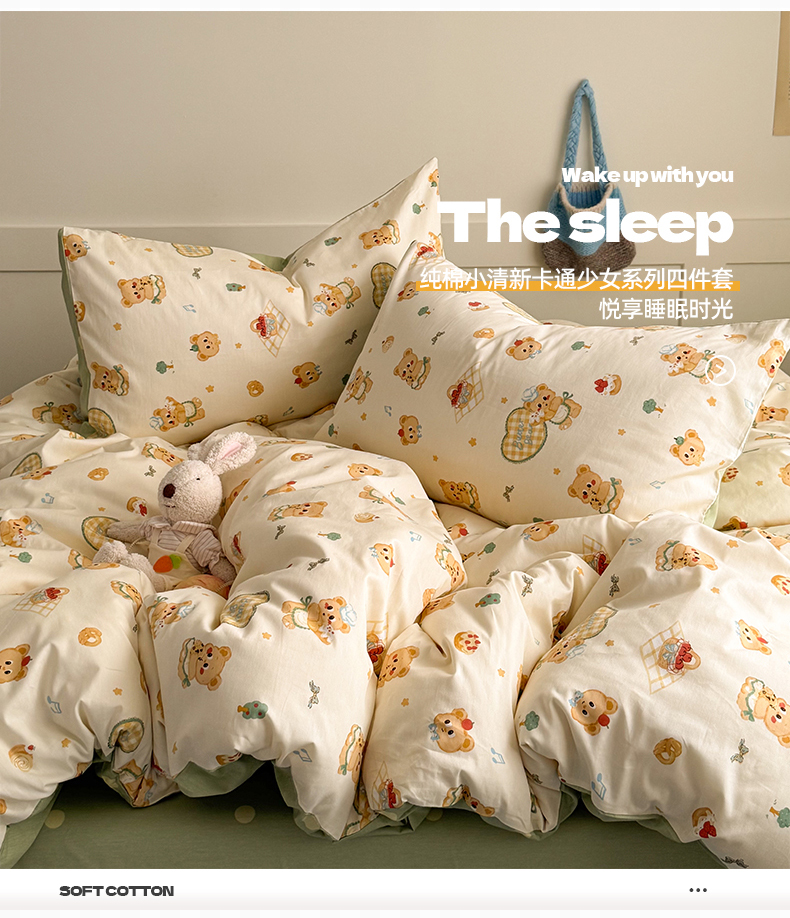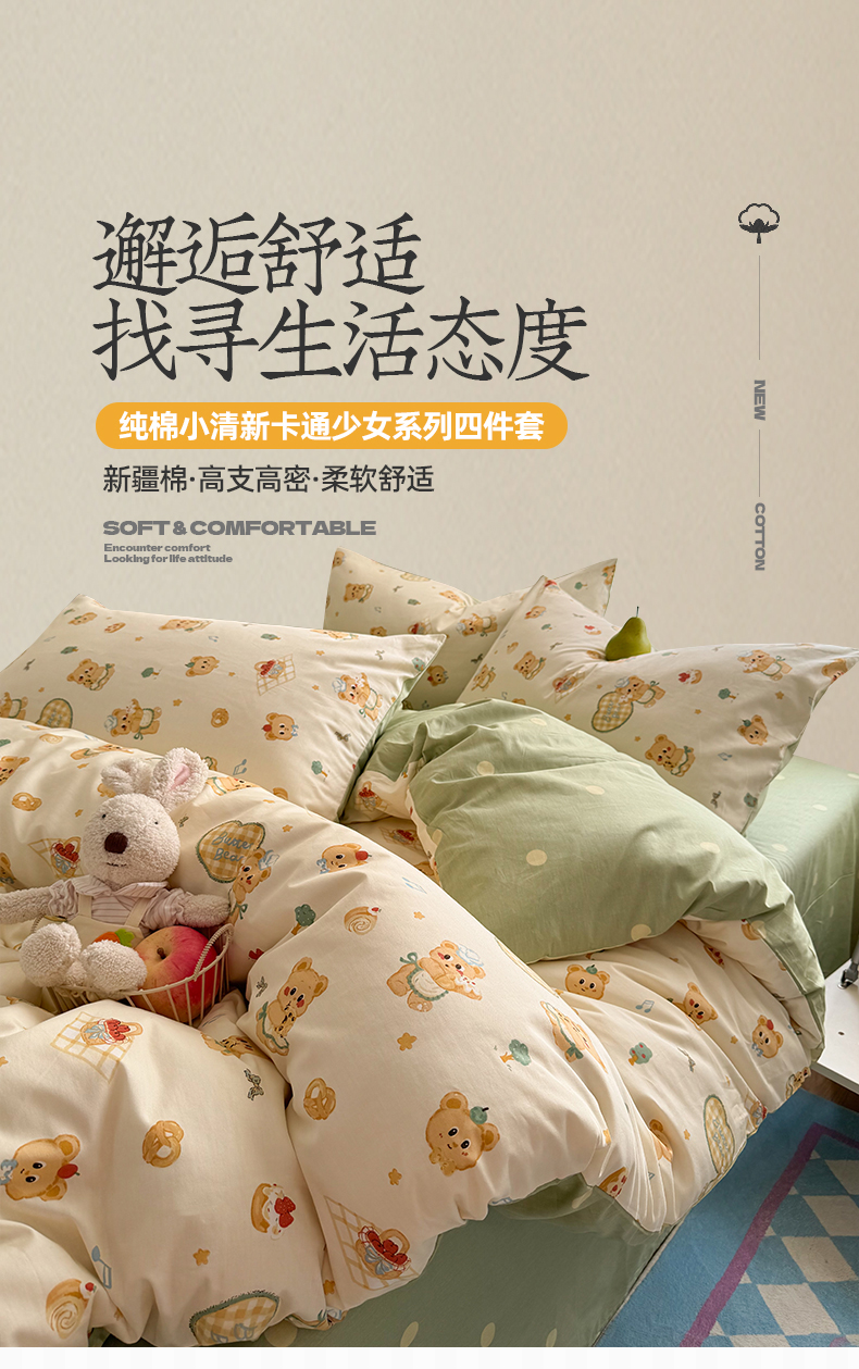当前位置: 91家纺网 > 商品网购 > 床品套件 > 四件套 > 全棉普通四件套 > 桃子家居 2025新款纯棉小清新13372卡通可爱少女系列四件套 棉-奶黄熊