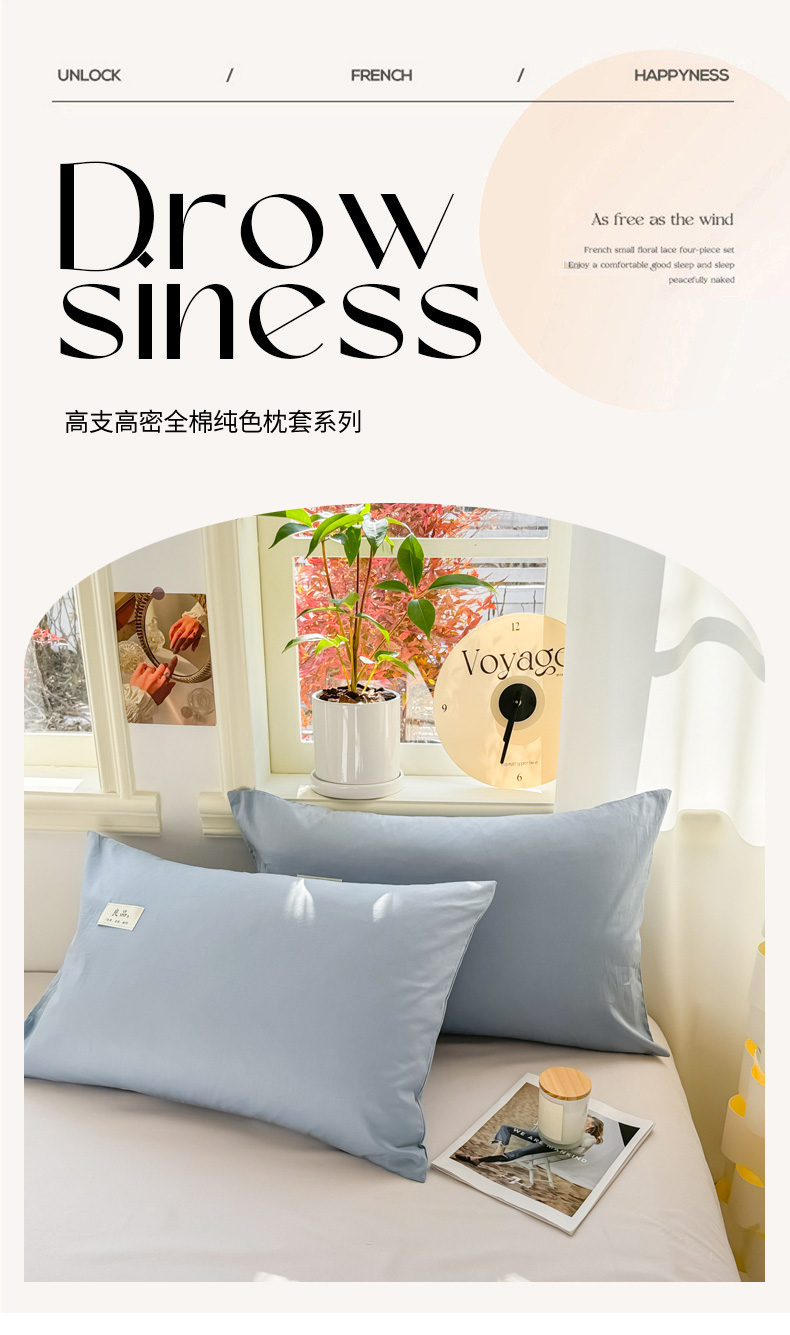 商品名称:眠博士 2025新款全棉40支纯色单枕套 40支枕套-浅蓝