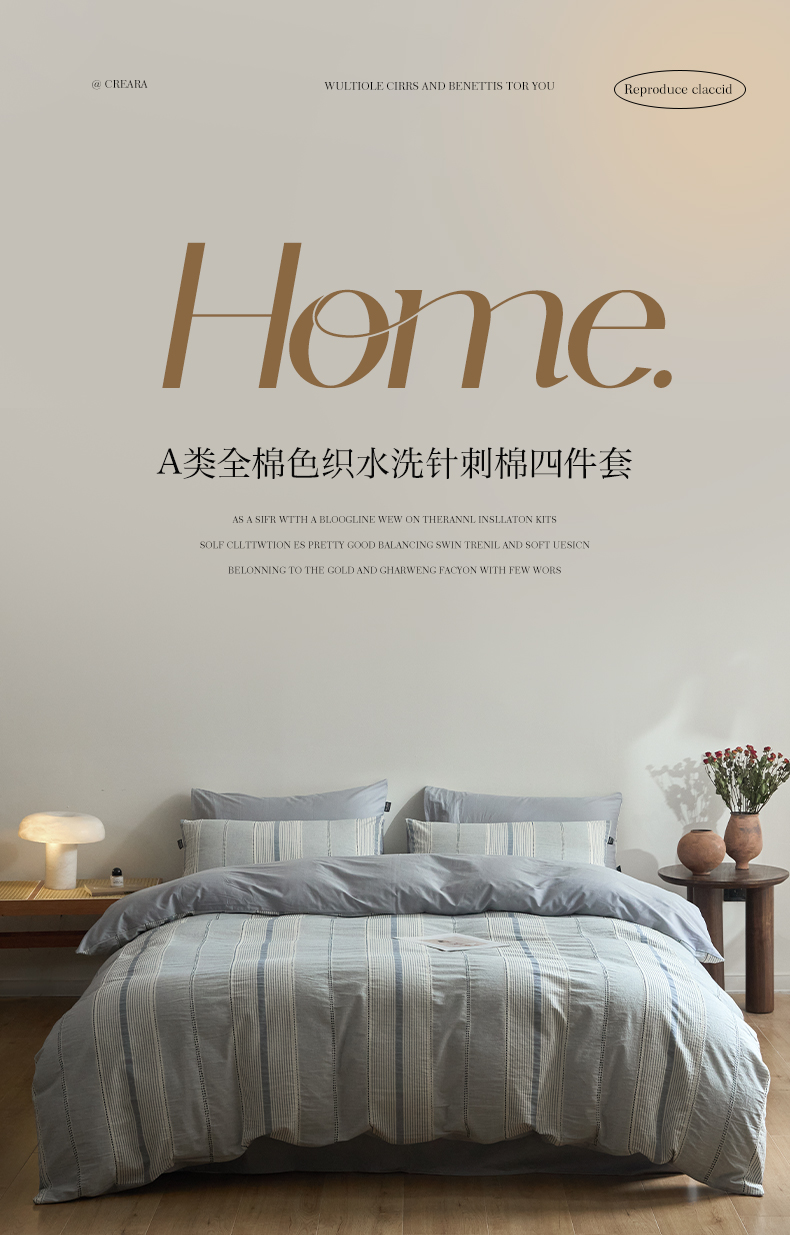 (总)格里芬家纺 2025新款全棉色织水洗棉针刺纯棉四件套-瑞拉,瑞拉-豆沙,瑞拉-黄,瑞拉-兰,瑞拉-绿,瑞拉-深灰
