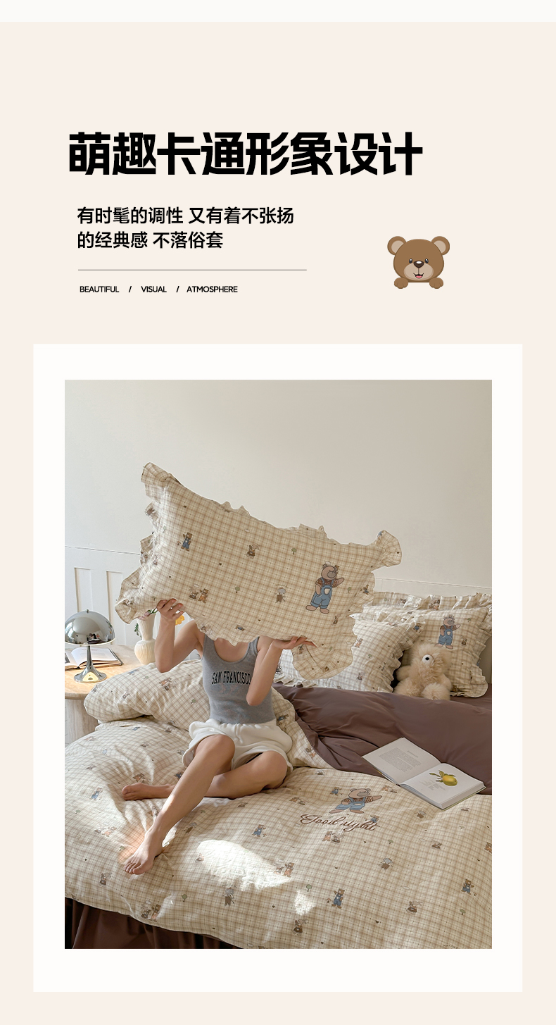 (总)卡巴伦家纺 2025新款全棉皱皱纱大版卡通数码印花款四件套一,洛可可兔-粉,班尼的花园-粉,班尼的花园-黄,漂亮的领结-绿,漂亮的领结-米白,熊猫噗噗-绿,樱桃真甜-奶白