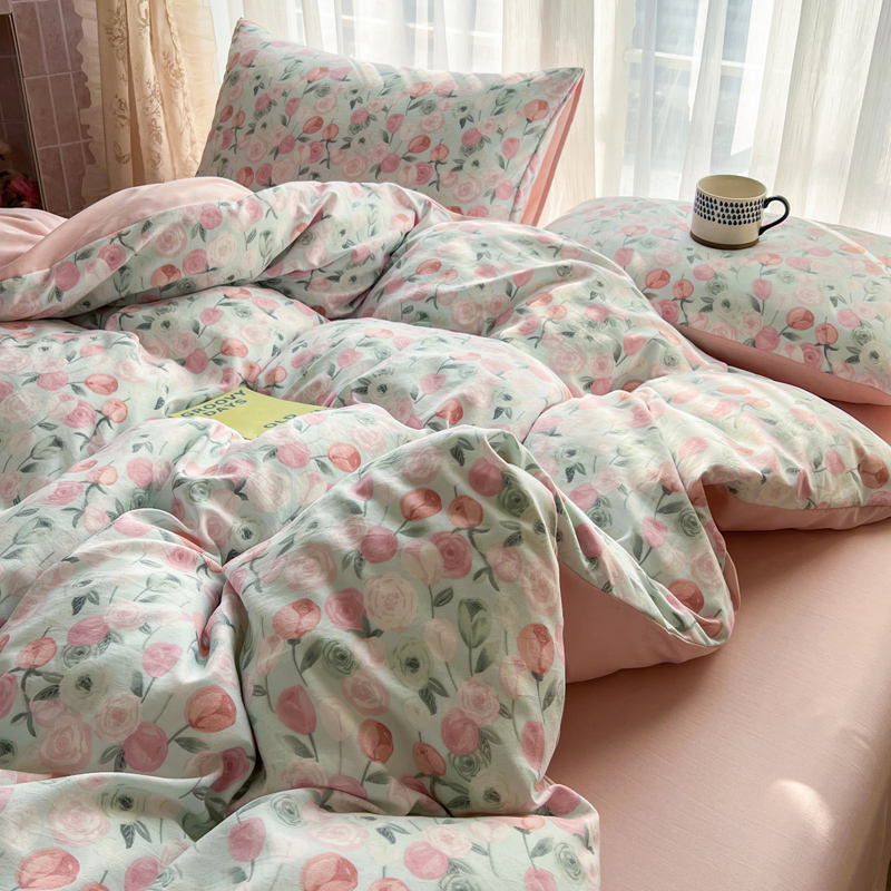 暖伊家居 2025新款A类针织双层纱四件套 甜也,甜也