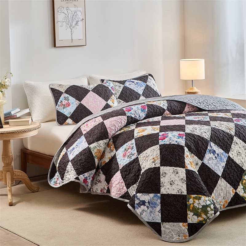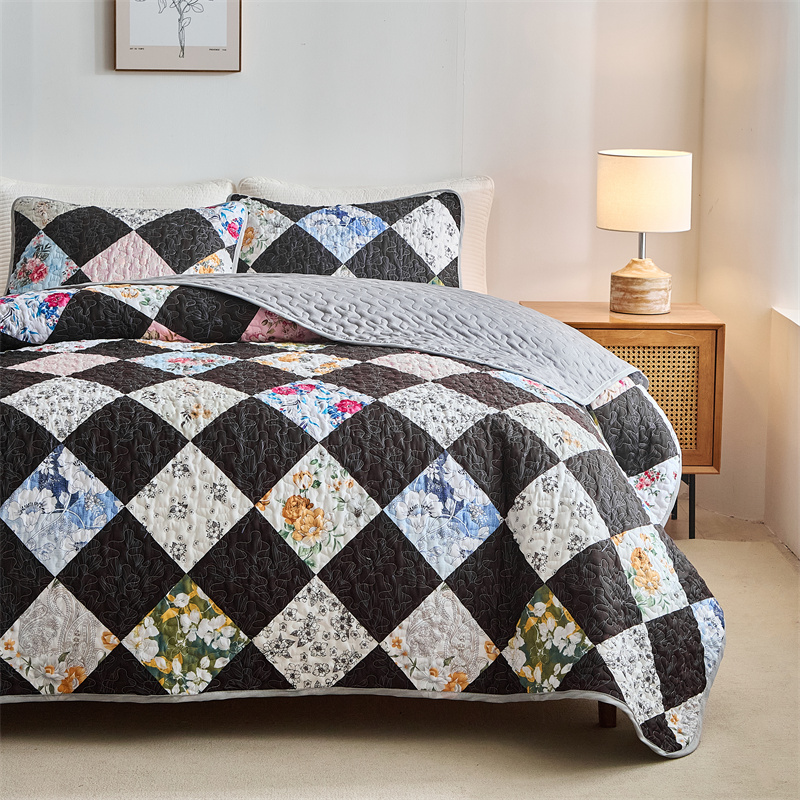 (总)温宁2025新款跨境外贸专供正方格床盖,绿色,米色,银灰