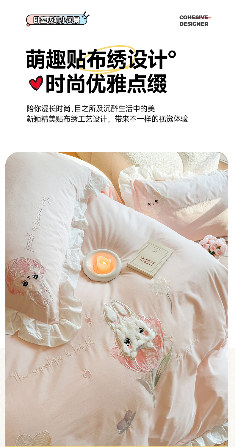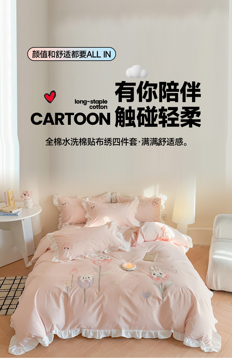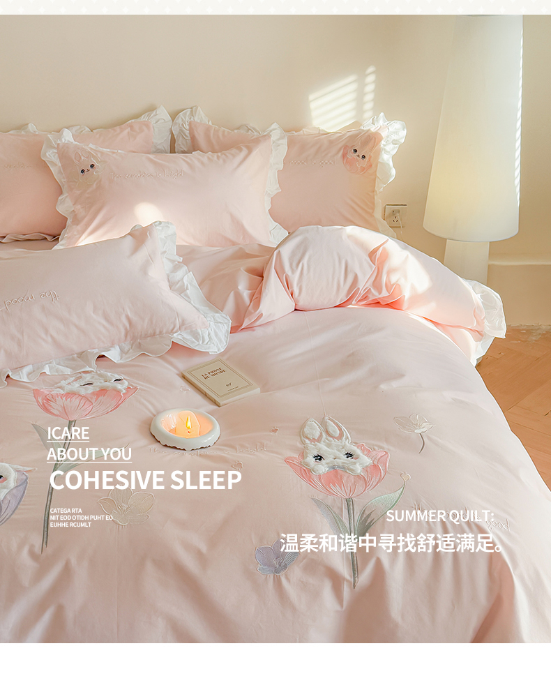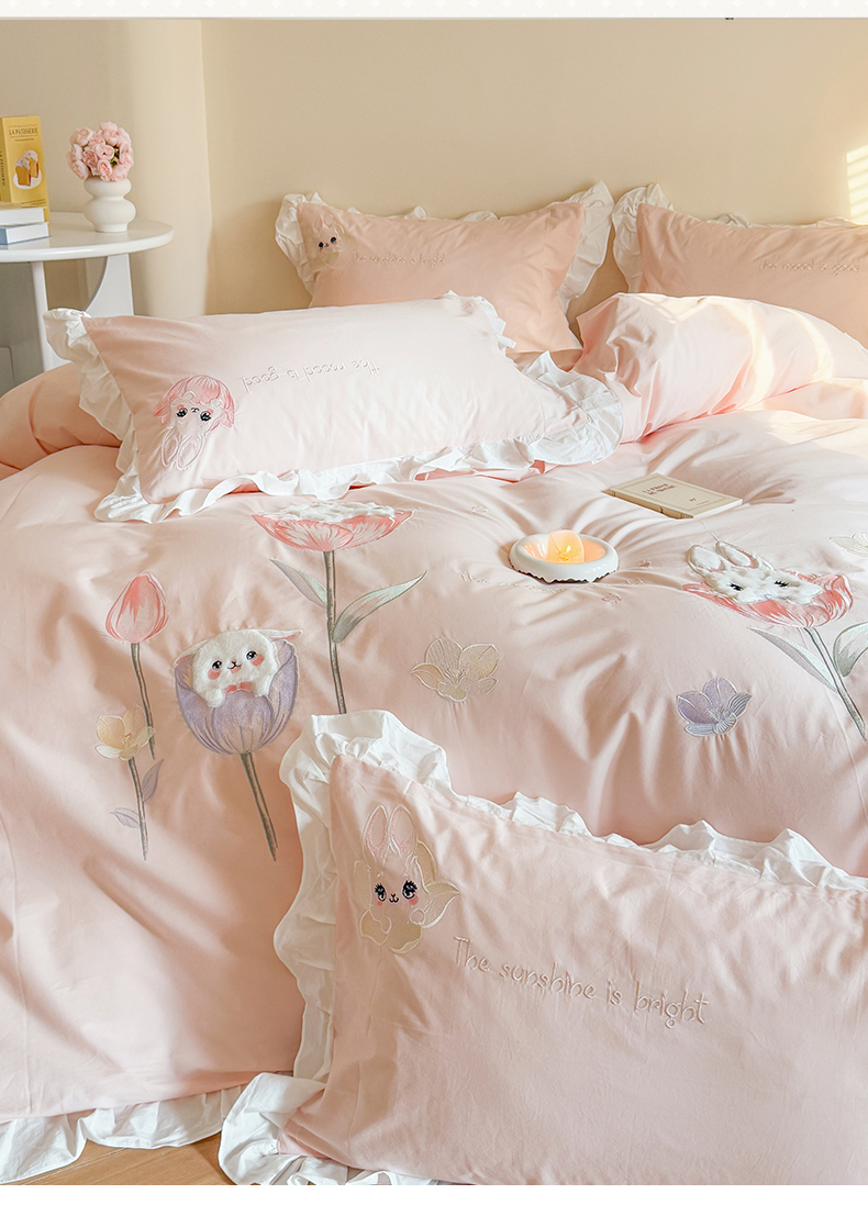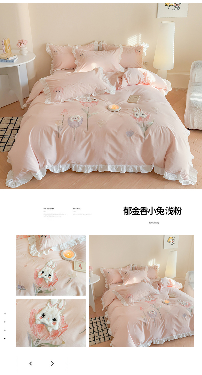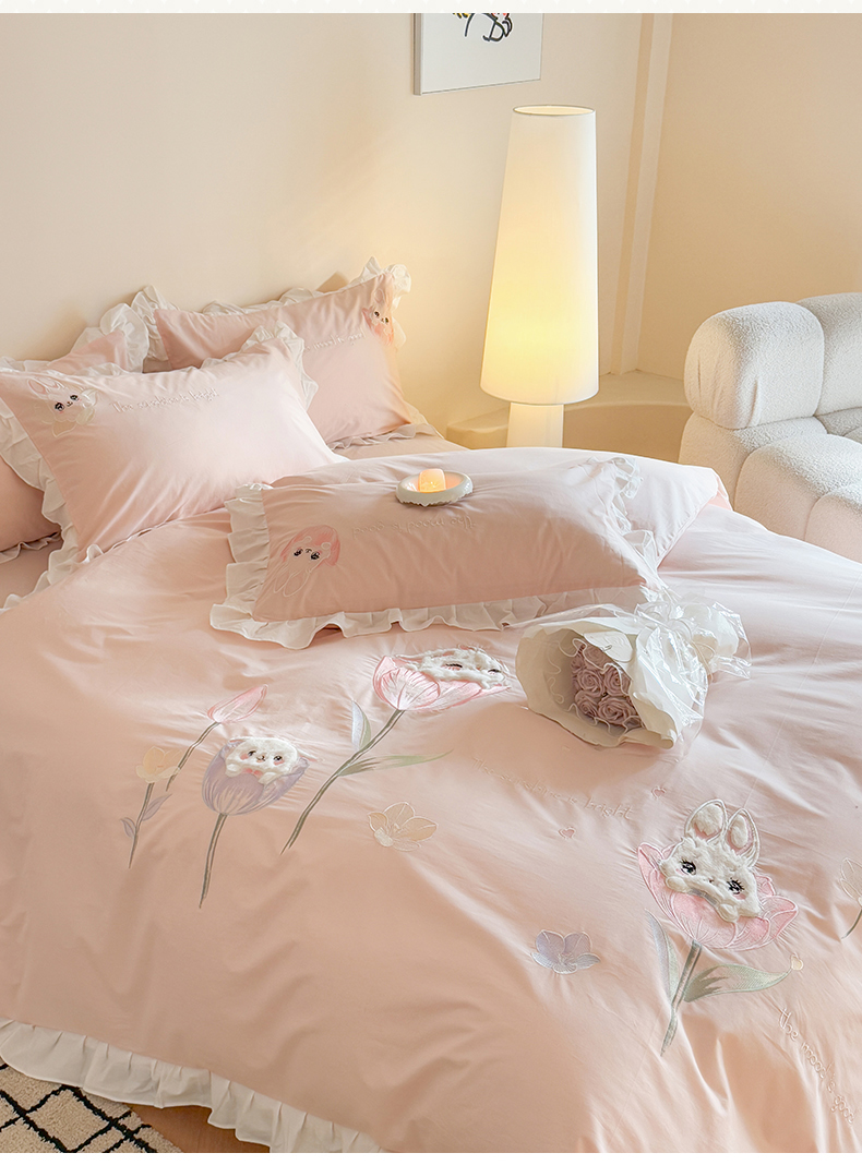 当前位置: 91家纺网 > 商品网购 > 床品套件 > 四件套 > 全棉普通四件套 > 蜜柚2025花边款贴布郁金香小兔 郁金香小兔 浅粉